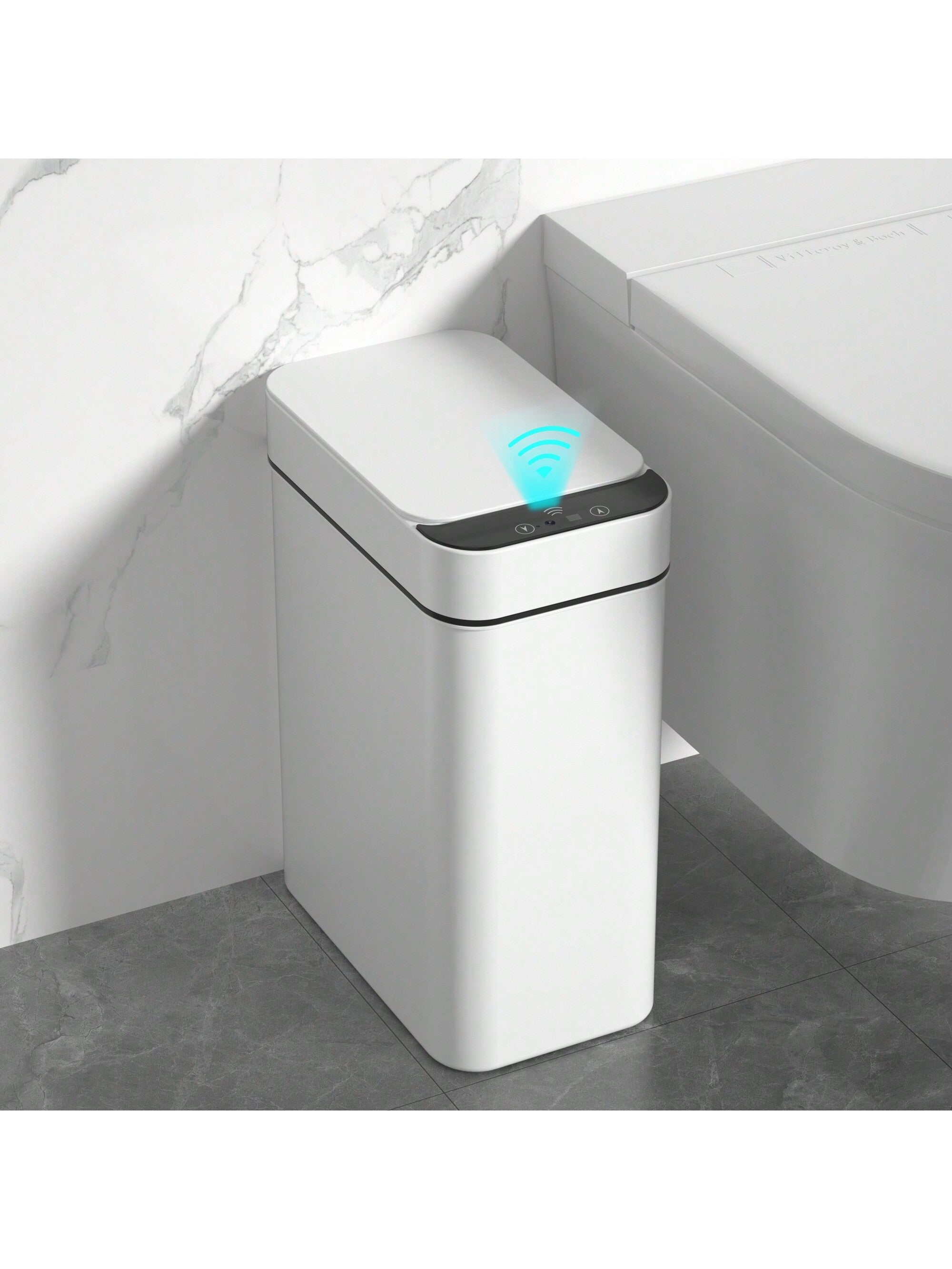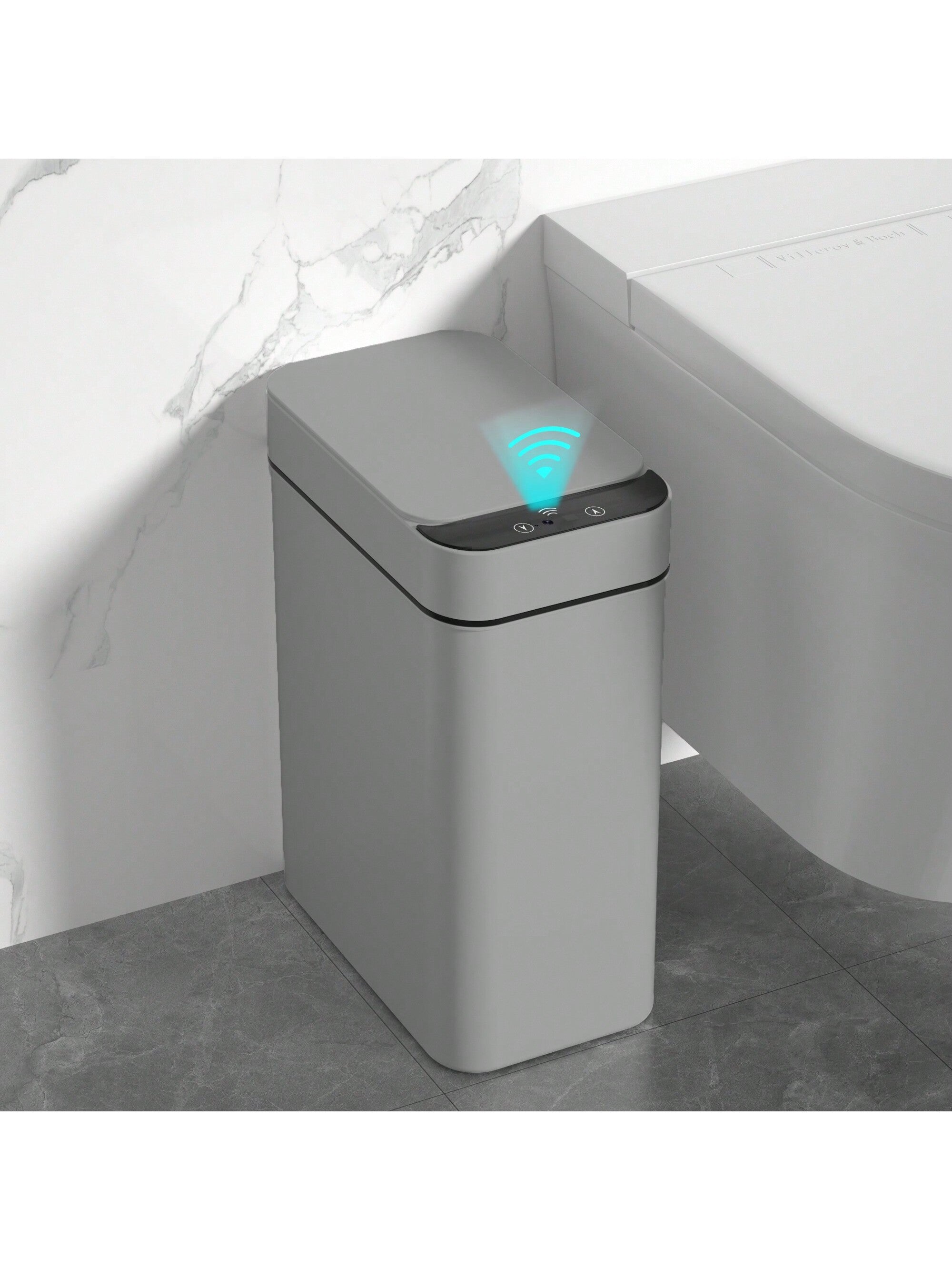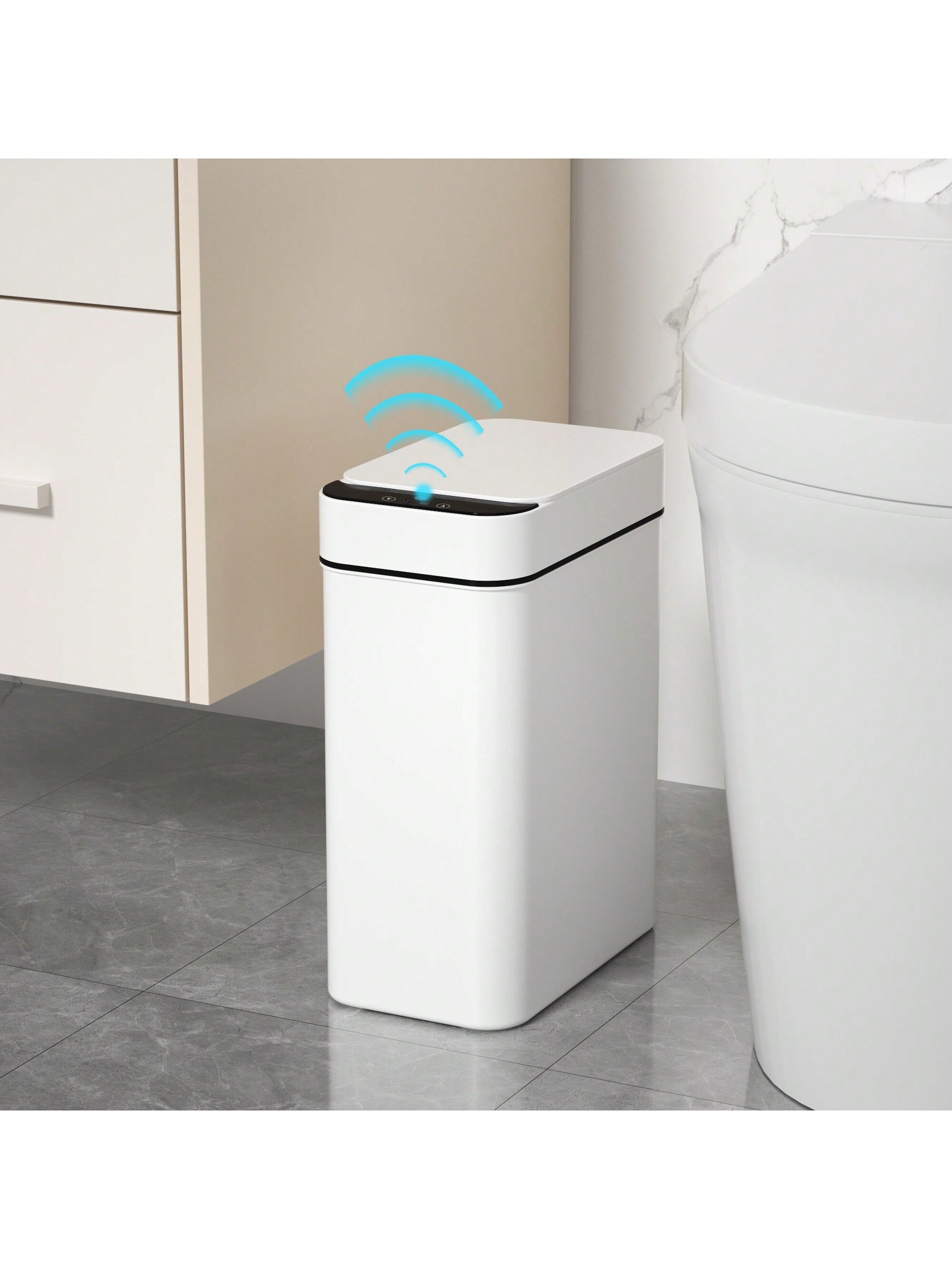 Cestino Per Rifiuti A Sensore Di Movimento Automatico Con Coperchio, Bidone Della Spazzatura Senza Tocco Da 2,7 Galloni, Cestino In Plastica Sottile Intelligente Impermeabile Stretto Per Rifiuti Piccoli, Bianca E Grigia, Adatta Per Cucina, Bagno, Ufficio,