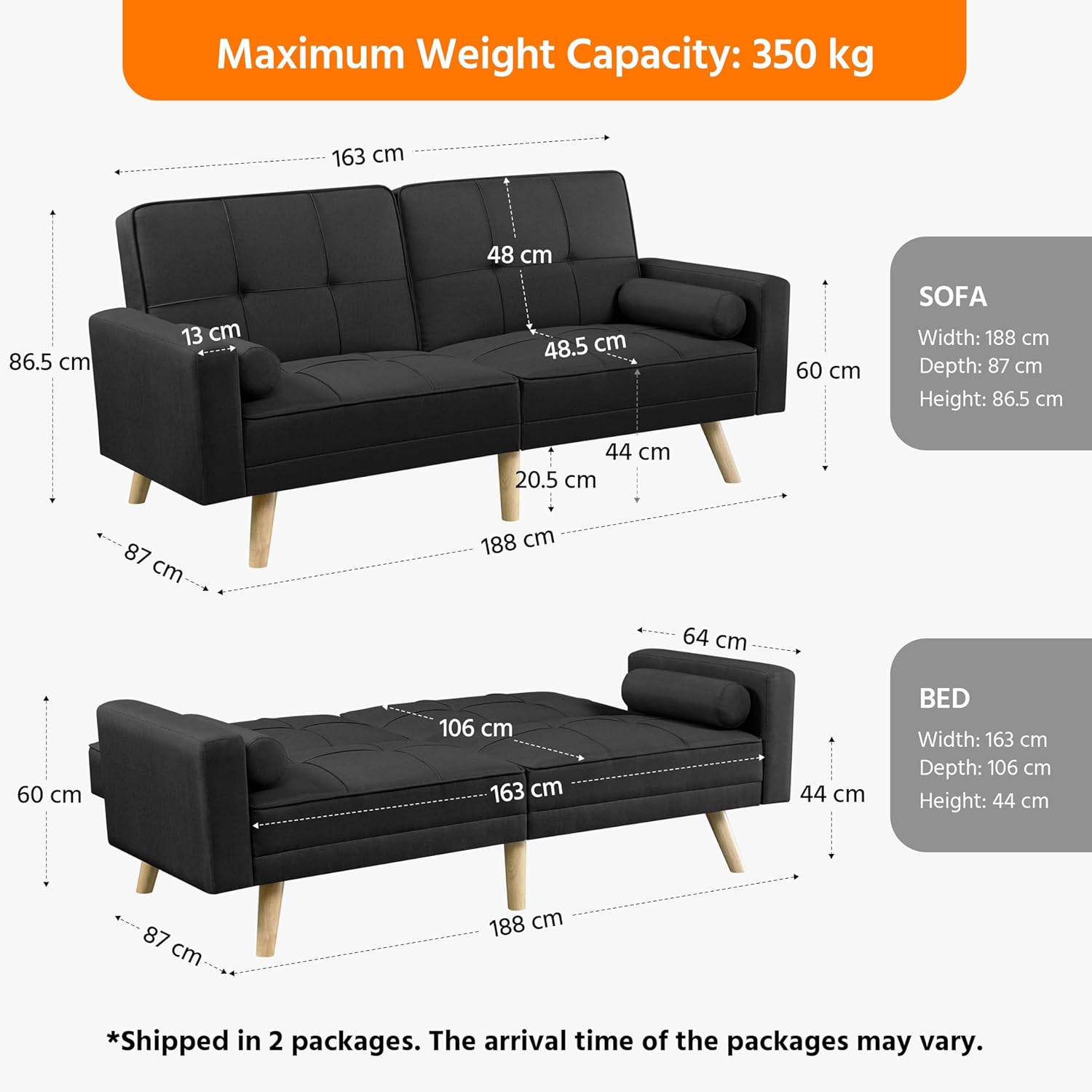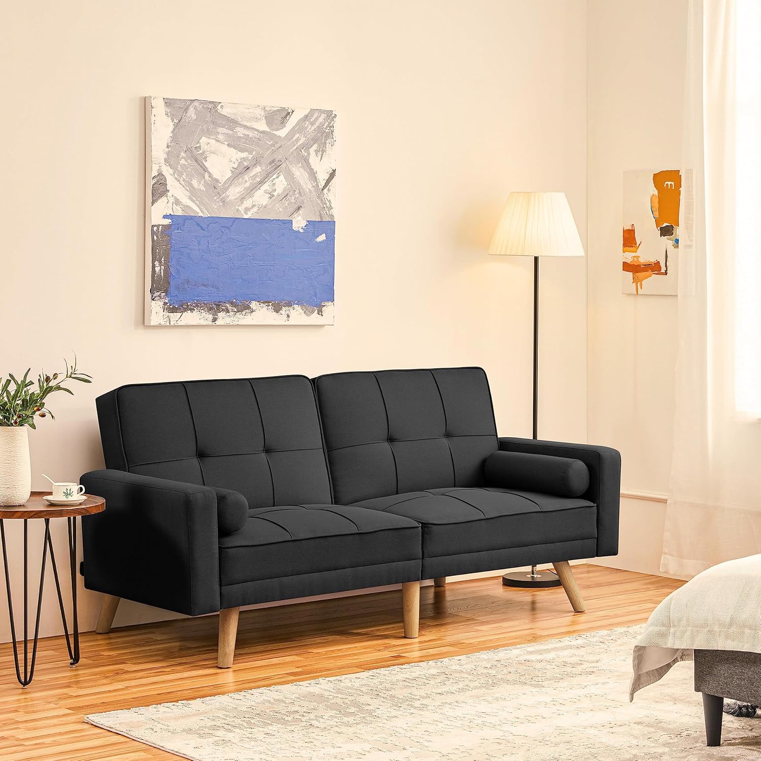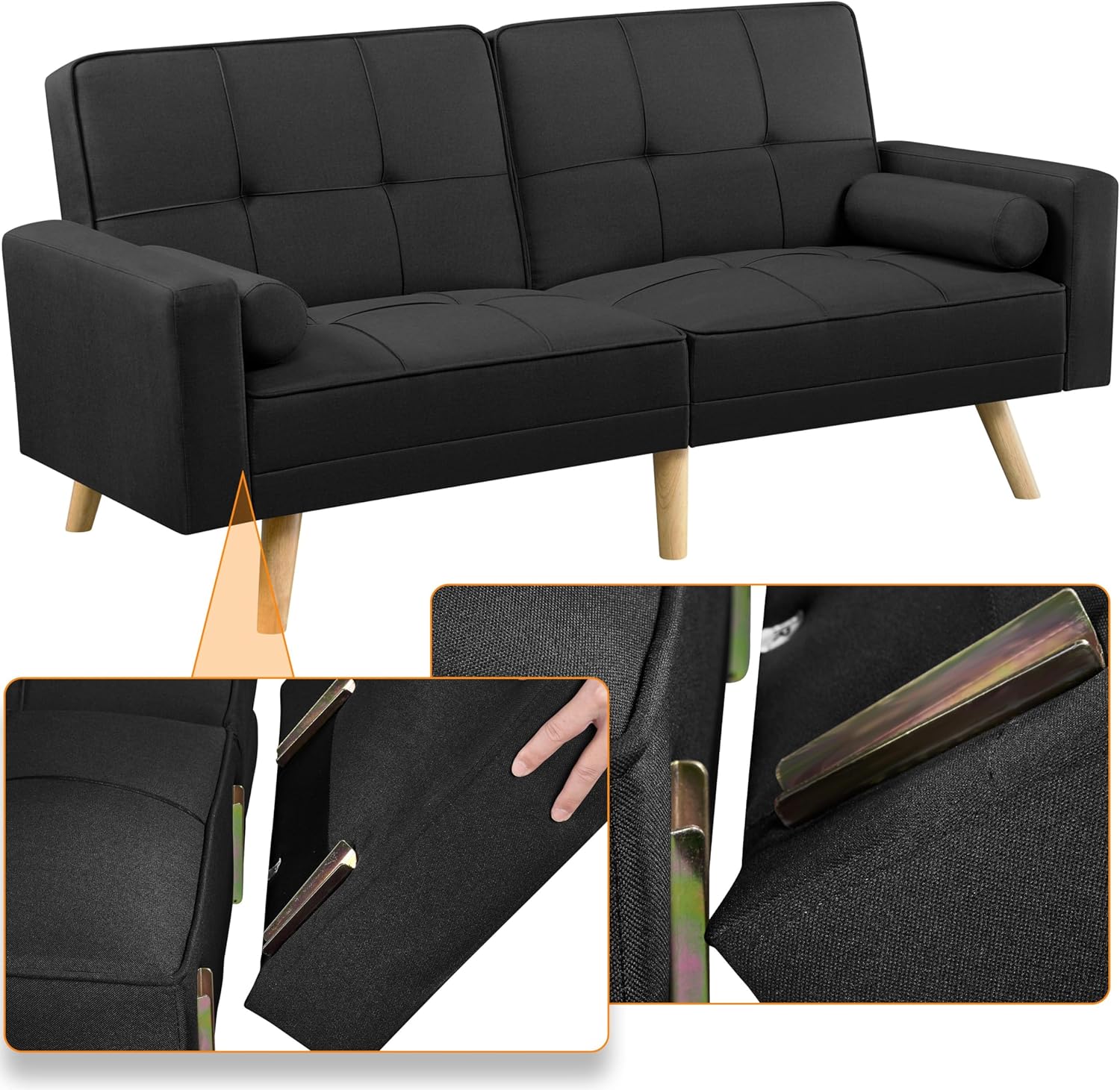 Divano Letto a 3 Posti Divano Trasformabile con Braccioli e 2 Cuscini