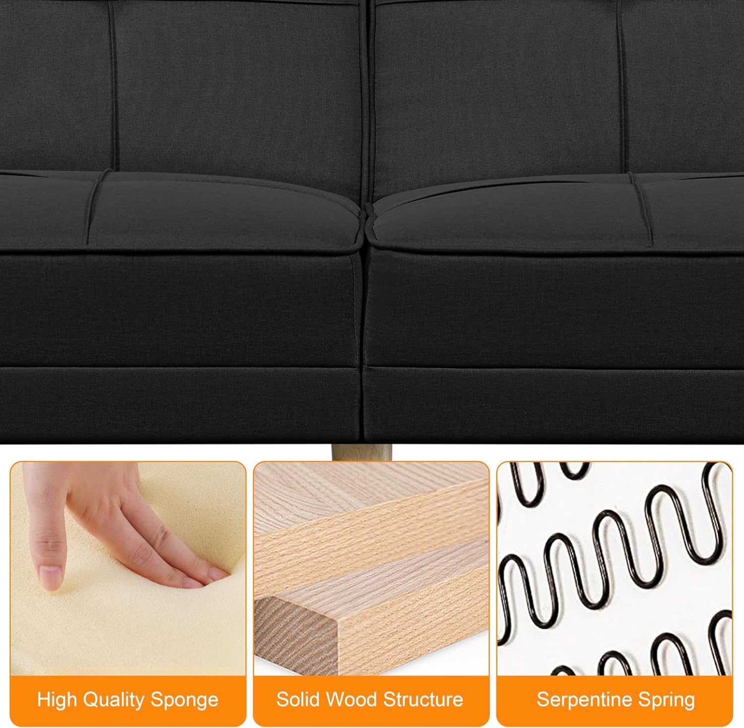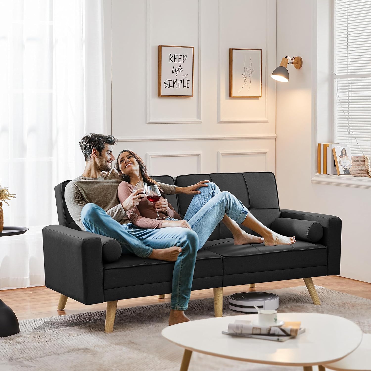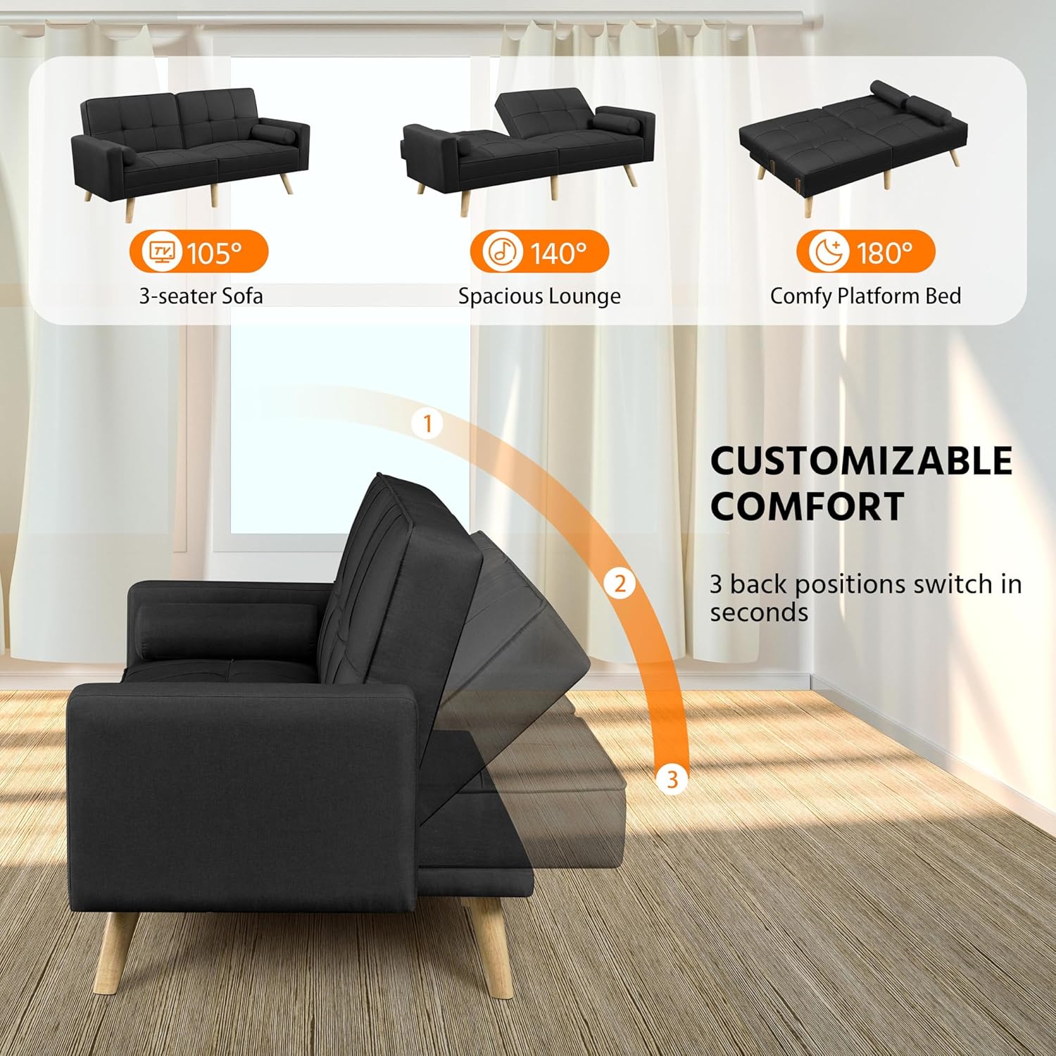Divano Letto a 3 Posti Divano Trasformabile con Braccioli e 2 Cuscini