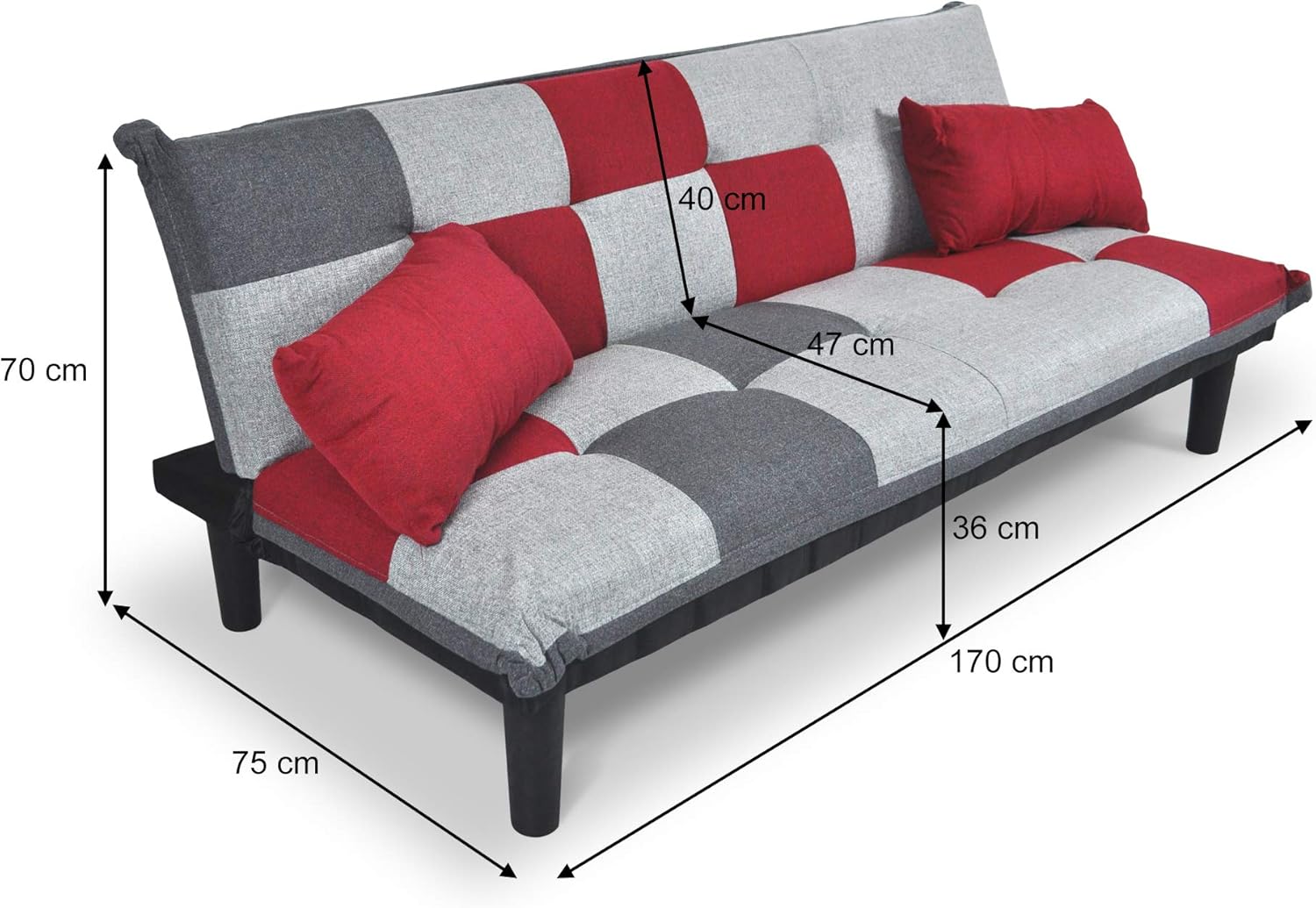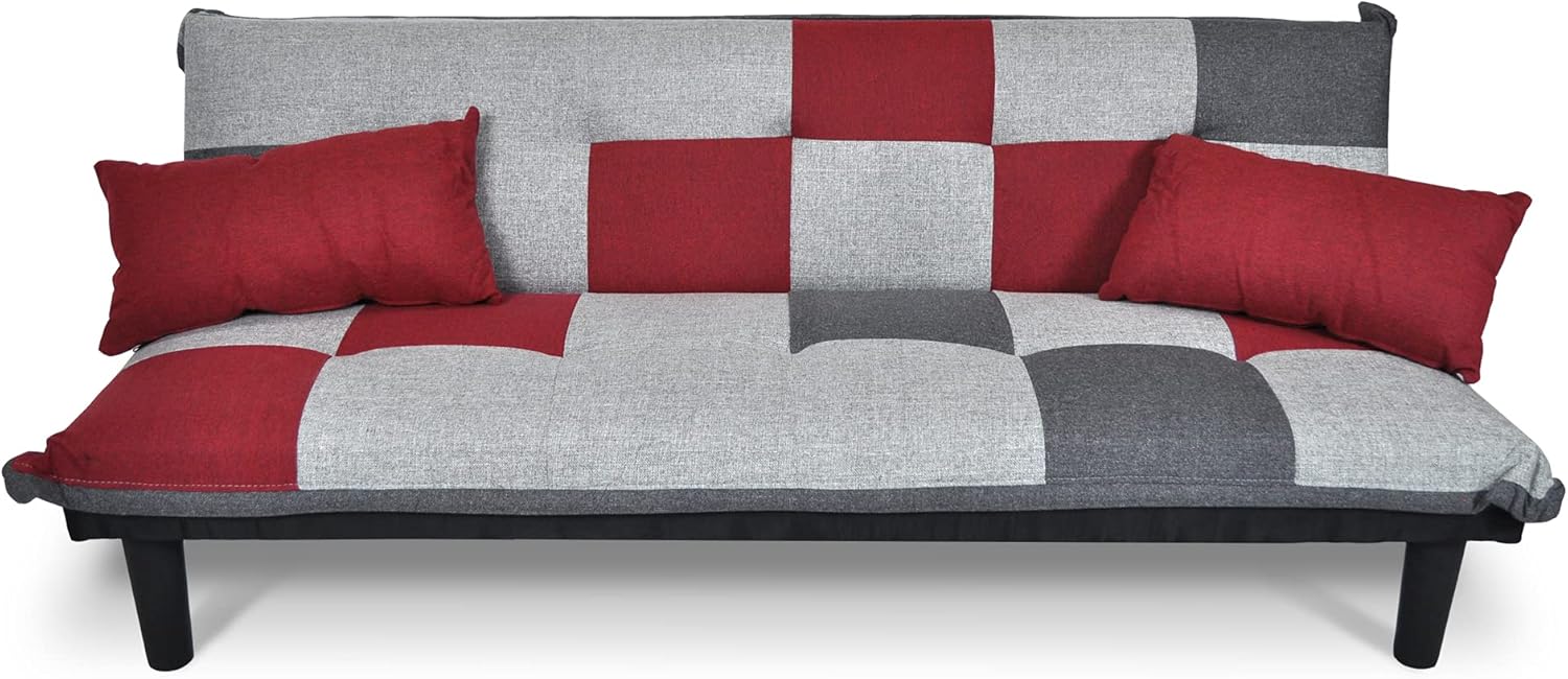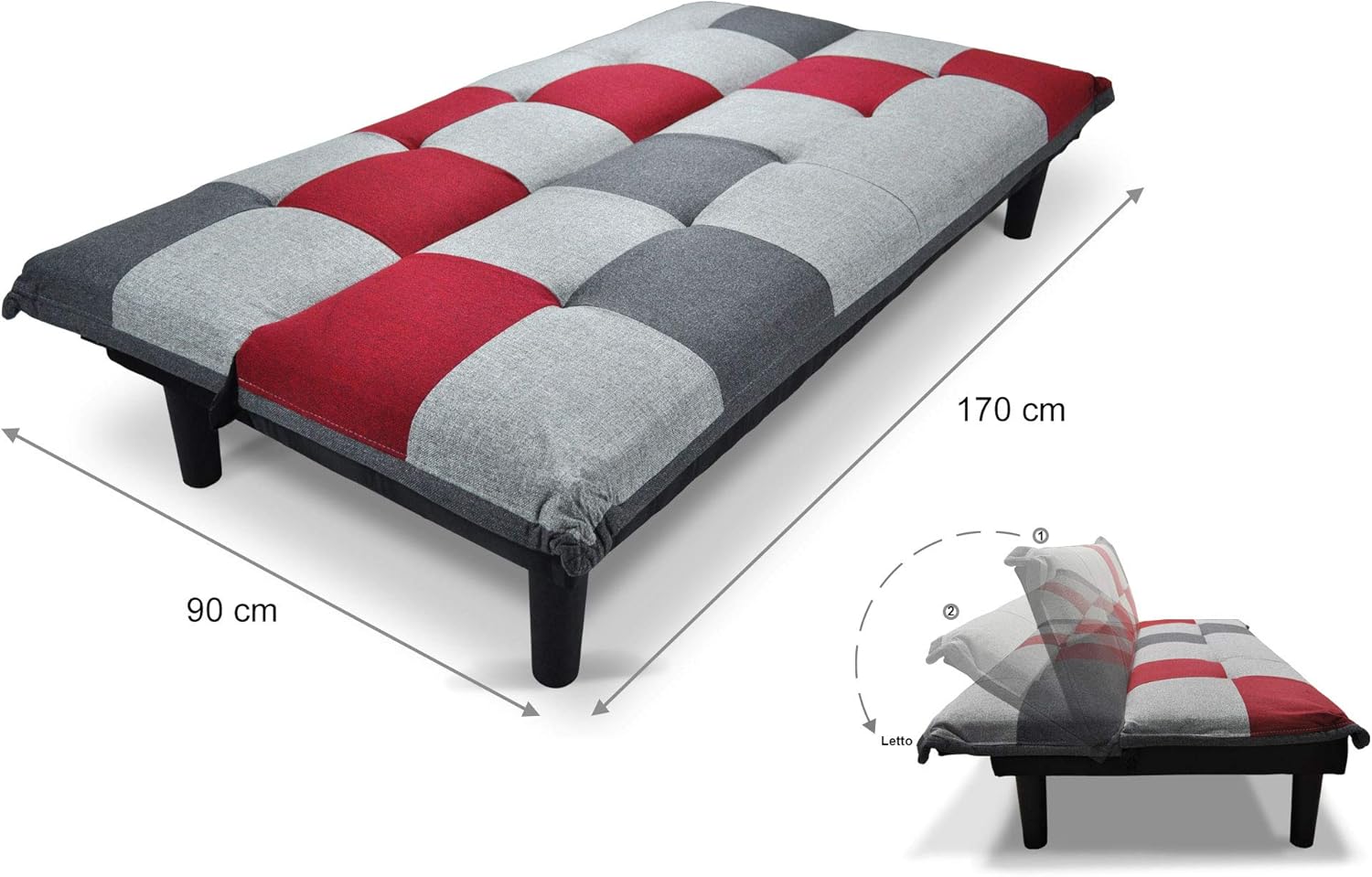 Divano letto clic clac in tessuto grigio scuro rosso grigio chiaro