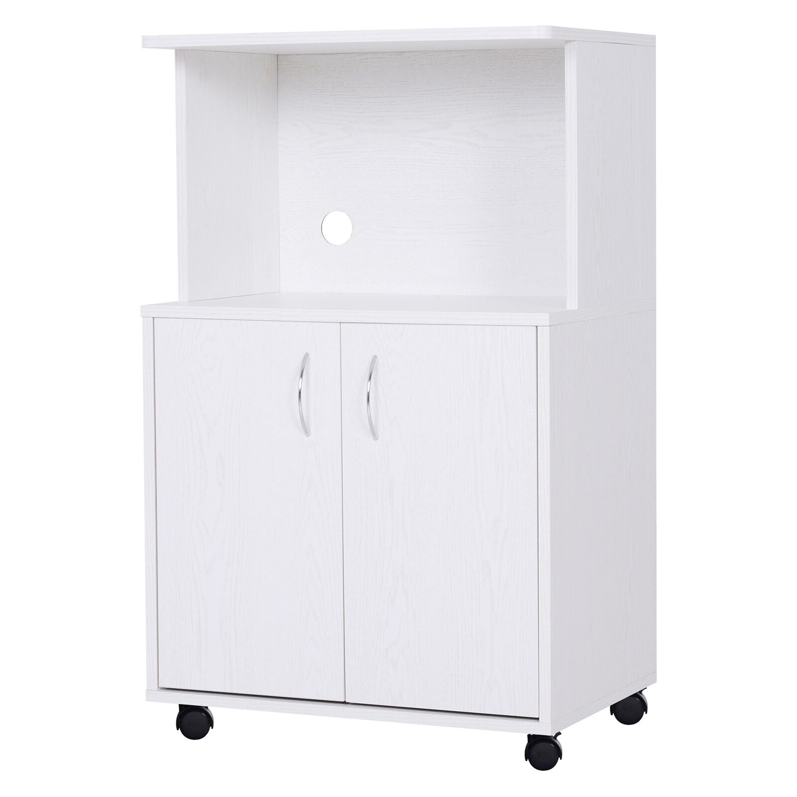 Mobiletto Cucina per Microonde con Armadietto e Ruote in Legno Bianco