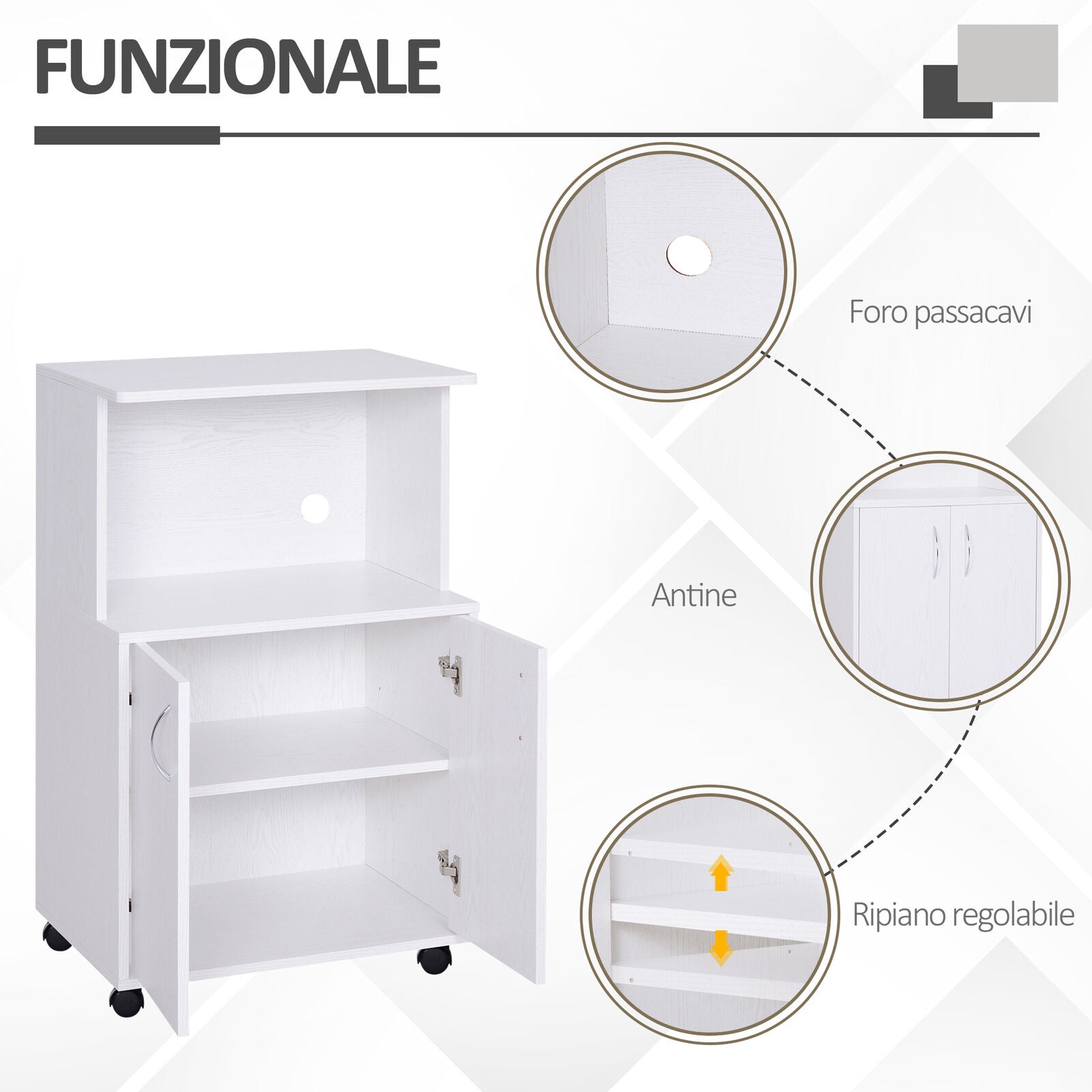 - Pratico per posizionare microonde, tostapane o altri piccoli elettrodomestici