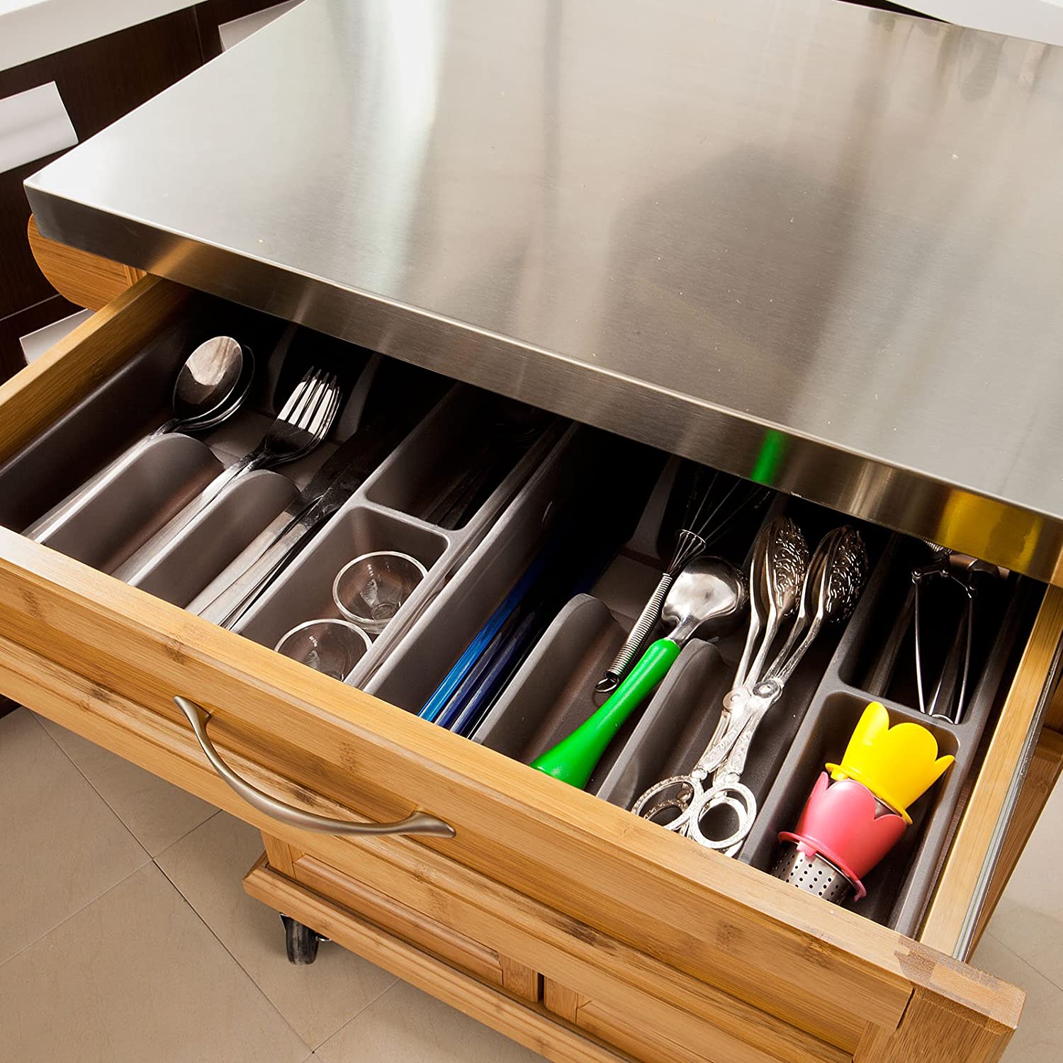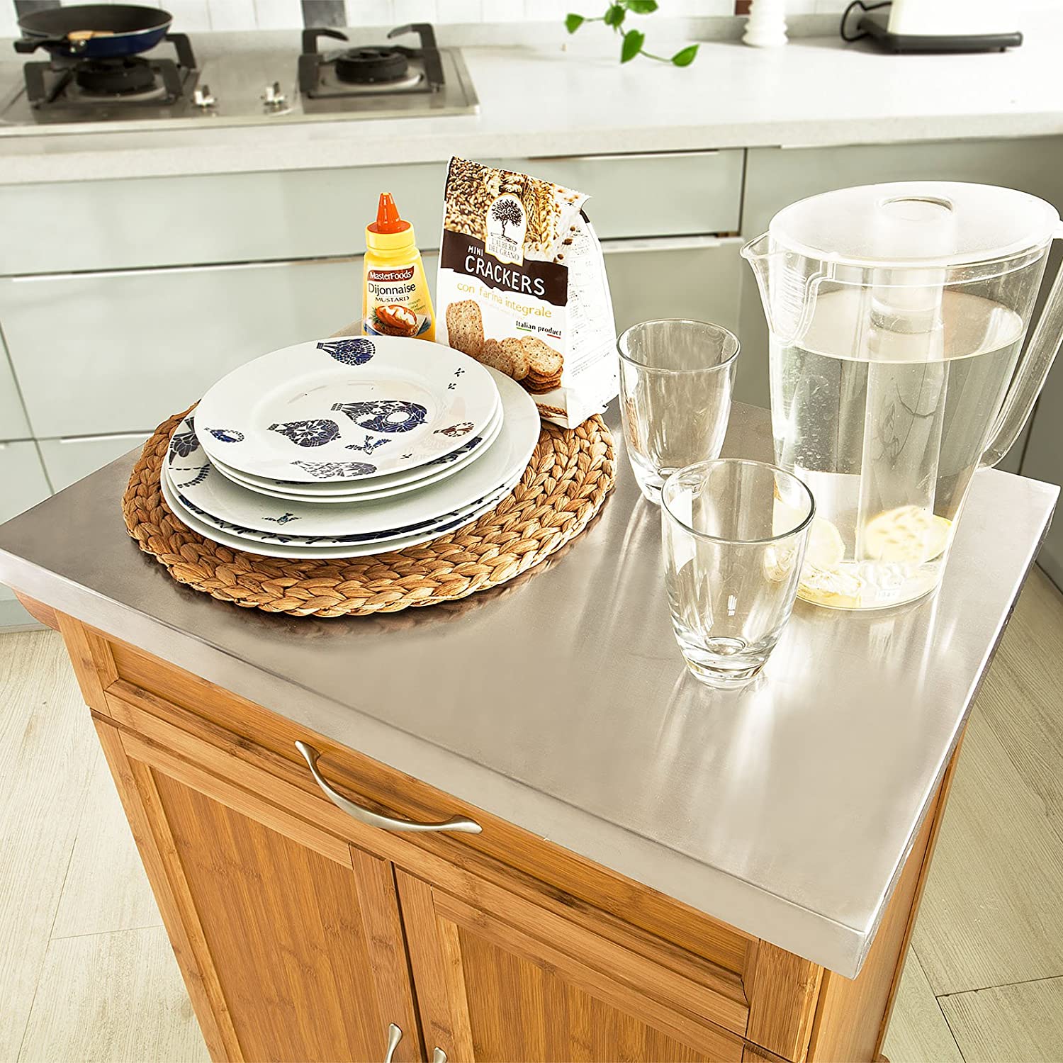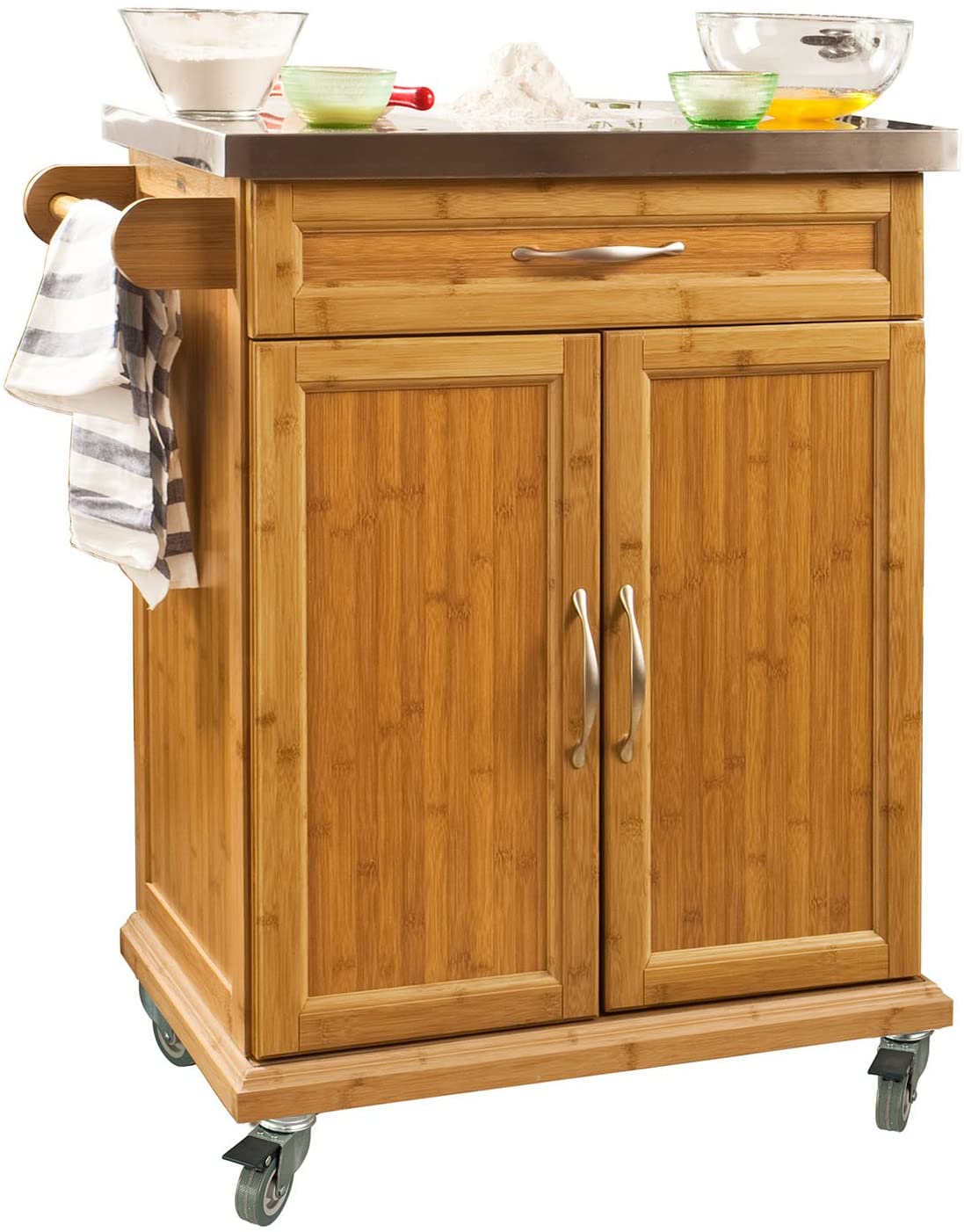Carrello da cucina moderno Design semplice e raffinato, Ideale per tenere in ordine la cucina e trovare un posto a ogni cosa! *Robusto e Stabile* Molto robusto e stabile, la carrello può essere caricato fino a 80 kg Materiale: Struttura in bambù e piano in acciaio Carico massimo a 80...