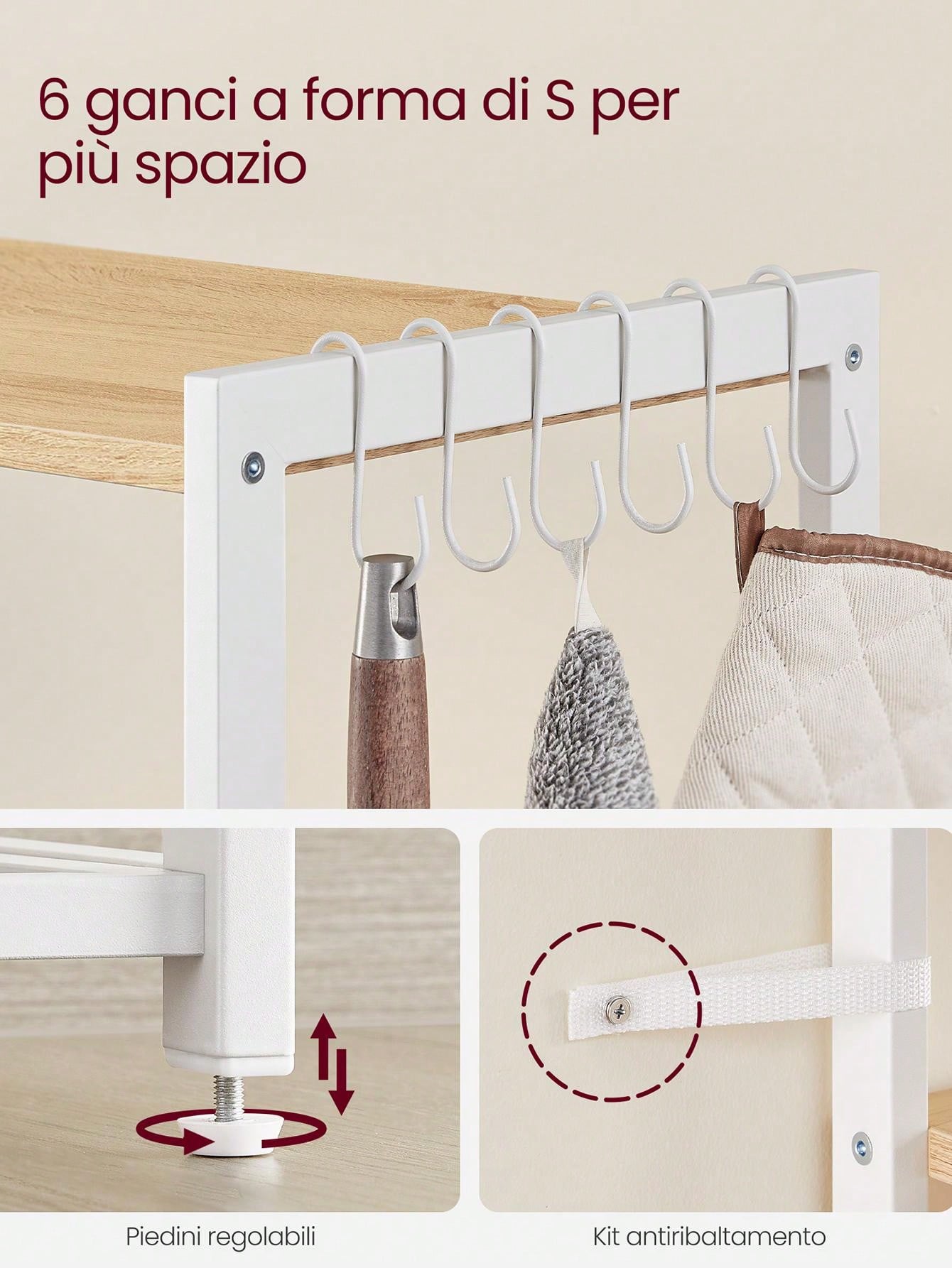 [Soluzione con stile] Se vuoi risolvere il caos in cucina, questo scaffale della collezione ALINRU è la soluzione che offre anche aspetto gradevole