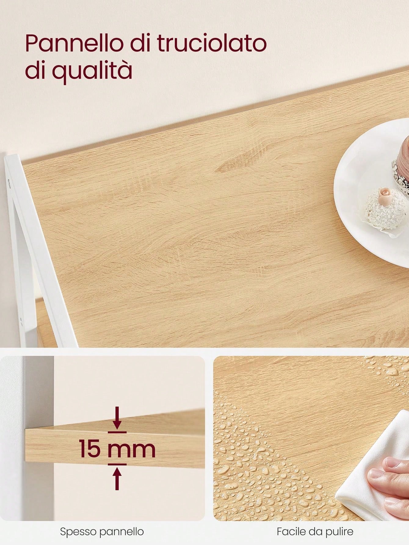 Materiale: Pannello di Truciolato con Impiallacciatura in Melamina, Struttura in Acciaio