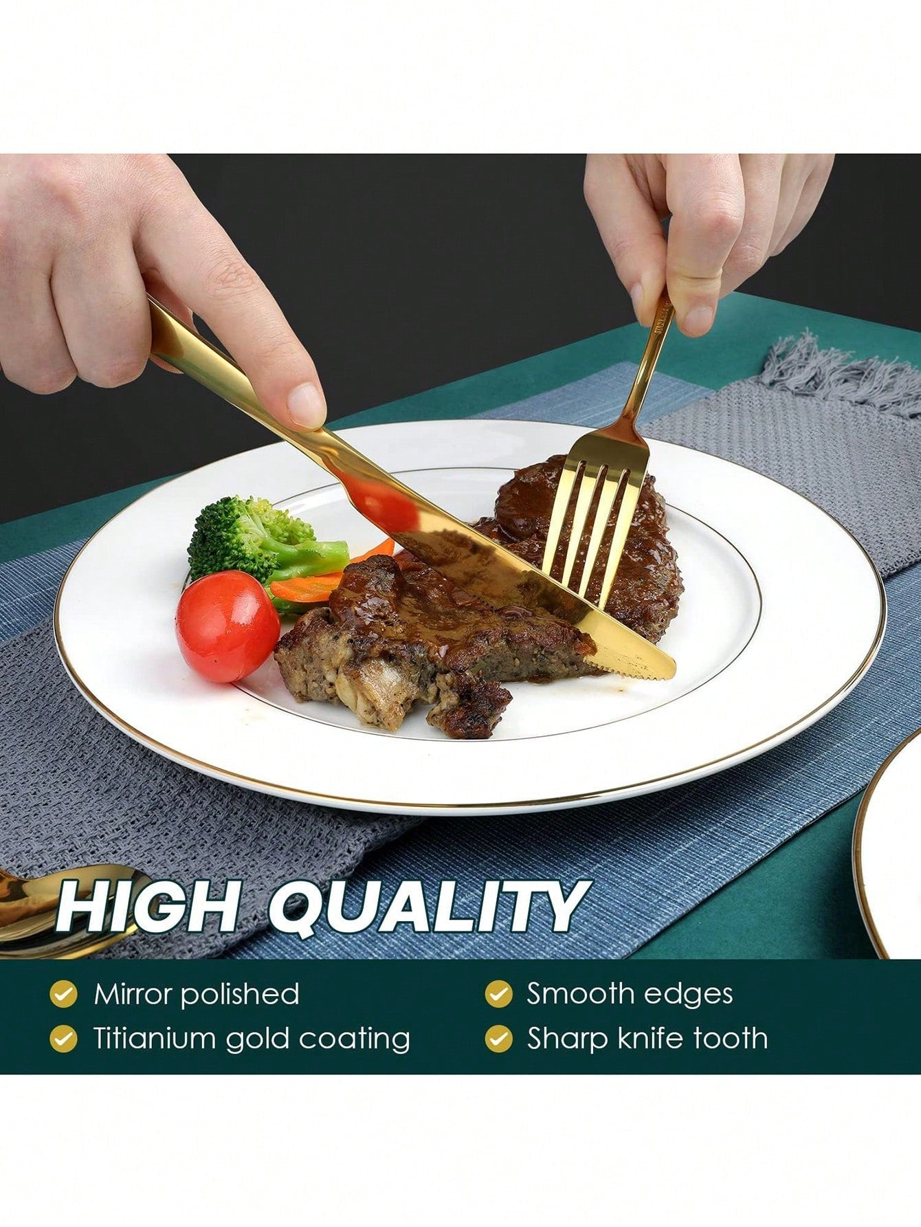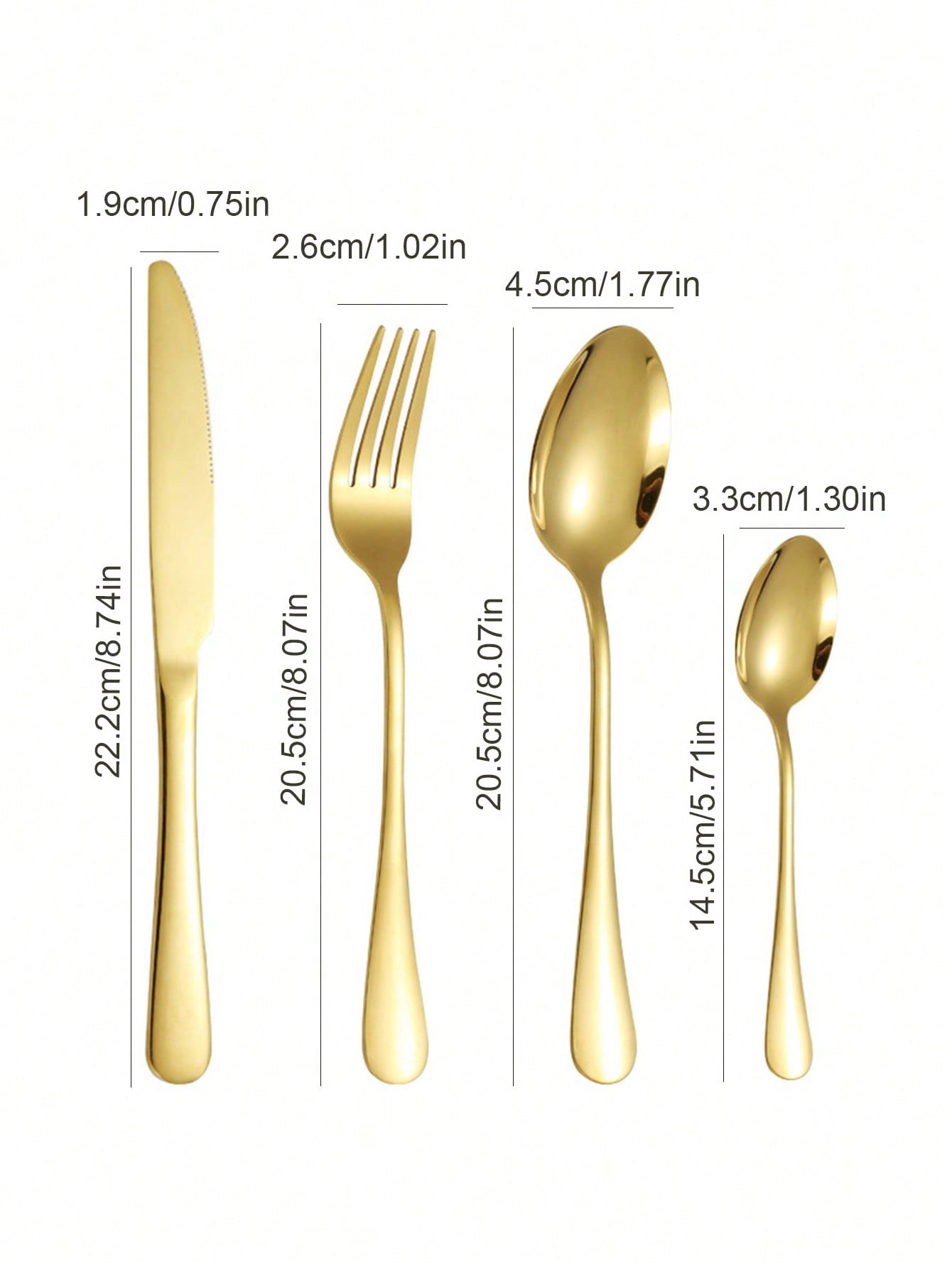 Set di 12/16/24 pezzi di posate in acciaio inossidabile con scatola di stoccaggio, confezione regalo, adatto per casa, cucina, matrimonio, party Colore: Dorato Adatto per Microonde: Non Lavabile in lavastoviglie: Non Tipo di motivo: Colore unico Adatto per forno (-4~220 gradi Celsius): Non Placcatura: Nessun metallo prezioso placcato Tessuto: Acciaio...