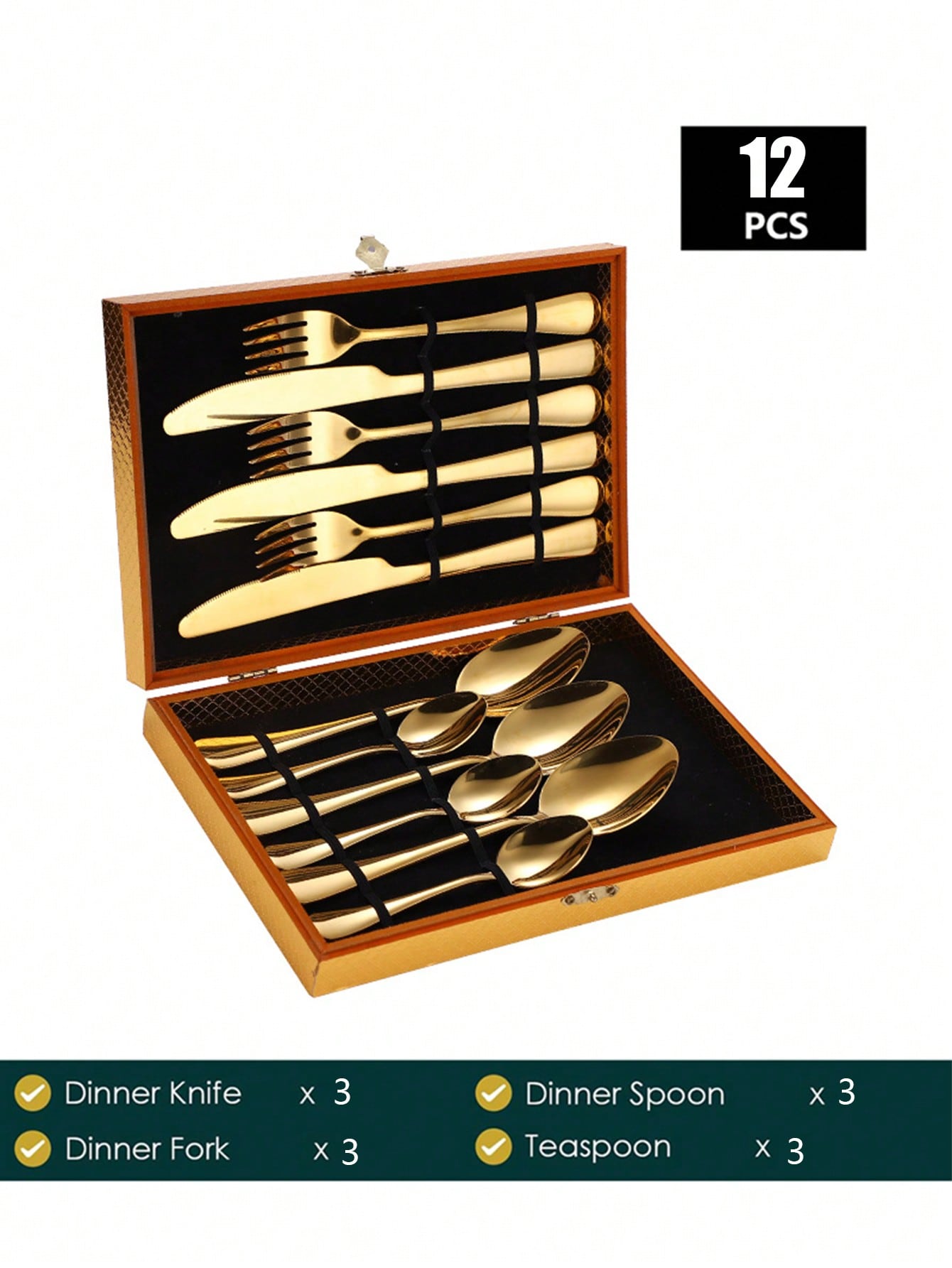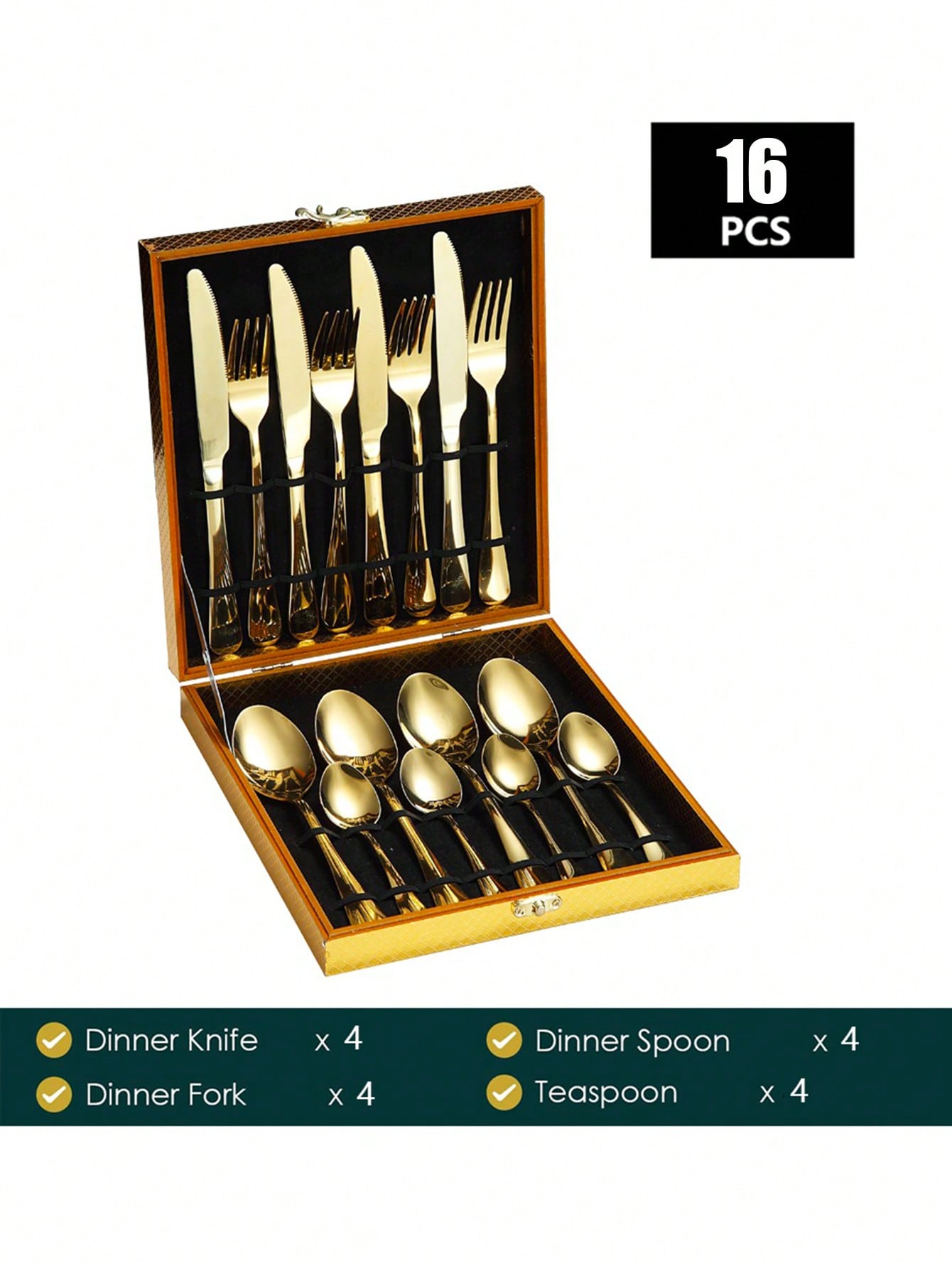 Set di 12/16/24 pezzi di posate in acciaio inossidabile con scatola di stoccaggio, confezione regalo, adatto per casa, cucina, matrimonio, party