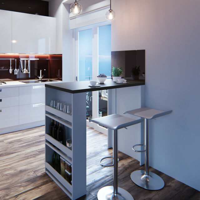 Tavolo da bar cucina penisola con 3 ripiani portaoggetti vari colori