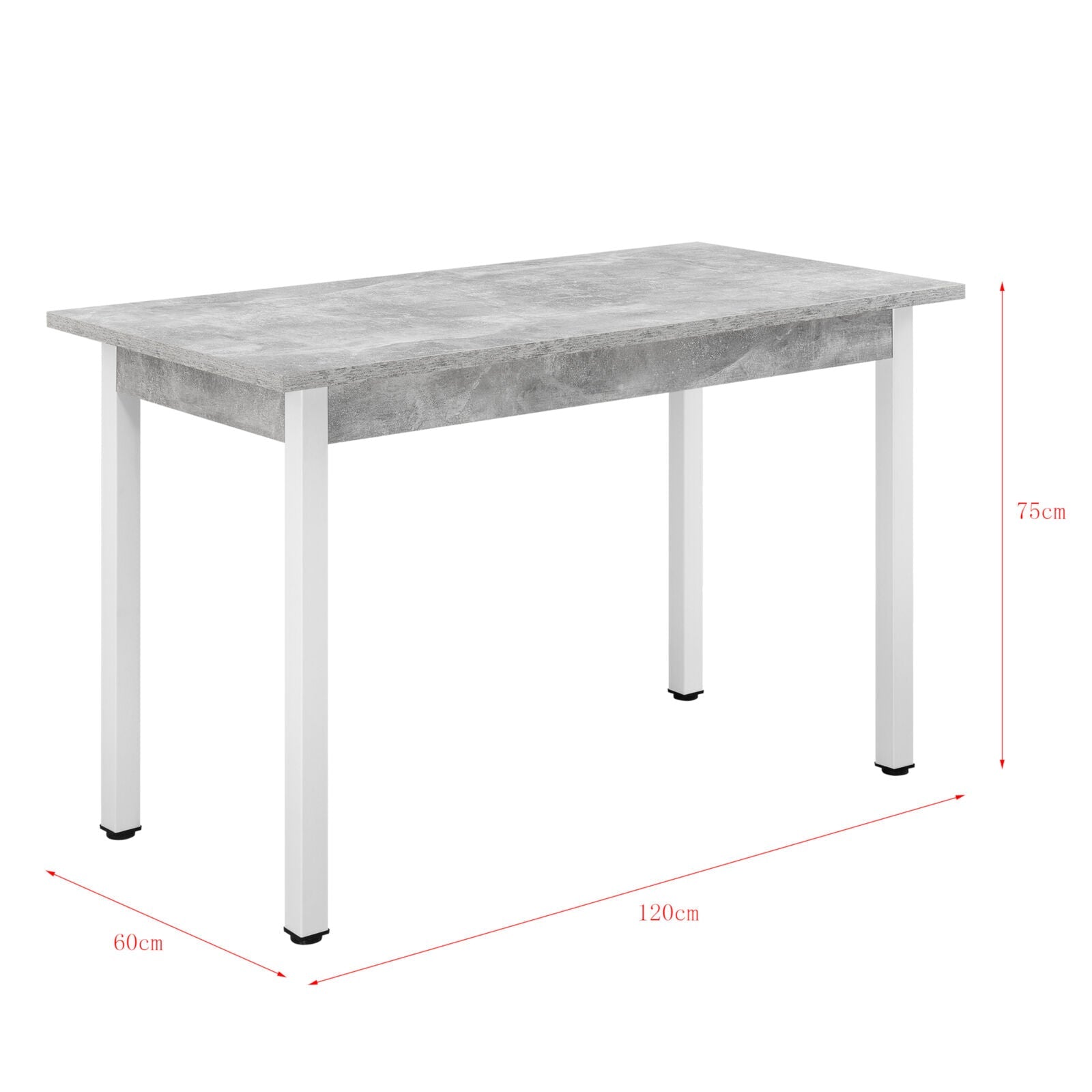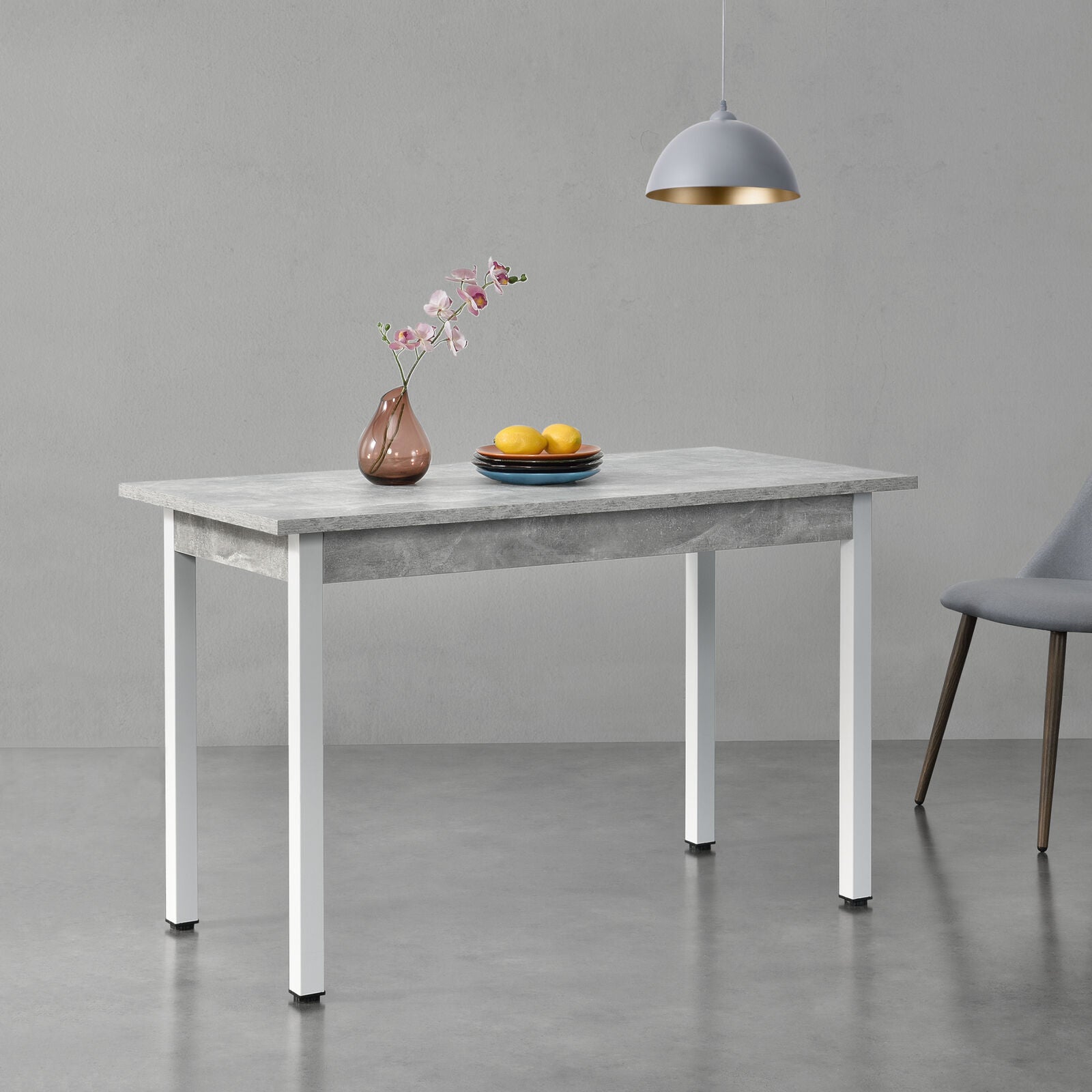 Tavolo da Pranzo/Cucina con Gambe in Acciaio 120x60cm Effetto Cemento/Bianco