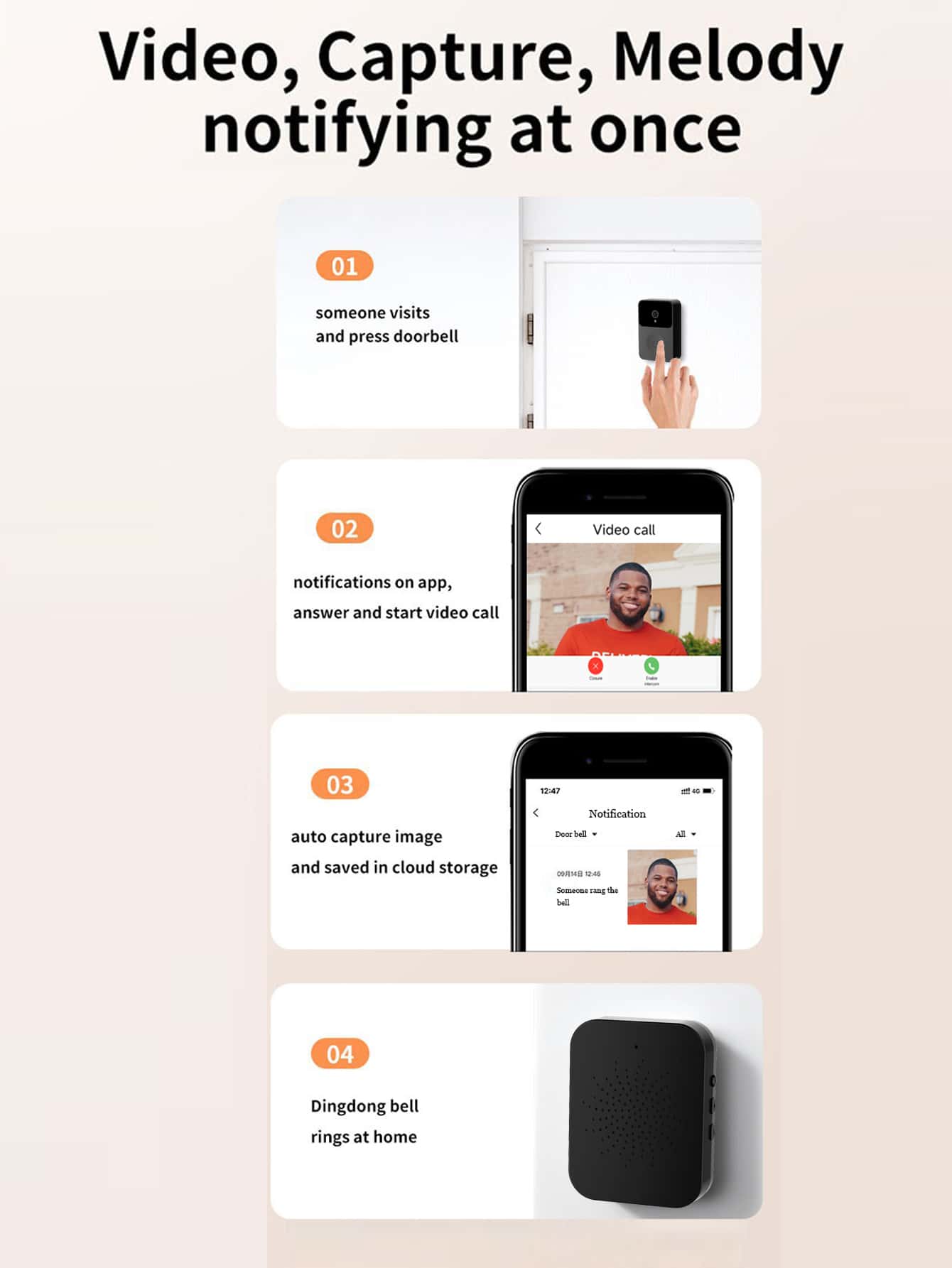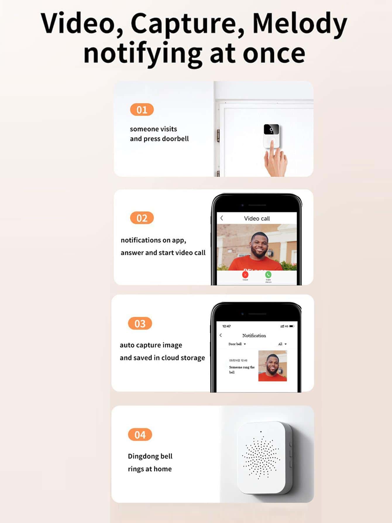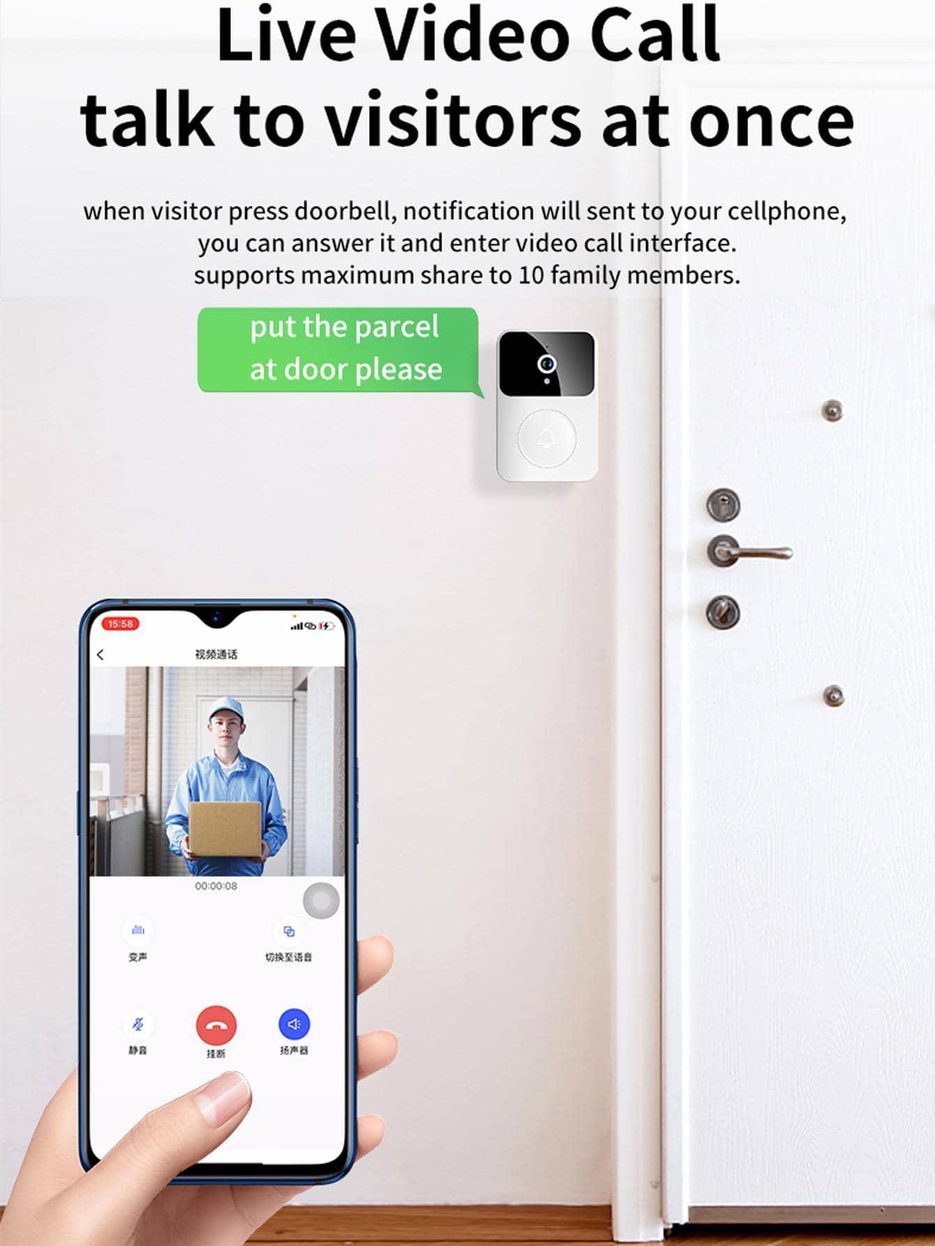 Campanello di casa ABS visivo moderno bianco per casa