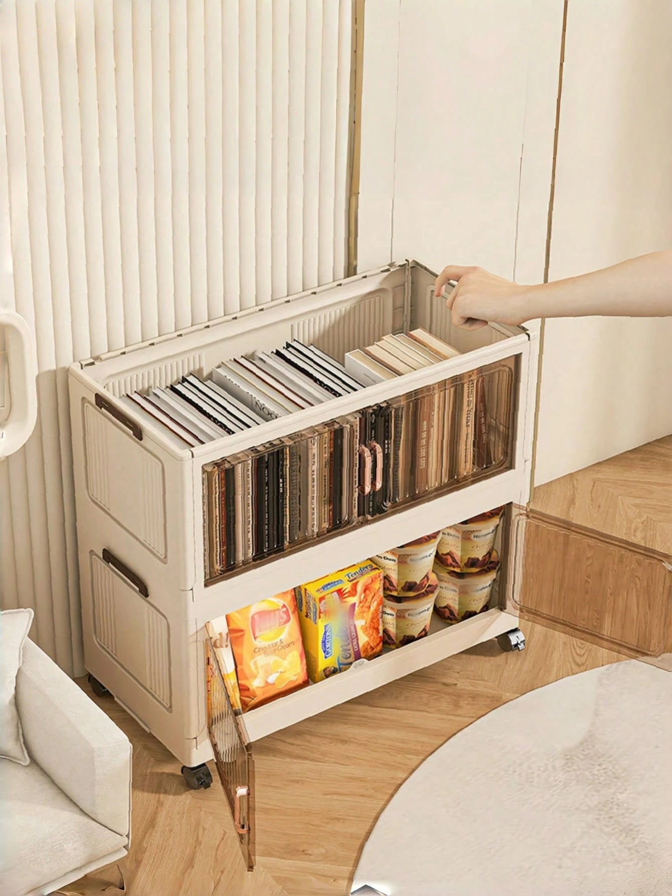 Dotato di doppia porta e struttura portatile, si adatta perfettamente a qualsiasi ambiente domestico.