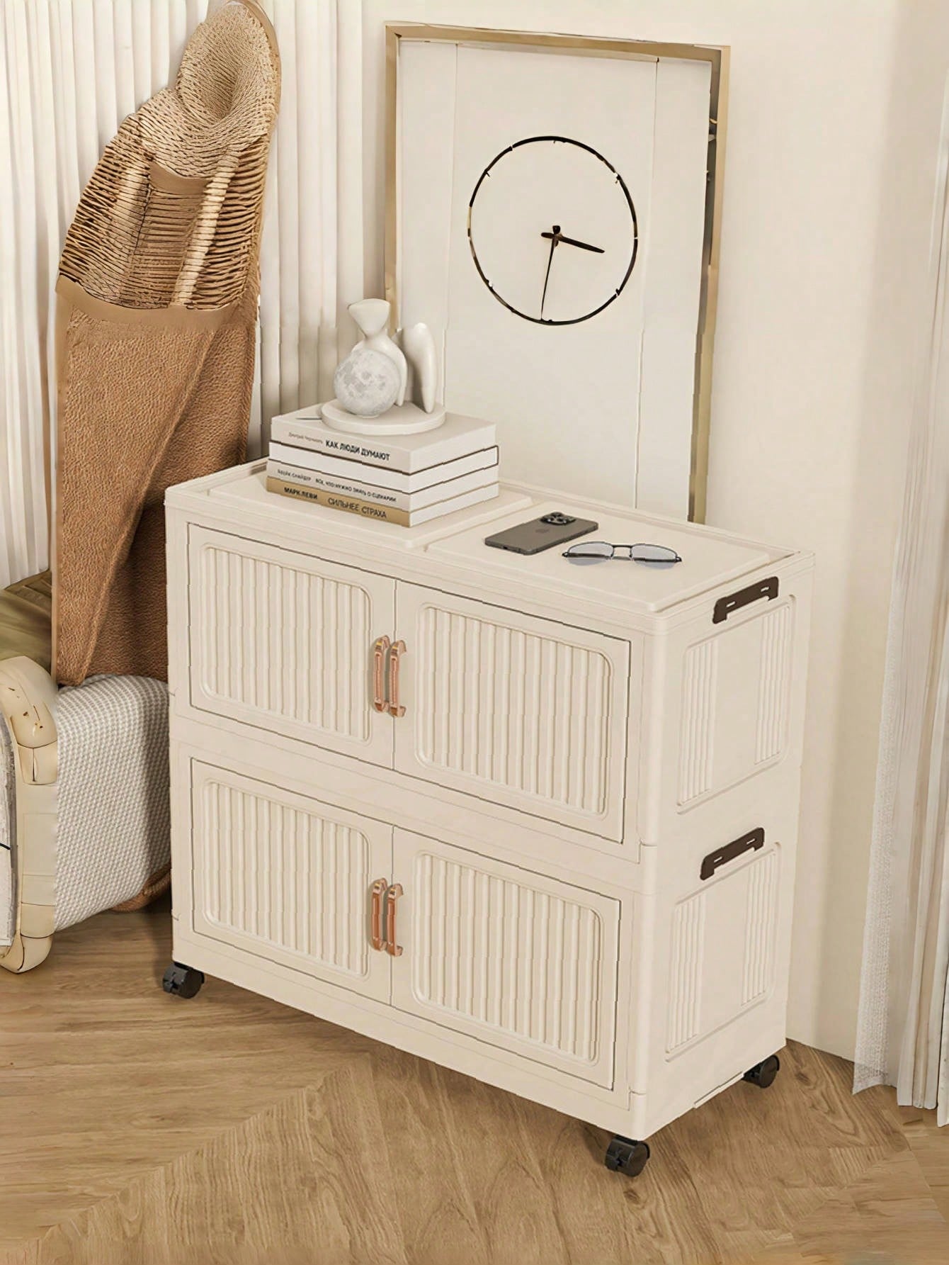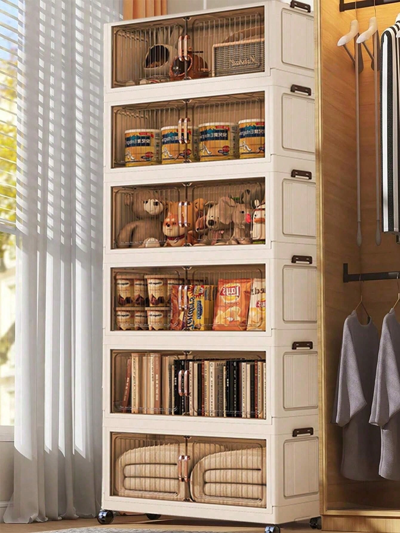 Armadio pieghevole compatto con larghezza di 50 cm, ideale per organizzare e conservare abiti invernali, decorazioni natalizie e articoli stagionali.