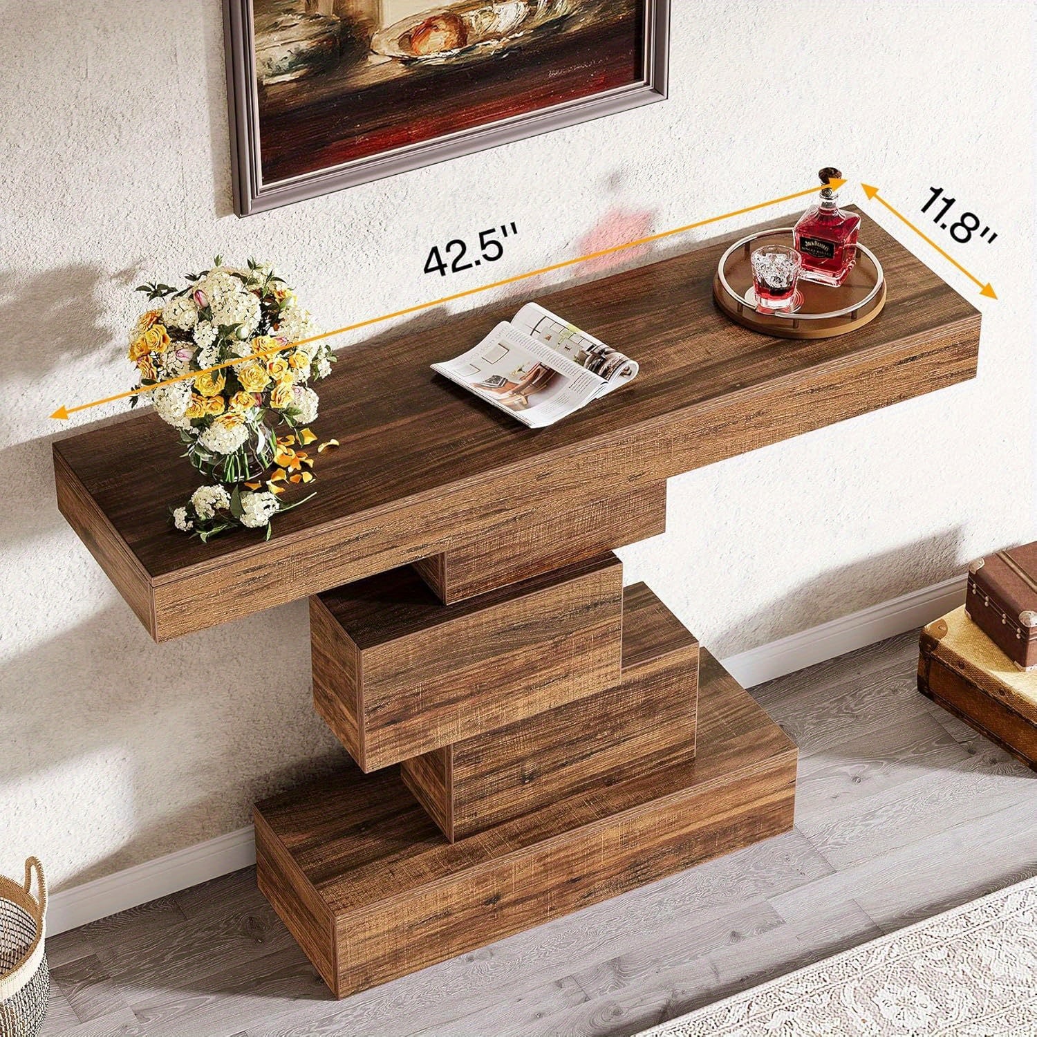 Consolle Industriale 108cm Tavolo Stretto in Legno Rustico Marrone con Base Geometrica