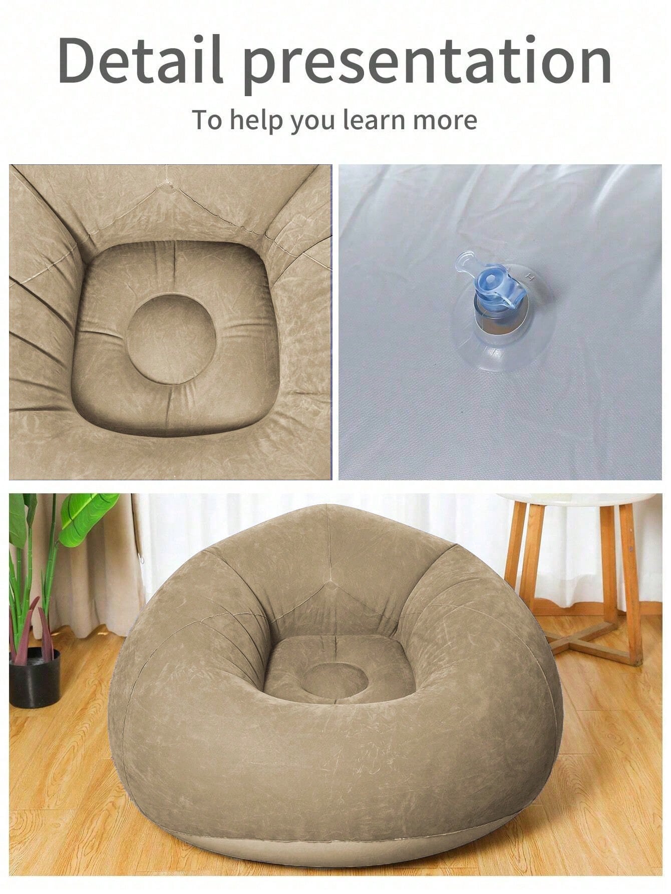 Divano gonfiabile multifunzionale realizzato in PVC spesso e resistente, ideale per chi cerca comfort versatile. Funziona come poltrona a sacco, letto chaise longue o tatami, adattandosi perfettamente a qualsiasi ambiente: dal soggiorno al campeggio all'aperto. La struttura gonfiabile garantisce praticità di trasporto e storage, mentre il materiale robusto assicura durabilità...
