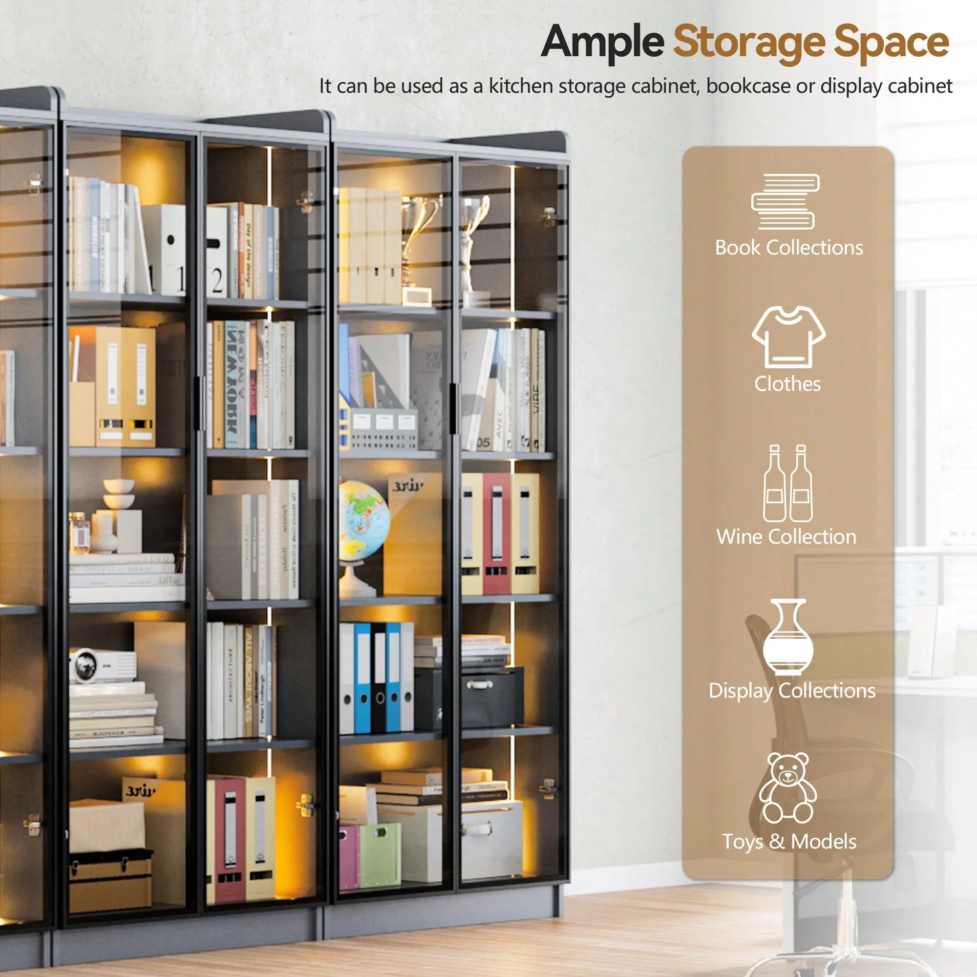 Il design versatile la rende perfetta per soggiorno, camera da letto o ufficio, trasformando qualsiasi ambiente in uno spazio espositivo raffinato.