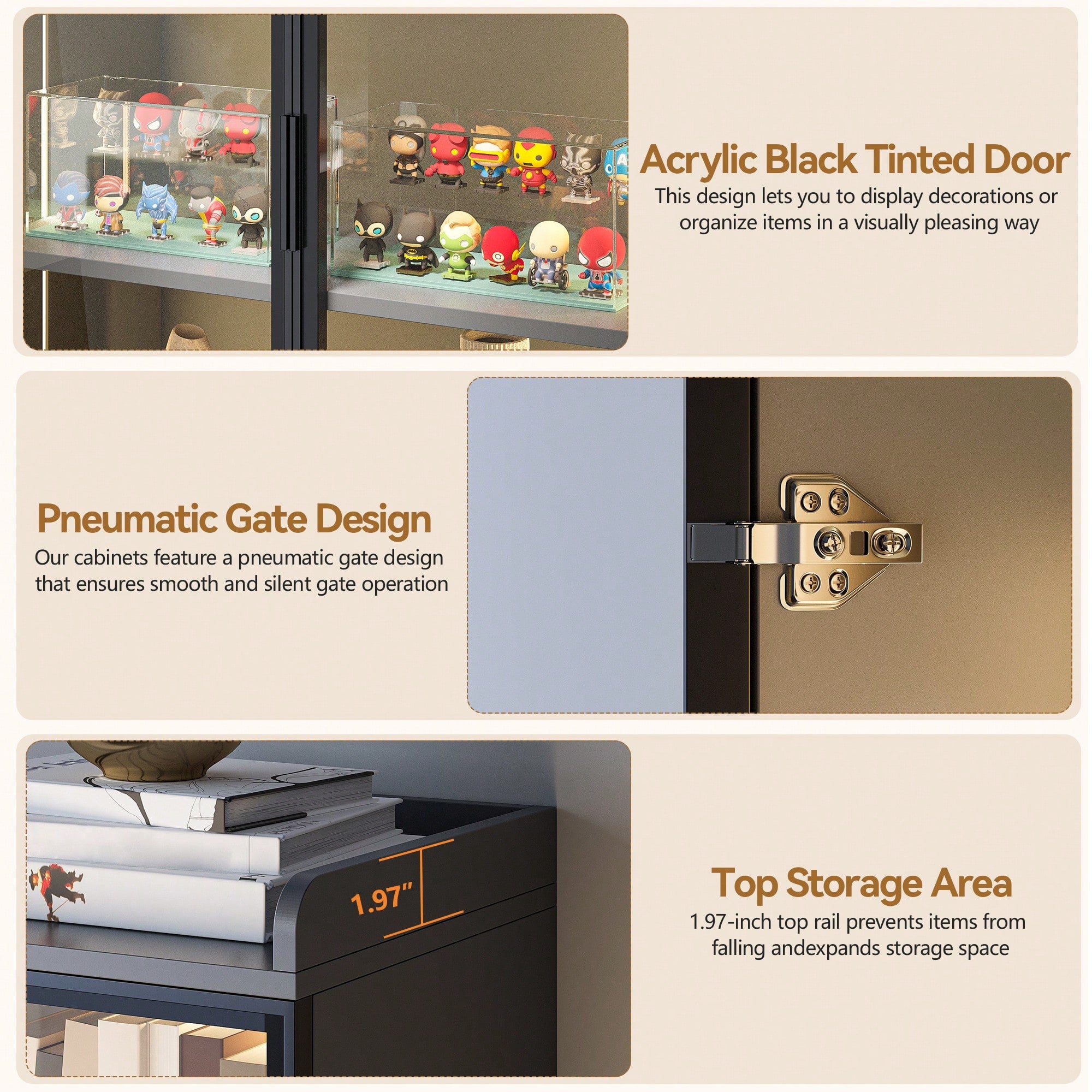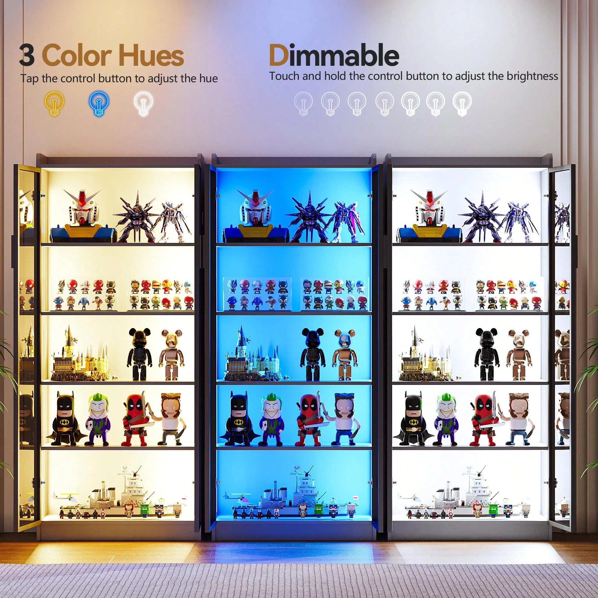 Realizzata in vetro e legno con struttura a 3 strati, questa vetrina da collezione garantisce stabilità e durabilità nel tempo.