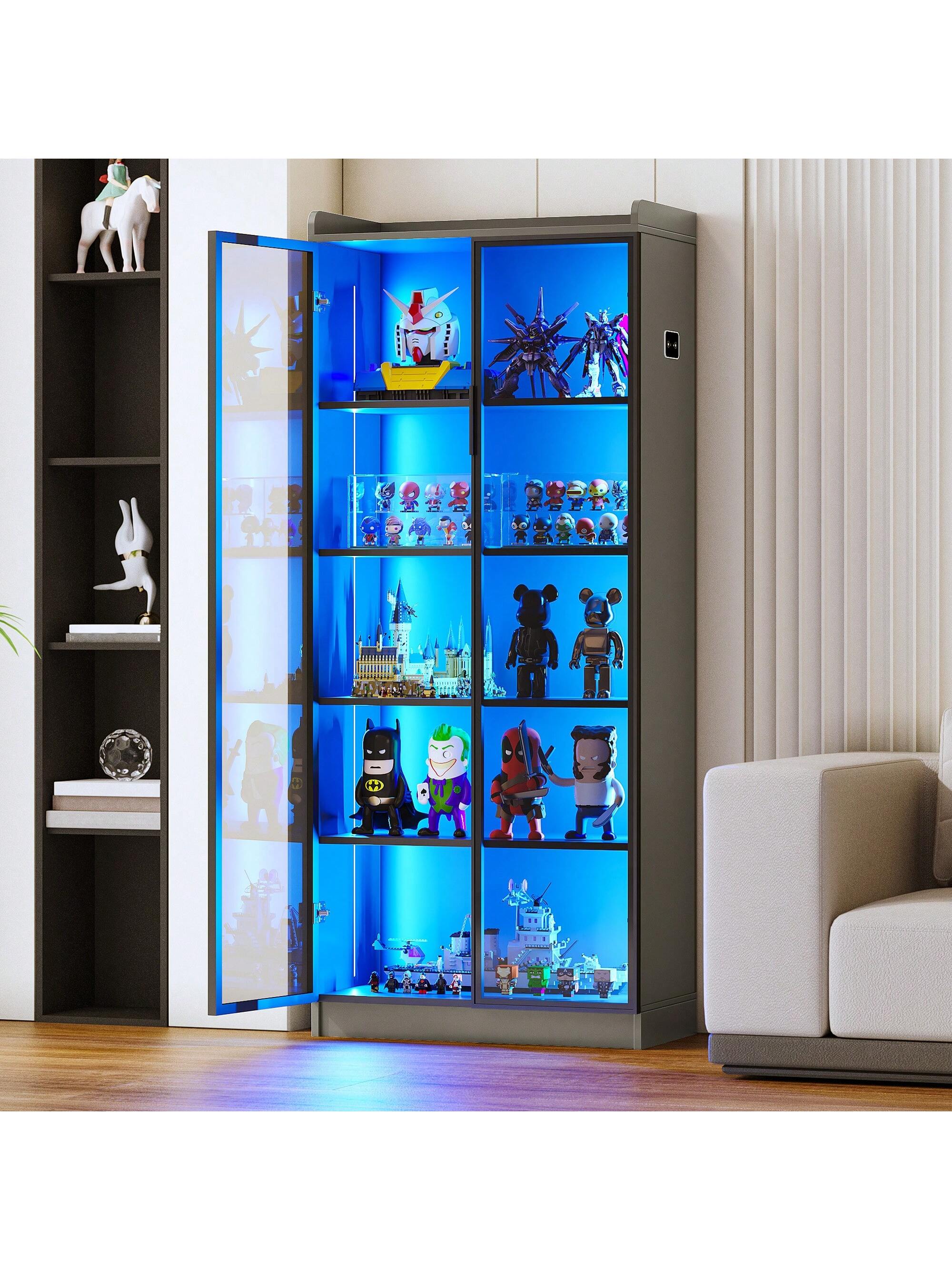 Vetrina in vetro e legno a 3 strati, vetrina da collezione, 1 anta con serratura