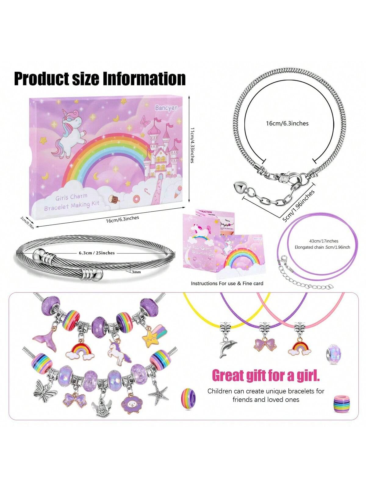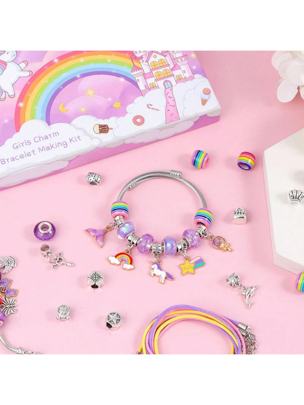 Kit Per La Creazione Di Gioielli Fai-da-te A Tema Unicorno Con Braccialetto, 55 Pezzi Con Scatola Regalo