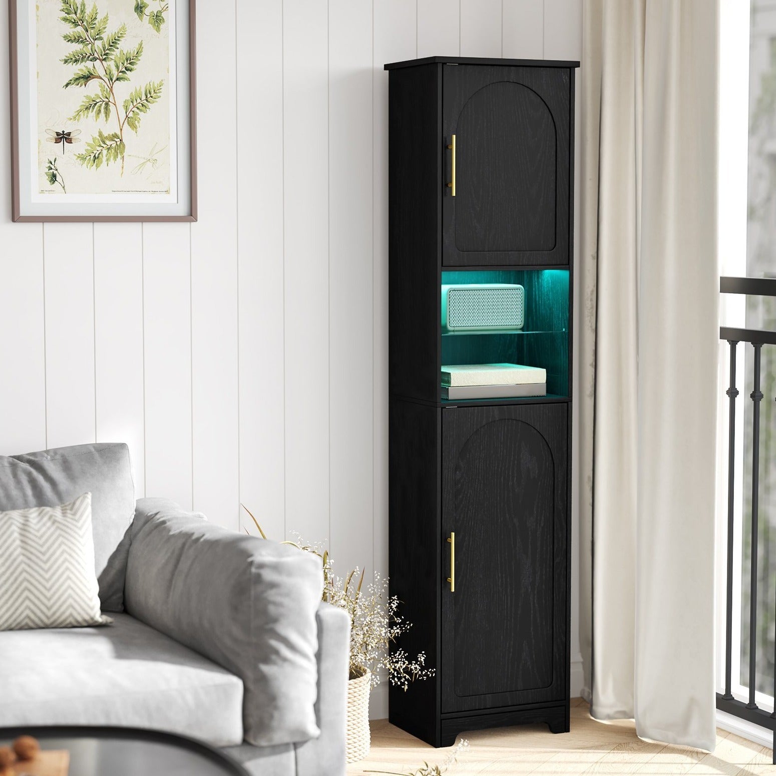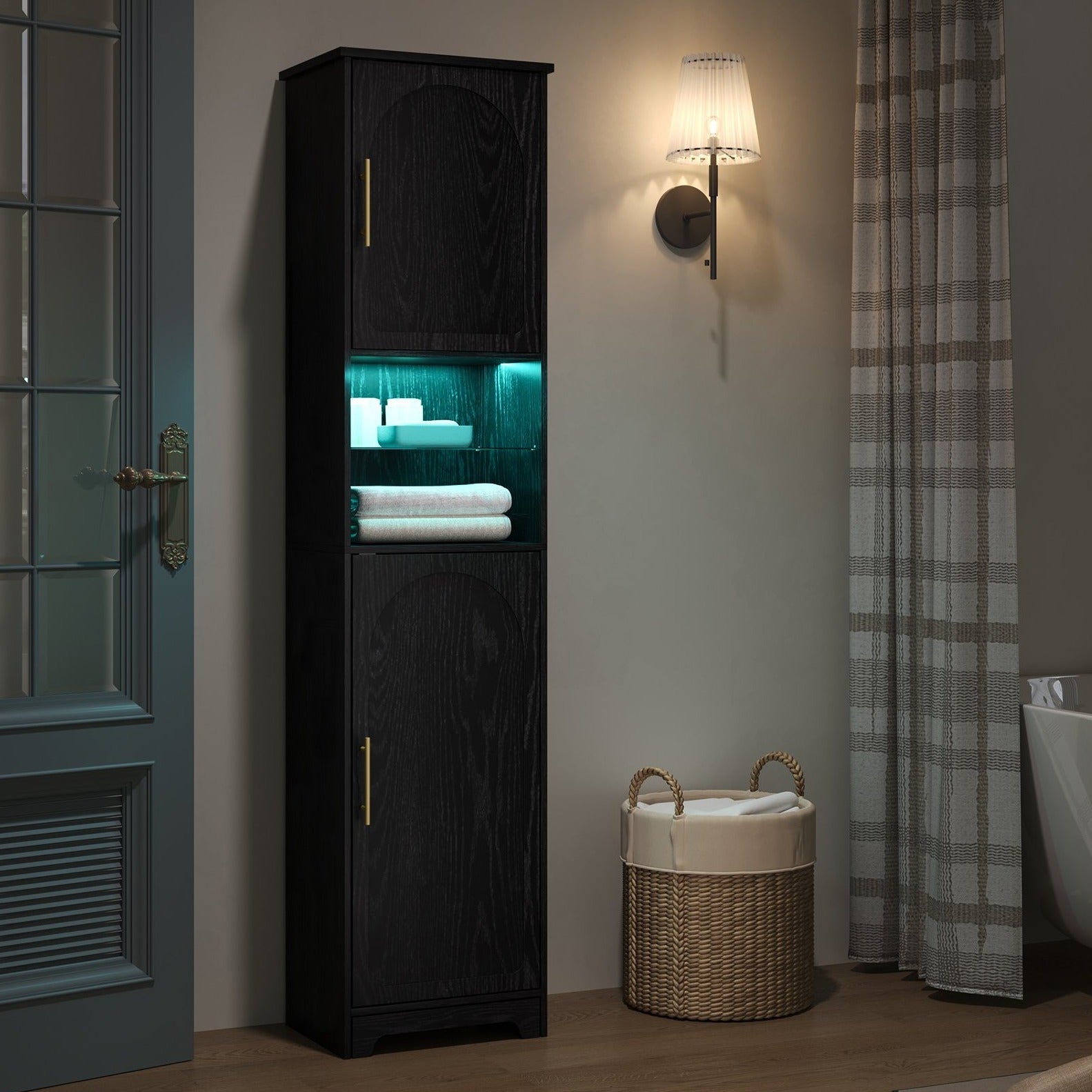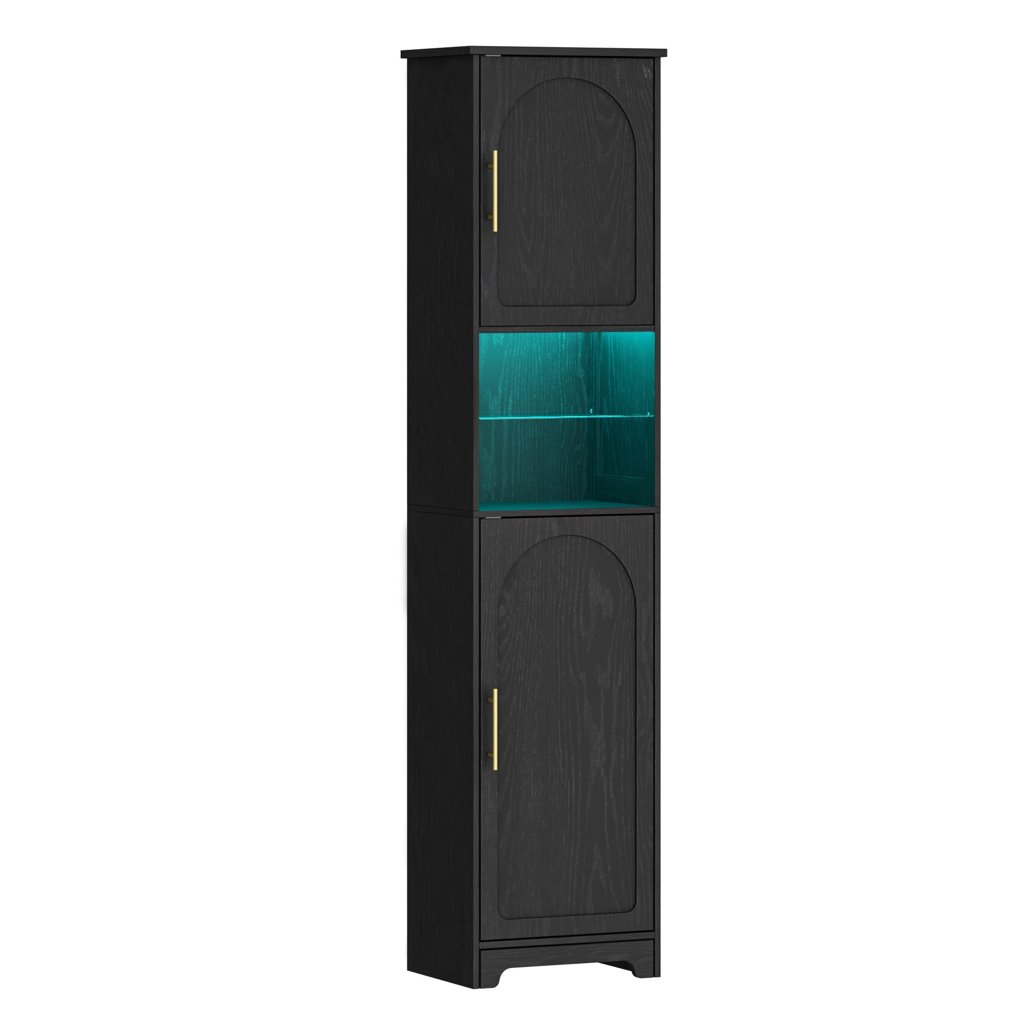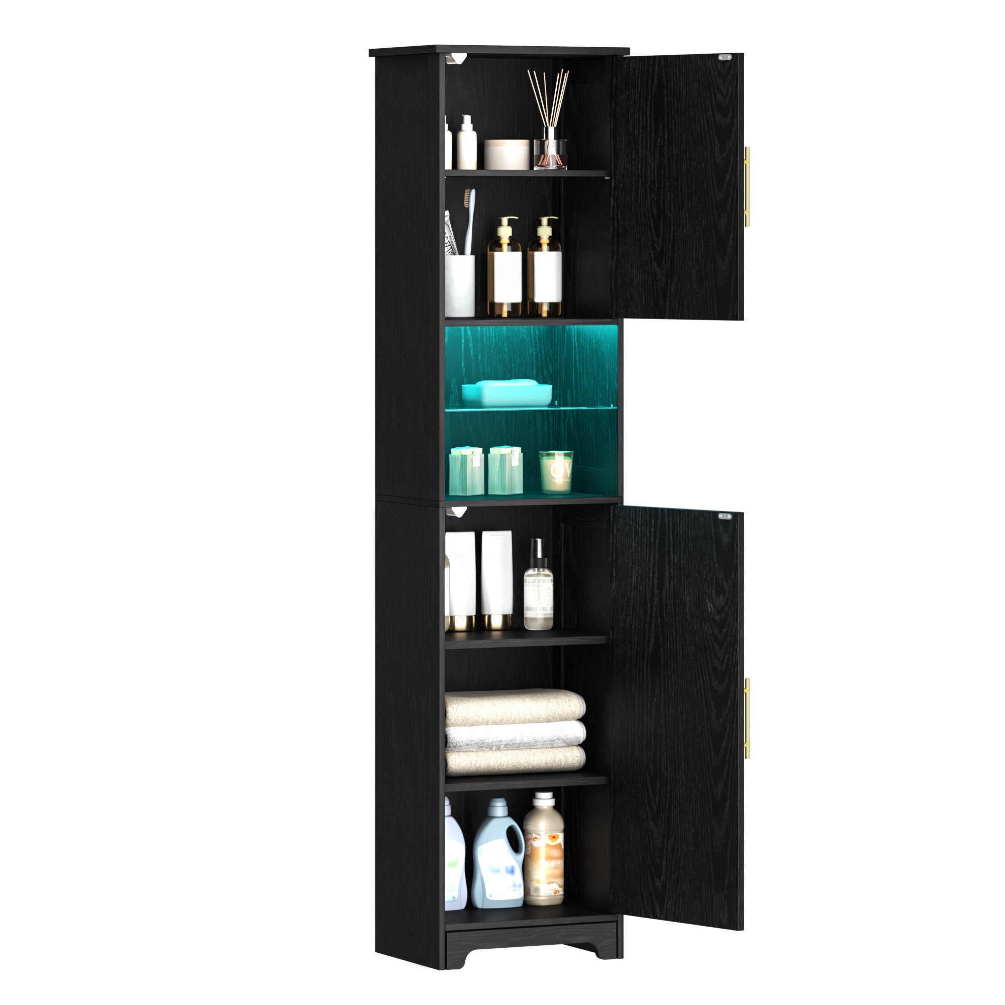 【Luci a LED Regolabili e Ripiano in Vetro】Questo mobile da bagno è dotato di 25 colori di luci, 6 livelli di luminosità, 10 modalità di lampeggiamento e 6 frequenze di lampeggiamento; è possibile utilizzare il telecomando per creare l'atmosfera desiderata, la luce attraverso il vetro aggiunge un senso di sottigliezza...