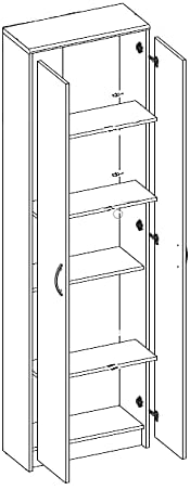- Armadio da ingresso, dotato di 2 ante a battente con 4 ripiani all'interno, dal design semplice e moderno. Questo armadio alto è poco ingombrante, che lo rende ideale anche per appartamenti meno spaziosi o monolocali.