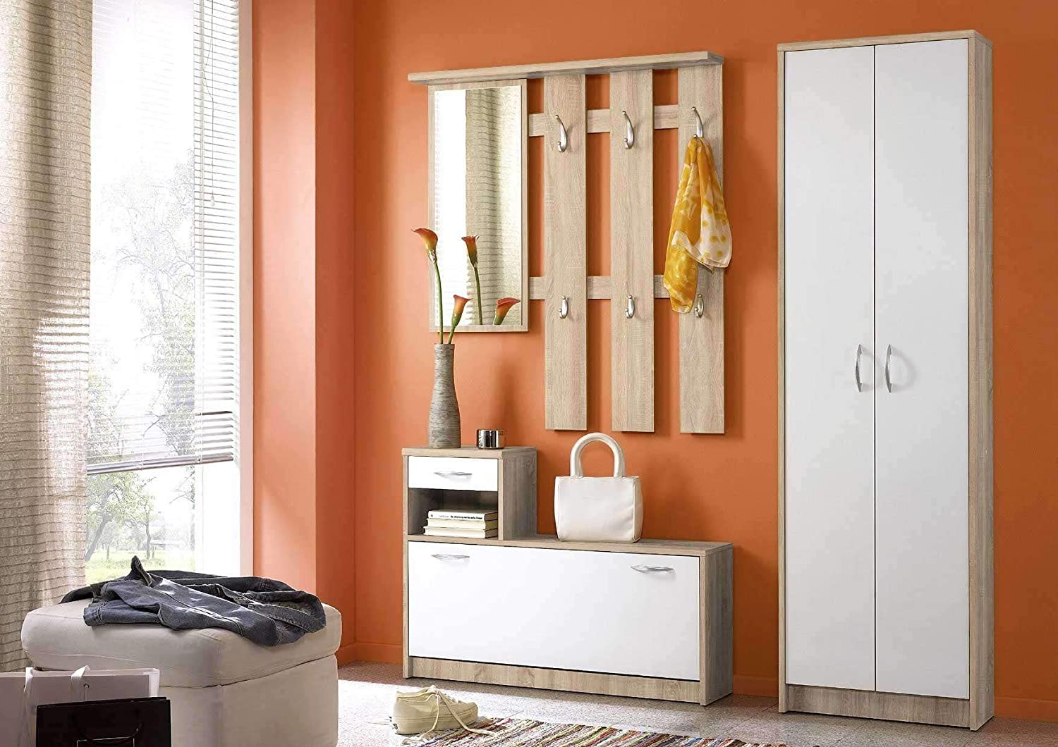 Mobili da Ingresso, in Laminato di Quercia Sonoma e Bianco (Armadio)
