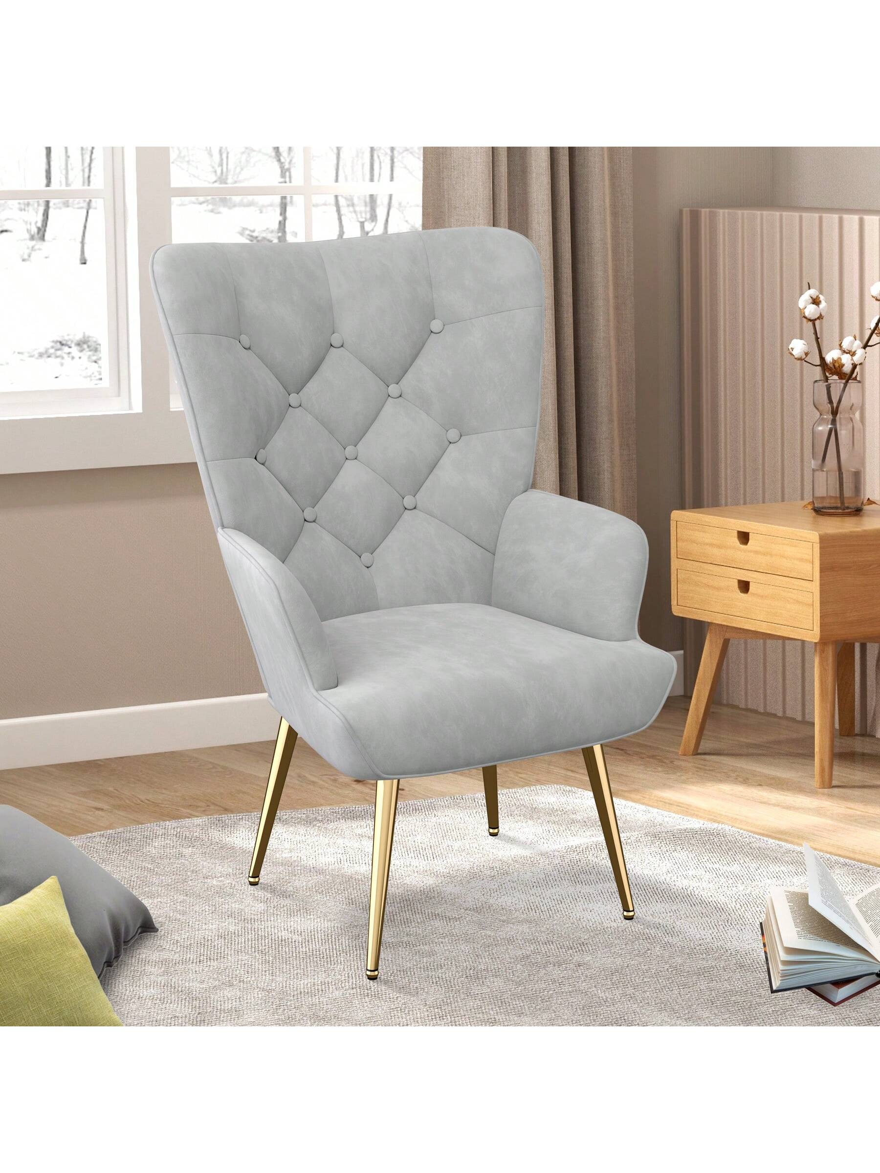 Poltrona elegante, sedia imbottita, poltrona da salotto, poltrona da toeletta con gambe in metallo, poltrona da soggiorno/camera da letto.