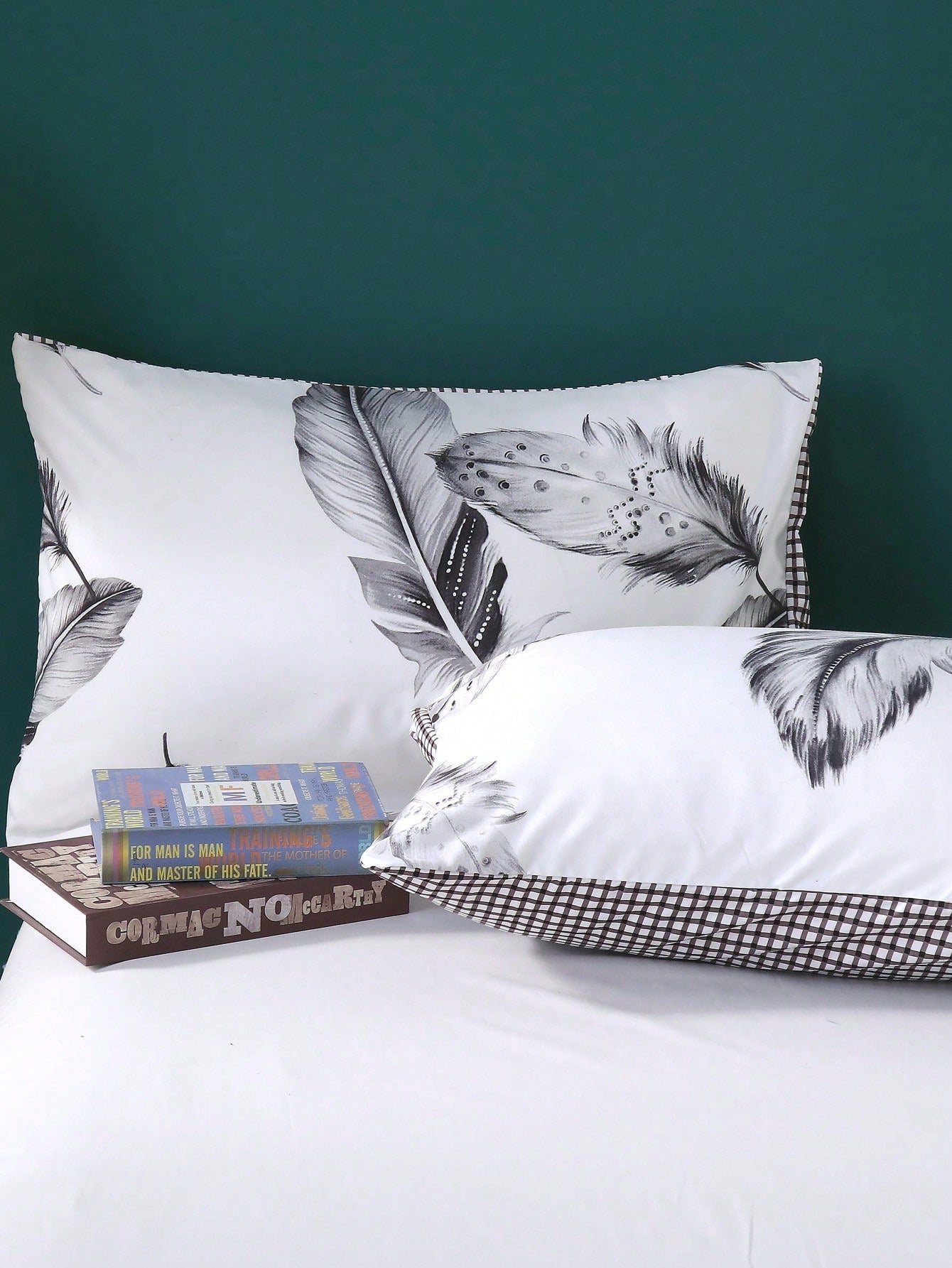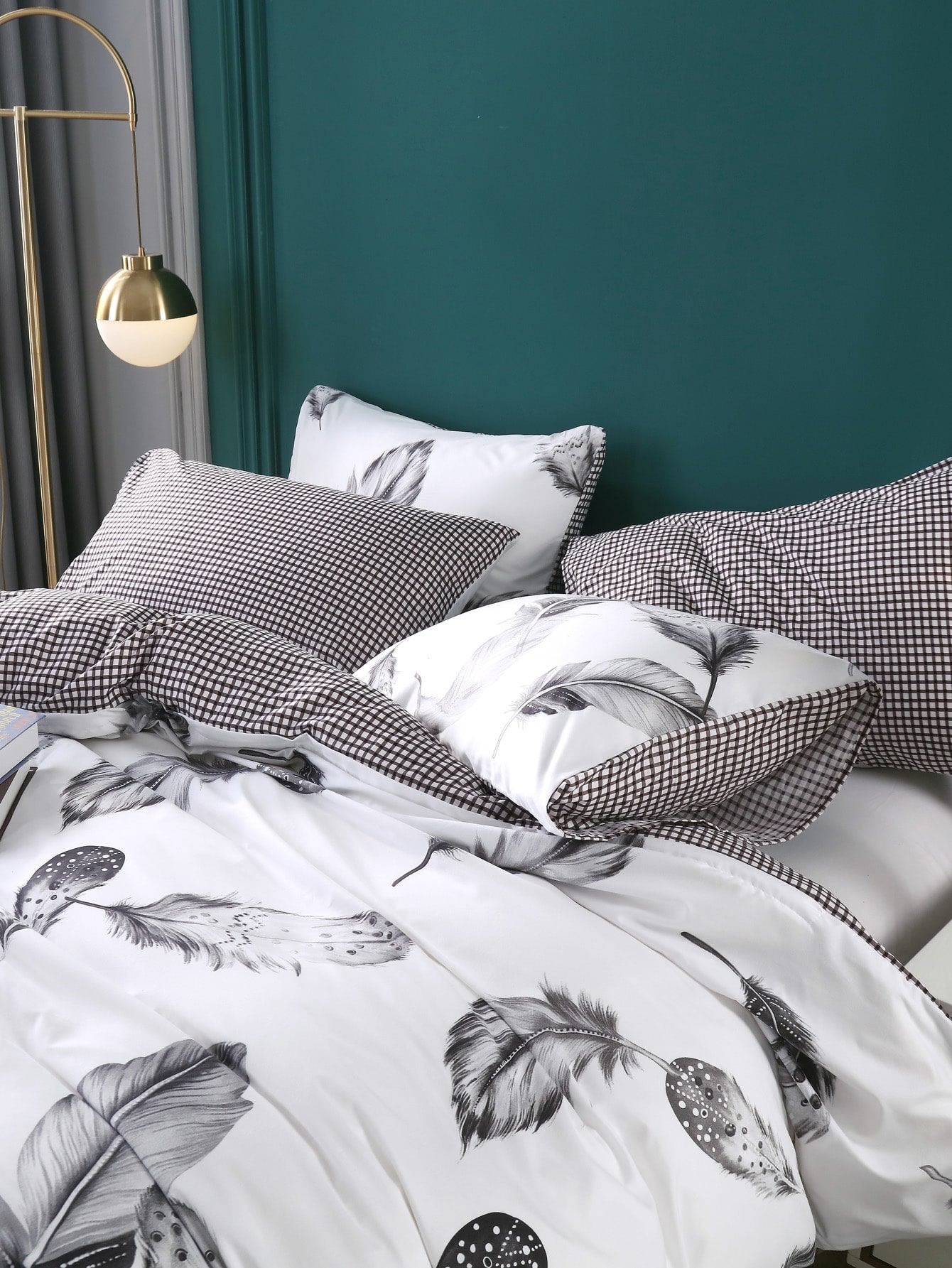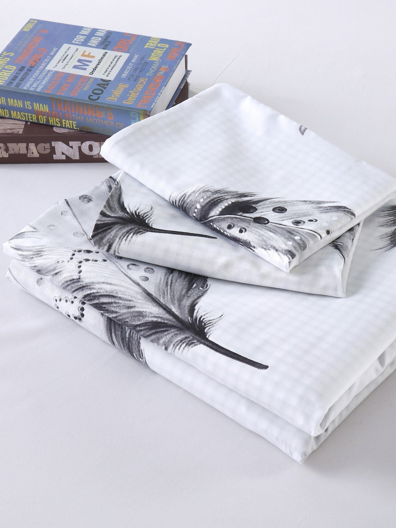 Set copripiumino con stampa piume senza riempitivo