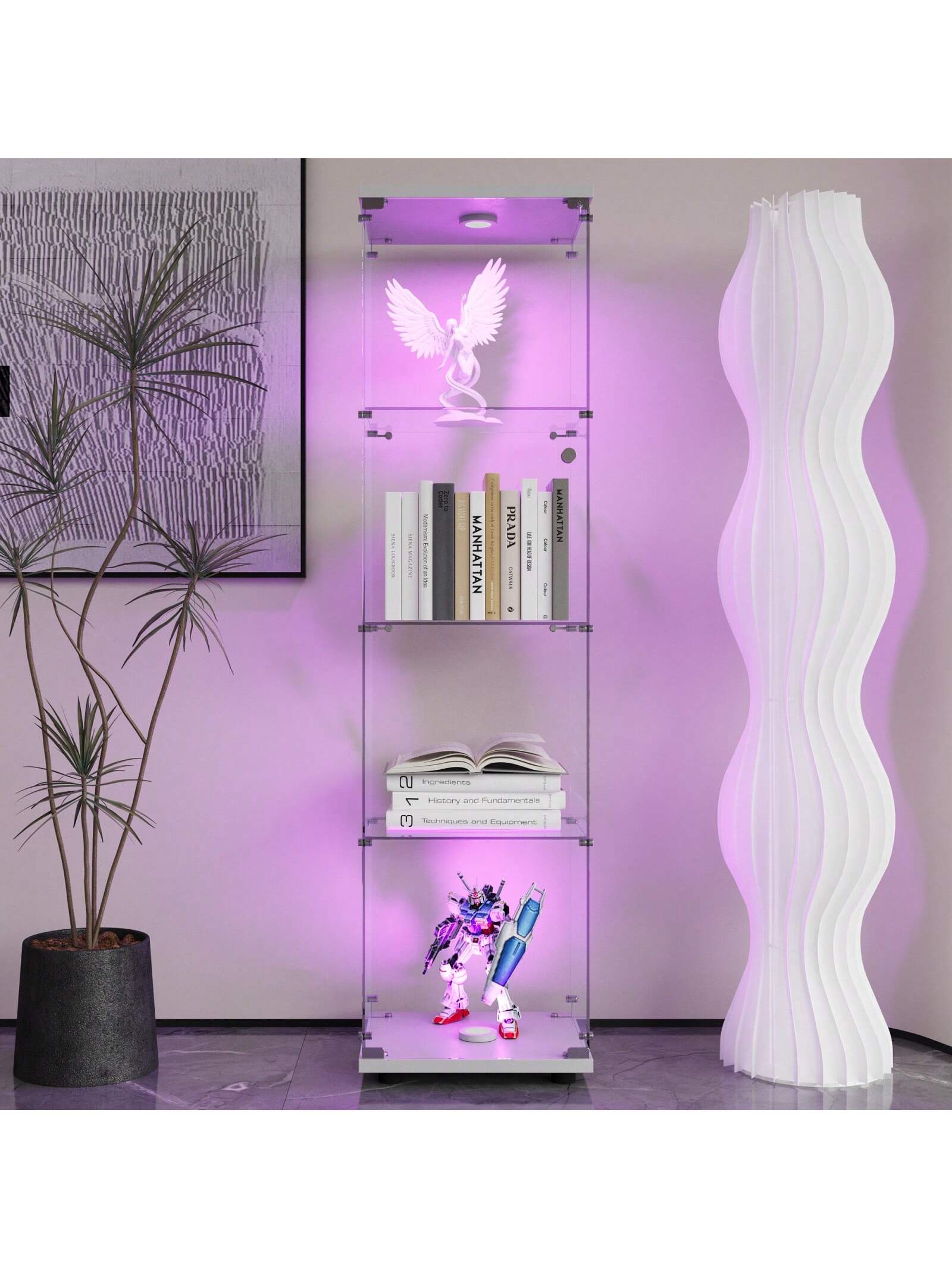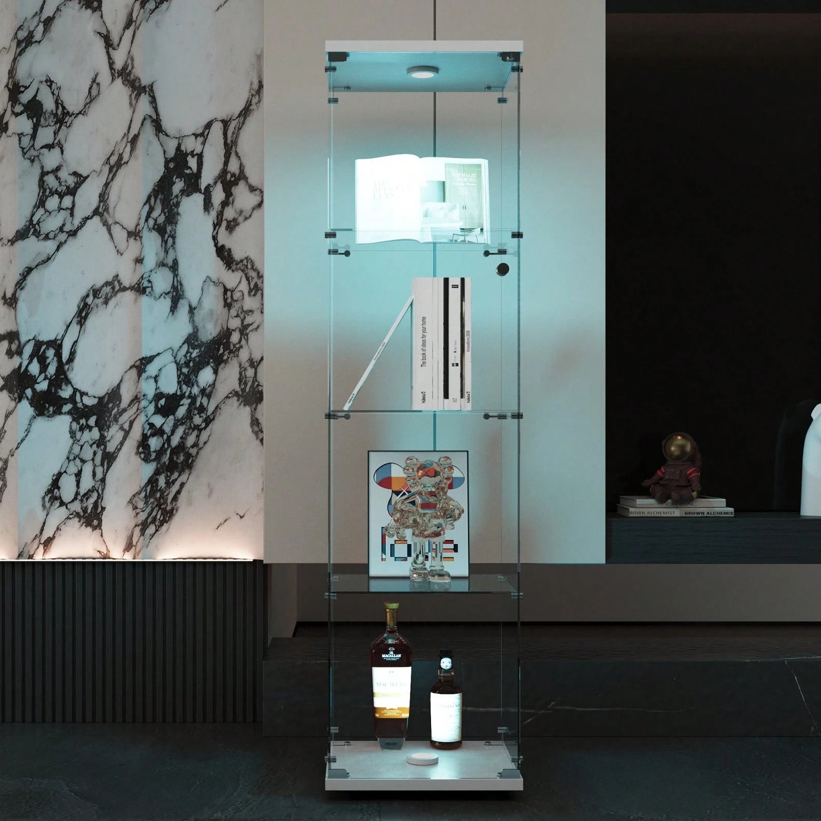 Vetrina in vetro 4 ripiani Vetrina in vetro con base Anta singola Vetrina per oggetti da collezione