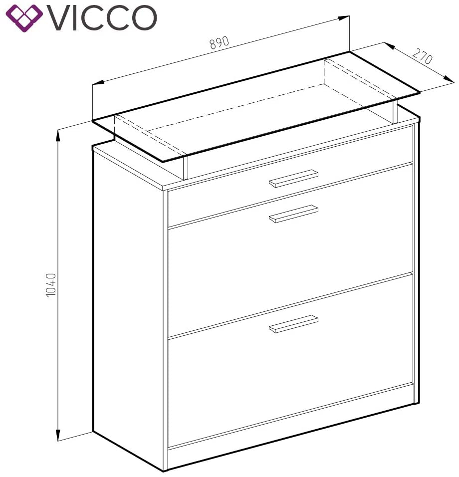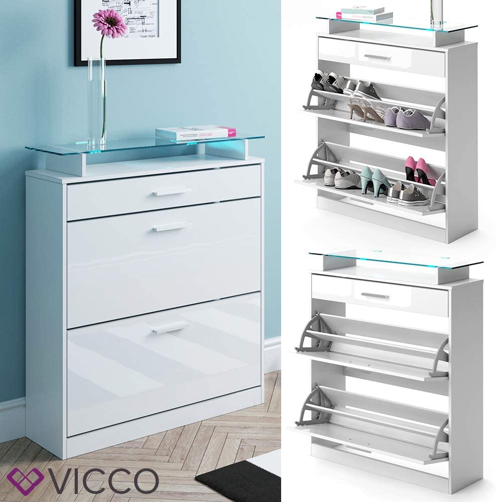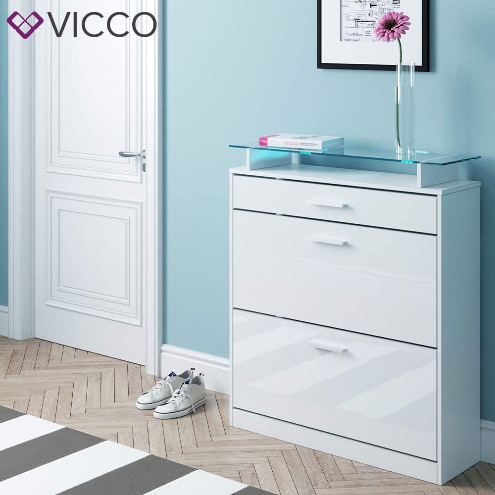 Vicco Scarpiera a ribalta Con illuminazione LED Credenza Armadio per Scarpa Con ribalta Cassettiera per Scarpa