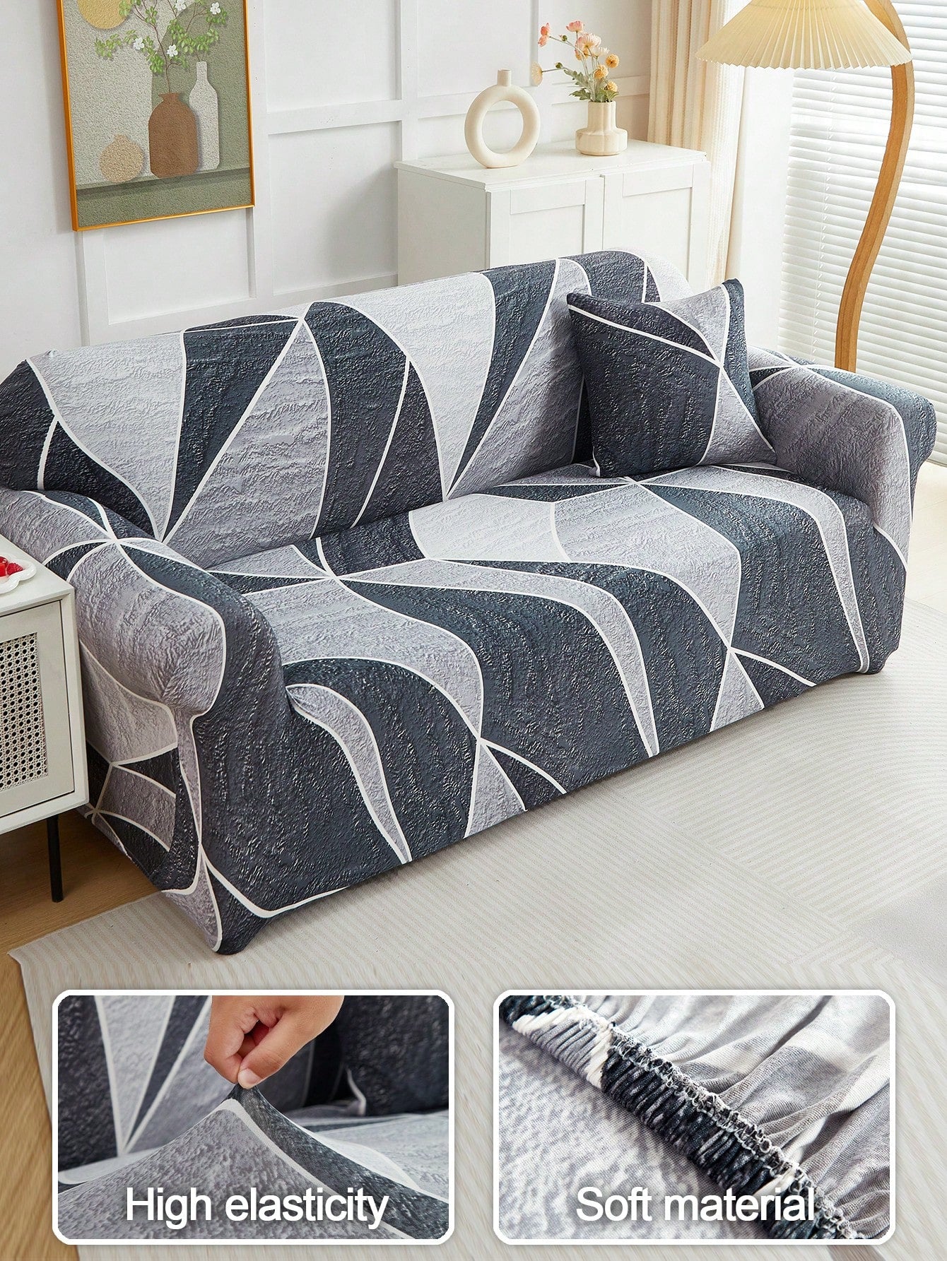 Trasforma il tuo divano con questa coperta elastica stampata, perfetta per proteggere i tuoi mobili dall'usura quotidiana.