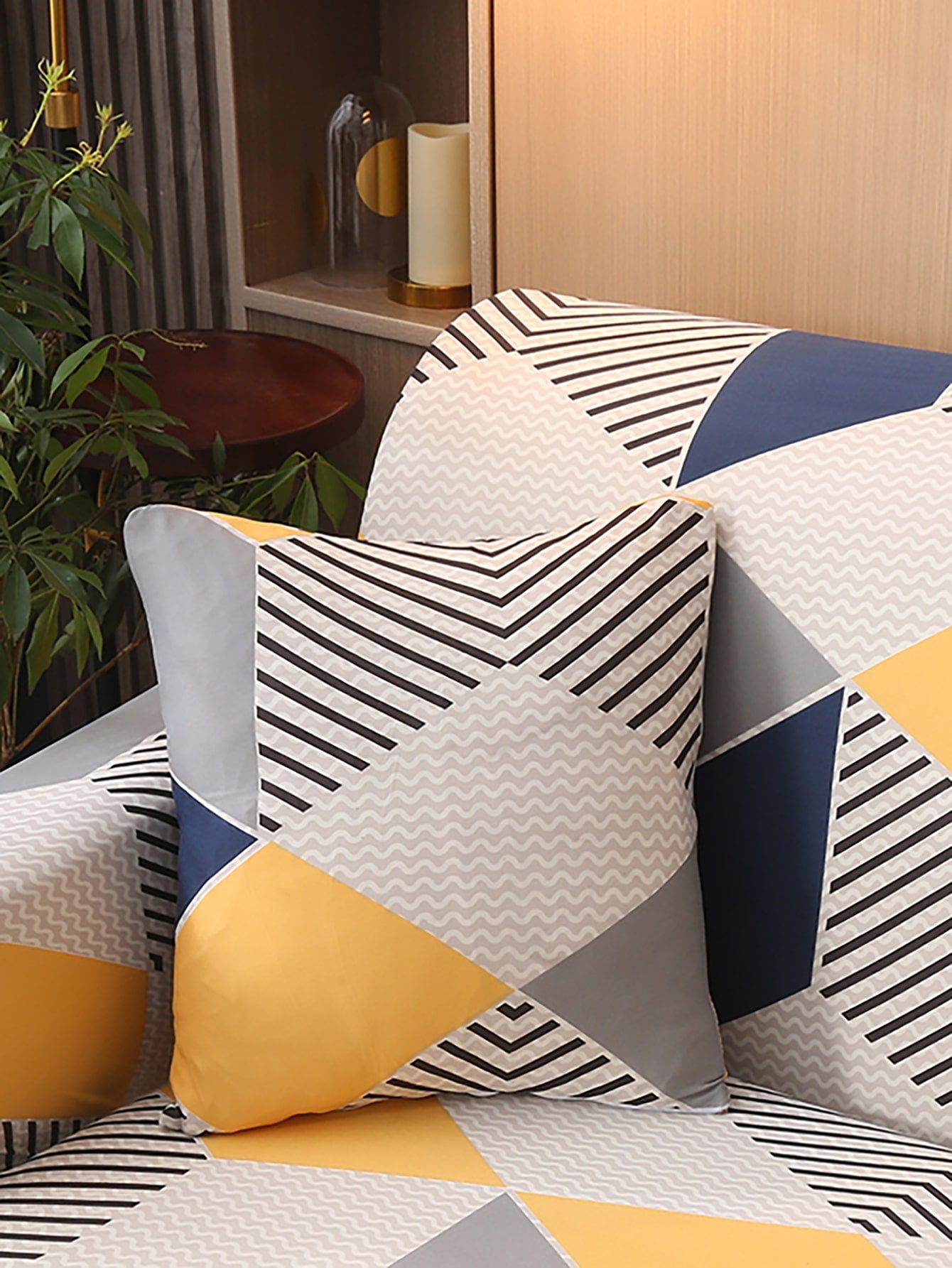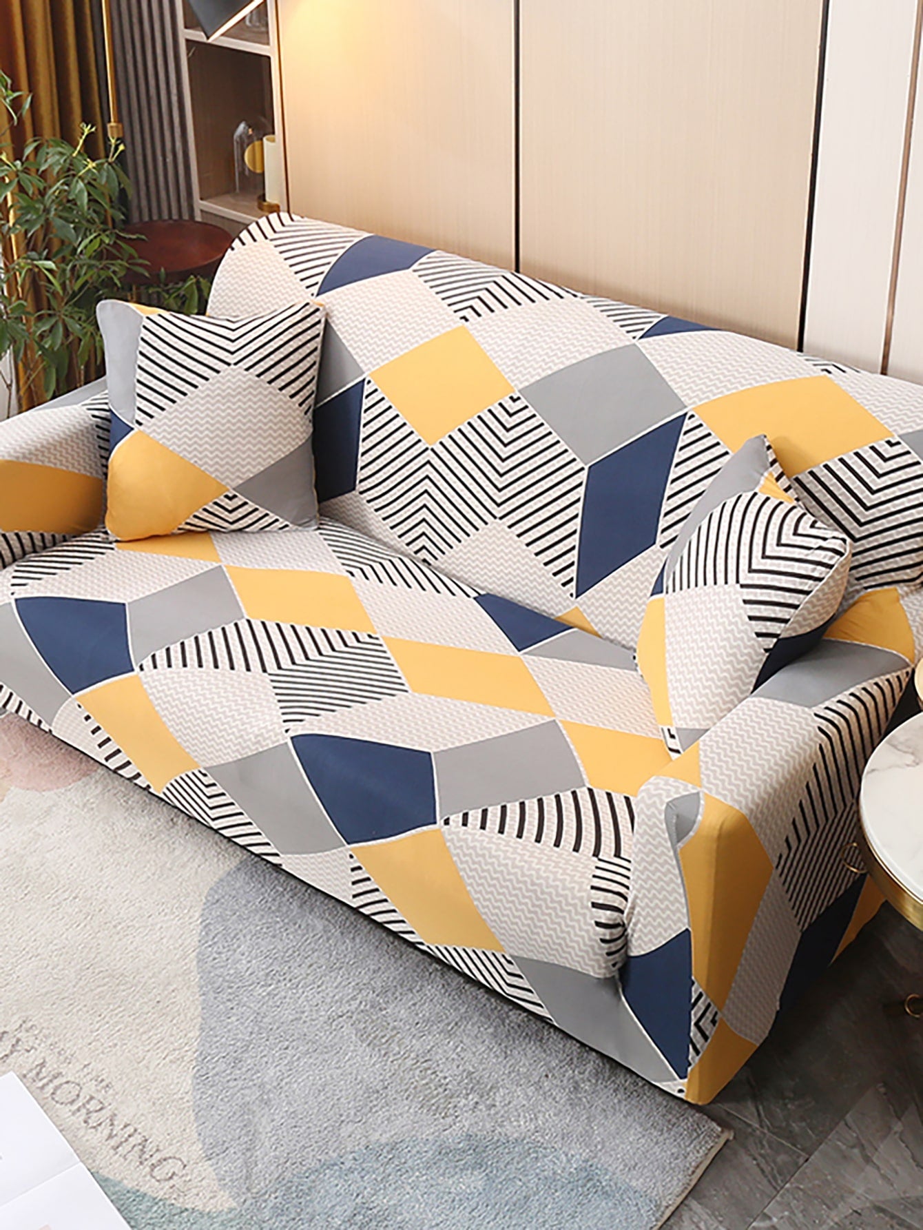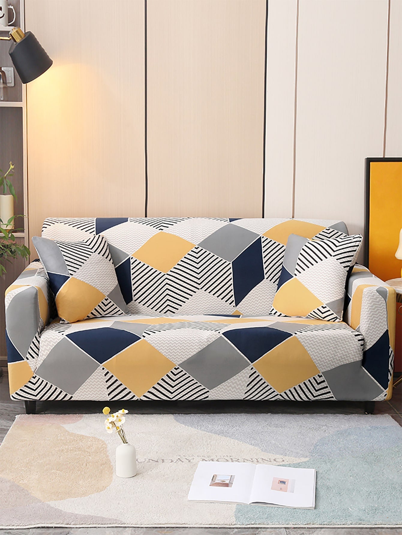 con motivo geo elastico Fodera per divano con 1 pezzo Federa per cuscino