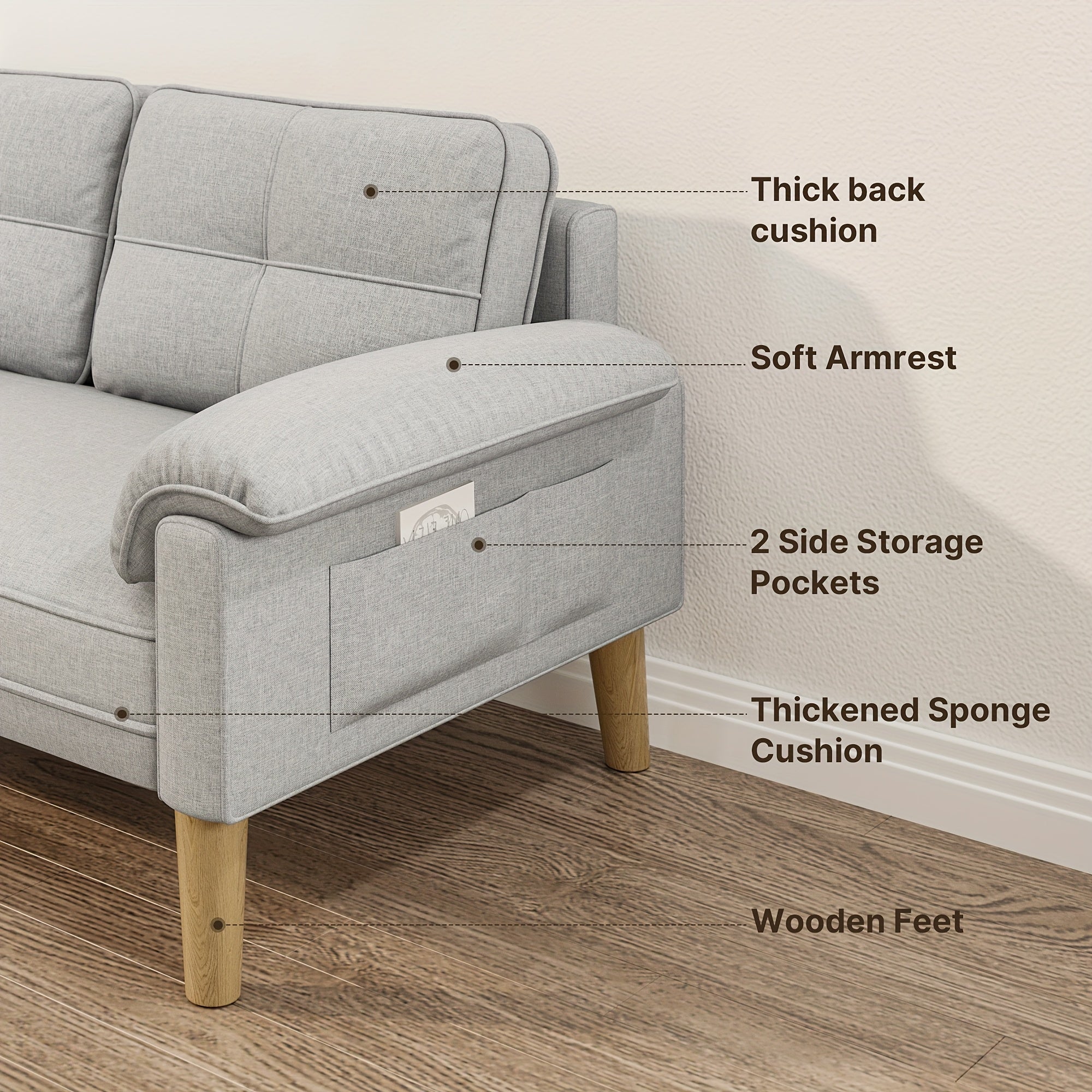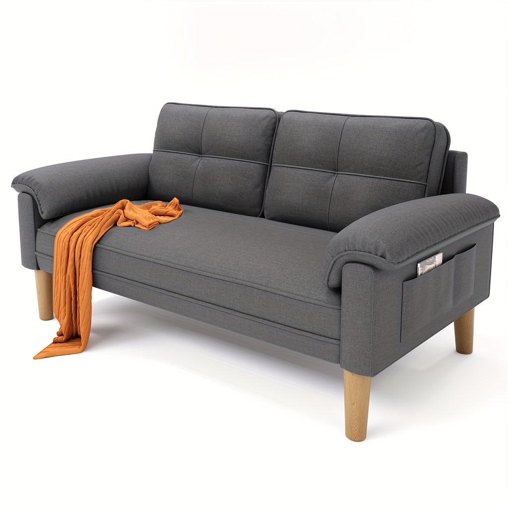 Divano 2 Posti con Braccioli e Tasca Laterale Divano Spessore Schiuma Addensato
