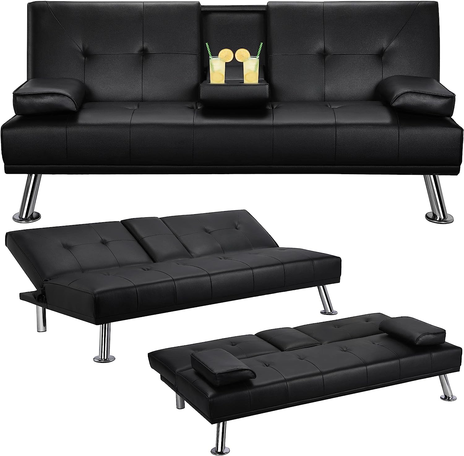 Divano Letto Mobile Imbottito a 3 Posti Divanetto Reclinabile da Salotto