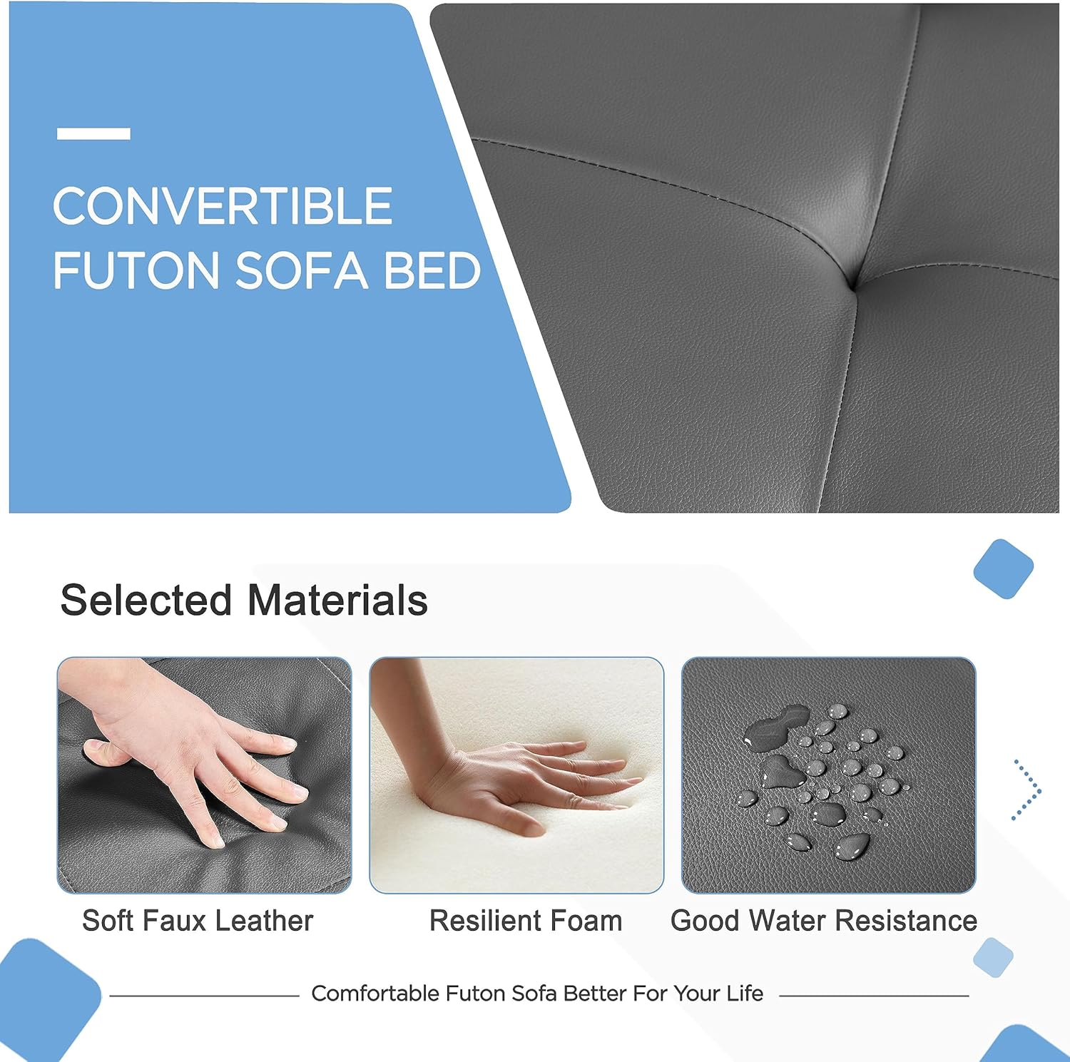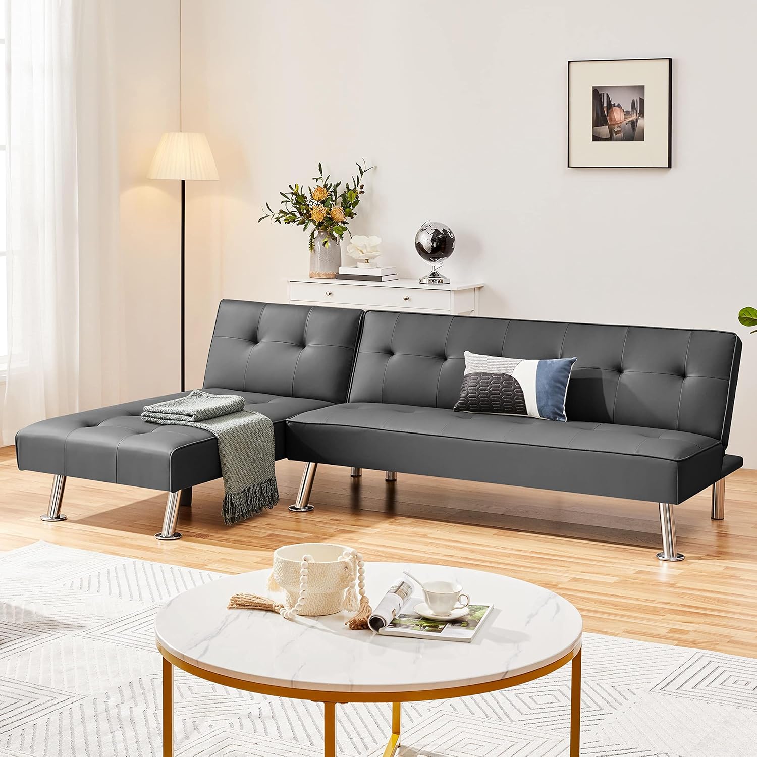 • Divano letto in similpelle, misura pari a 178x81x71 cm, con piedini in metallo dal design moderno. Il divano è una soluzione comoda ed elegante per la tua cucina, soggiorno o qualsiasi altro ambiente.