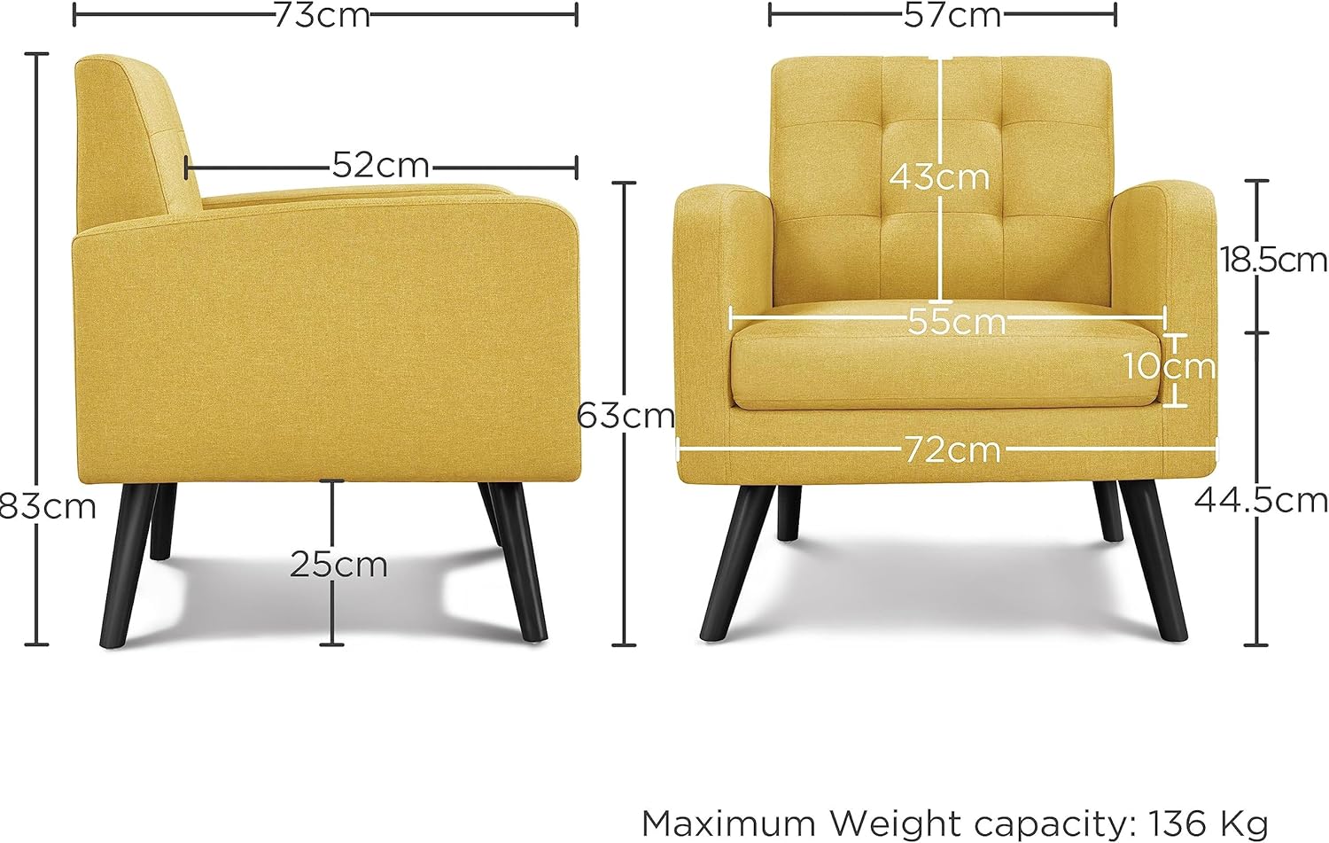 【Seduta confortevole】Il cuscino imbottito di questa poltrona laterale è solido ma morbido per il massimo comfort. Con un design dolcemente inclinato, il solido schienale fornisce supporto alla colonna vertebrale. 【Materiali selezionati】Questa poltrona in tessuto è realizzata in resistente tessuto di poliestere, schiuma morbida ad alta densità e gambe in legno...