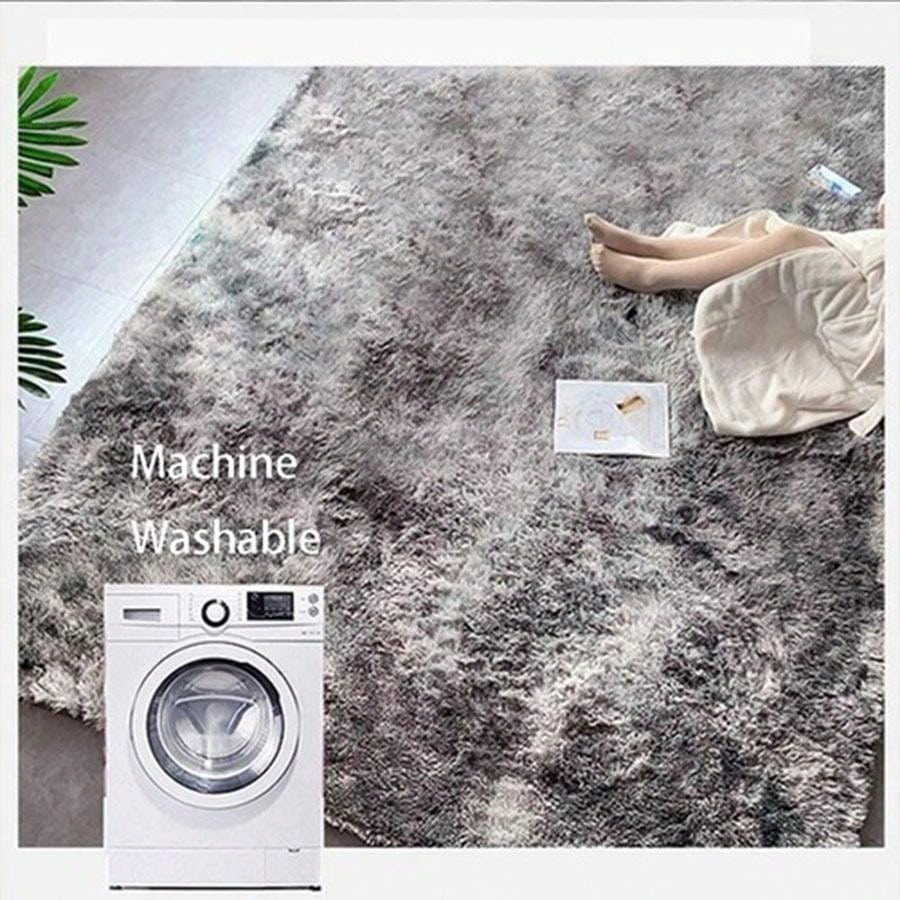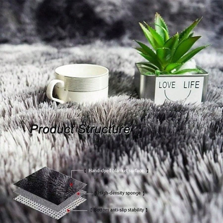 Tappeto Grigio Scuro A Pelo Lungo Con Pelle Morbida. Lavabile e Facile Da Pulire.