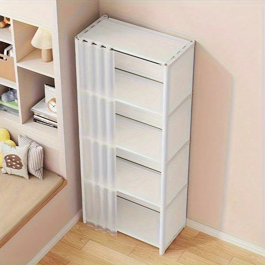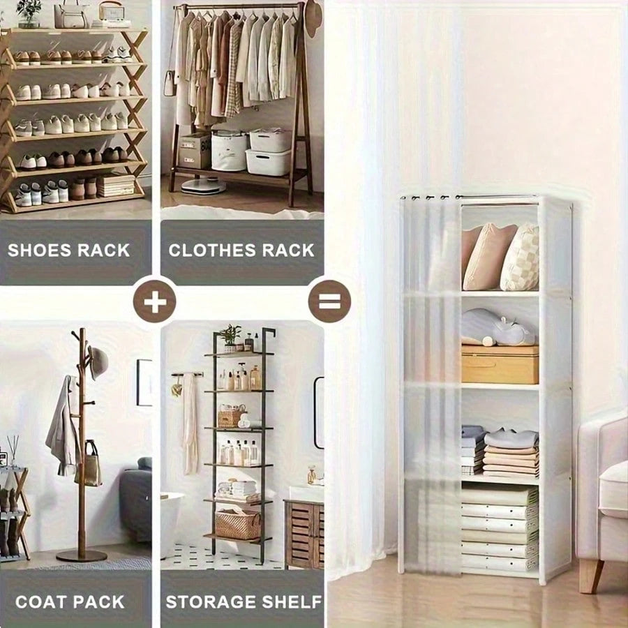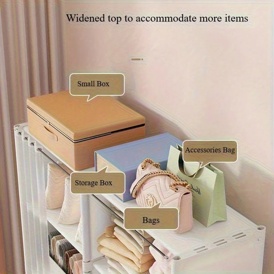 Guardaroba multifunzionale a cinque ripiani - Scaffale di stoccaggio anti-polvere con asta appendiabiti