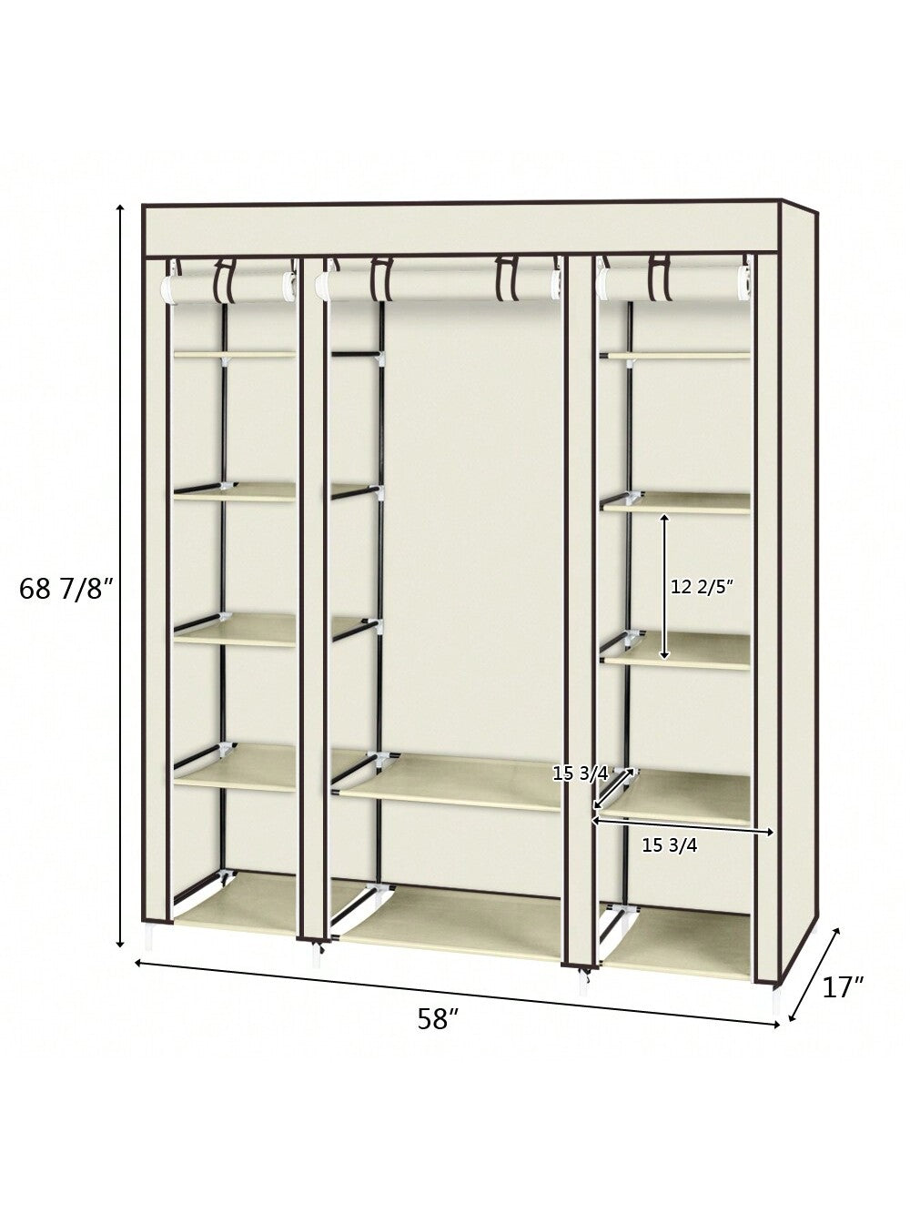 3. Dimensioni armadio: 147x44x174 cm (58" x 17" x 68 7/8")
