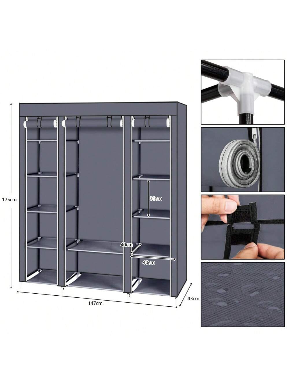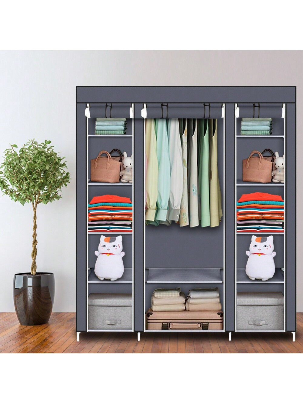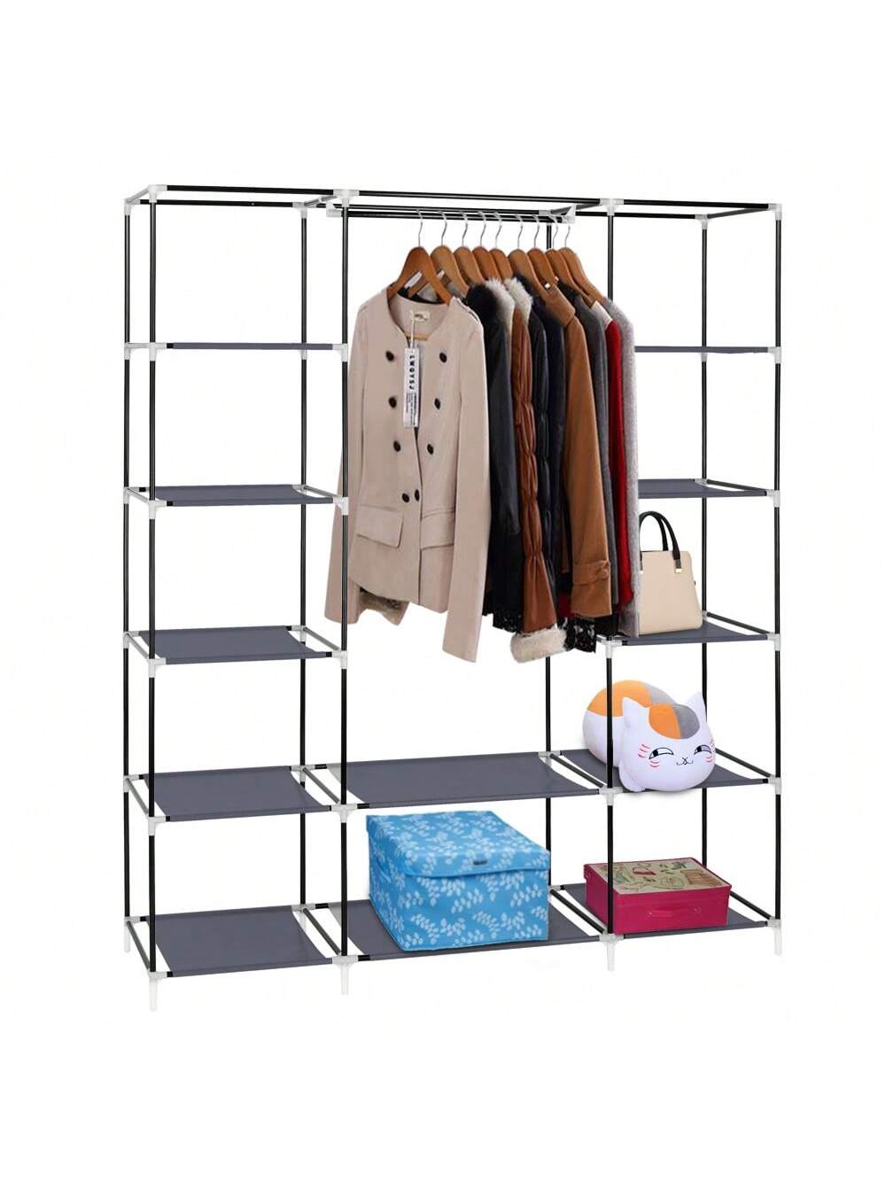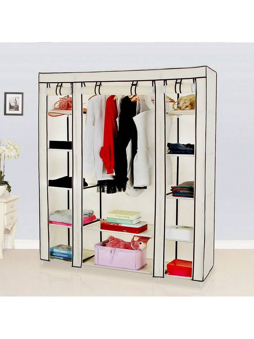 la copertura antipolvere con cerniera può proteggere i tuoi oggetti dalla polvere e i ripiani in tessuto impermeabile sono facili da pulire.