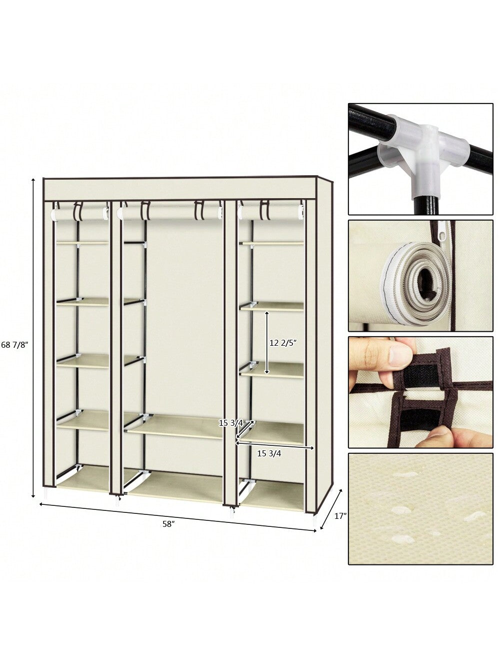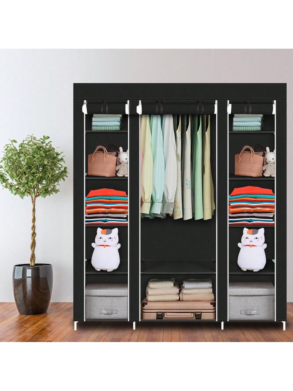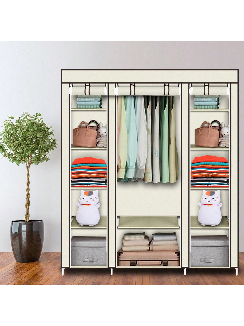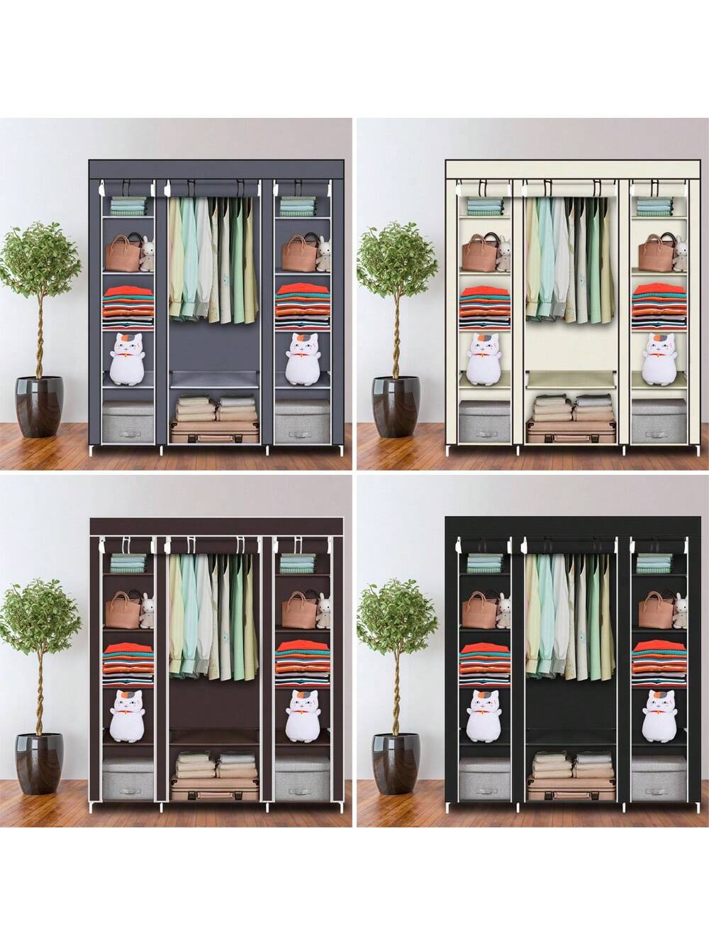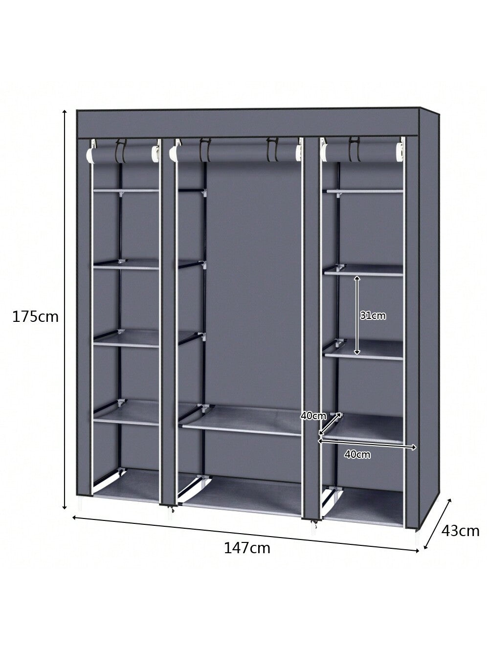 la copertura antipolvere con cerniera può proteggere i tuoi oggetti dalla polvere e i ripiani in tessuto impermeabile sono facili da pulire.