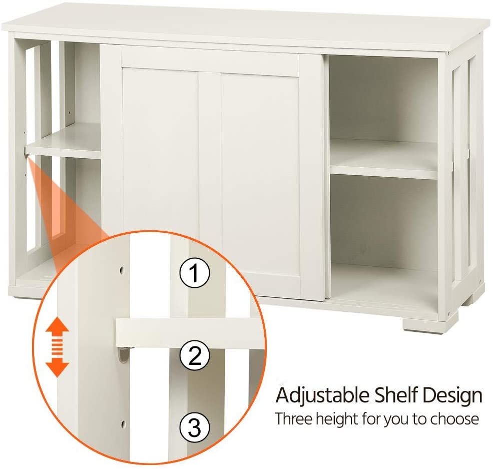 Armadietto Mobiletto Bianco Avorio Moderno da Cucina Salotto Studio con 2 Ante Scorrevoli e Ripiano Regolabile Resistente e Robusto Armadietto Questo armadietto è realizzato in pannelli MDF di grado P2 spessi 1,5 cm che sono ecologichi e solidi, la superficie è ben verniciata e liscia. Capacità di carico fino a...