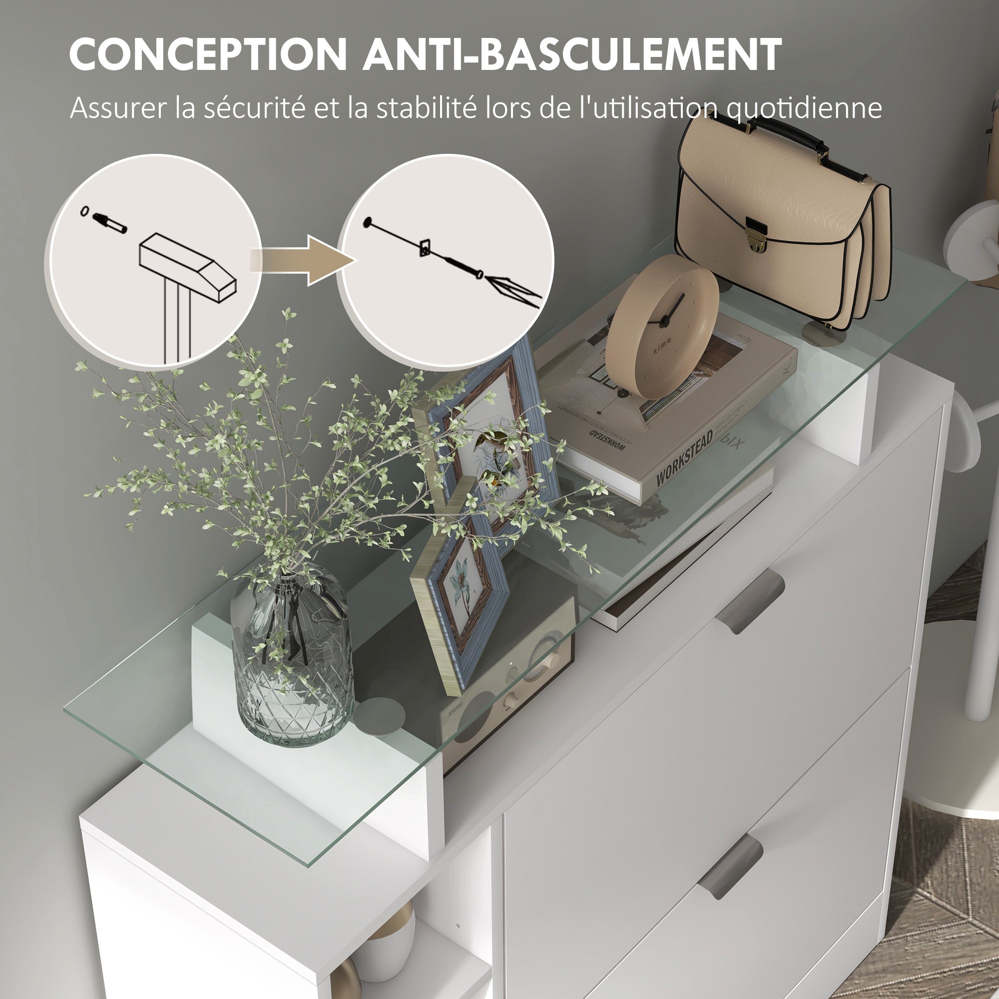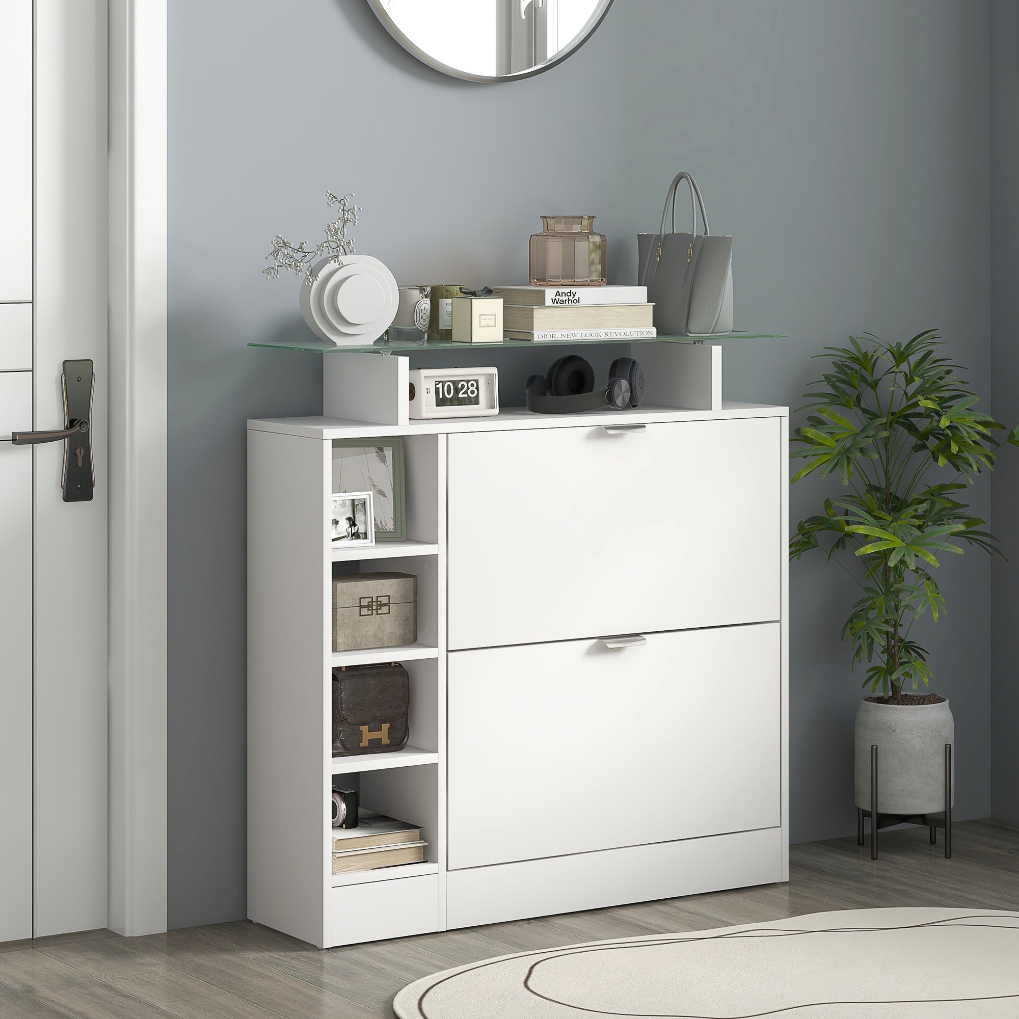 • altezze, rendendo questo armadio per scarpe bianco perfetto per esporre i tuoi oggetti essenziali o decorativi