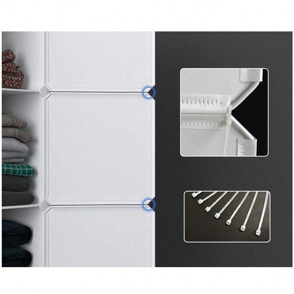 Armadio modulare portatile che trasforma lo spazio della tua camera da letto. Questo sistema impilabile fai da te offre flessibilità totale: assembla solo i moduli che ti servono e riconfigurale quando cambia l'esigenza. Le ante scorrevoli proteggono i tuoi vestiti dalla polvere, mentre il design compatto massimizza lo spazio disponibile....