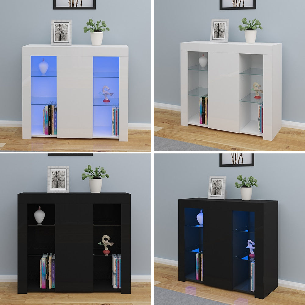 Pannelli frontali sono presentati con una finitura lucida. Corpo opaco finitura perfettamente in forma di alta gloss porta che forniscono una splendida effetto visivo.Libero di RGB Ha Condotto Le Luci.Dotato di luci A LED sistema con telecomando ON/OFF e 16 colori statici, 4 modi dinamici, È possibile regolare il colore...