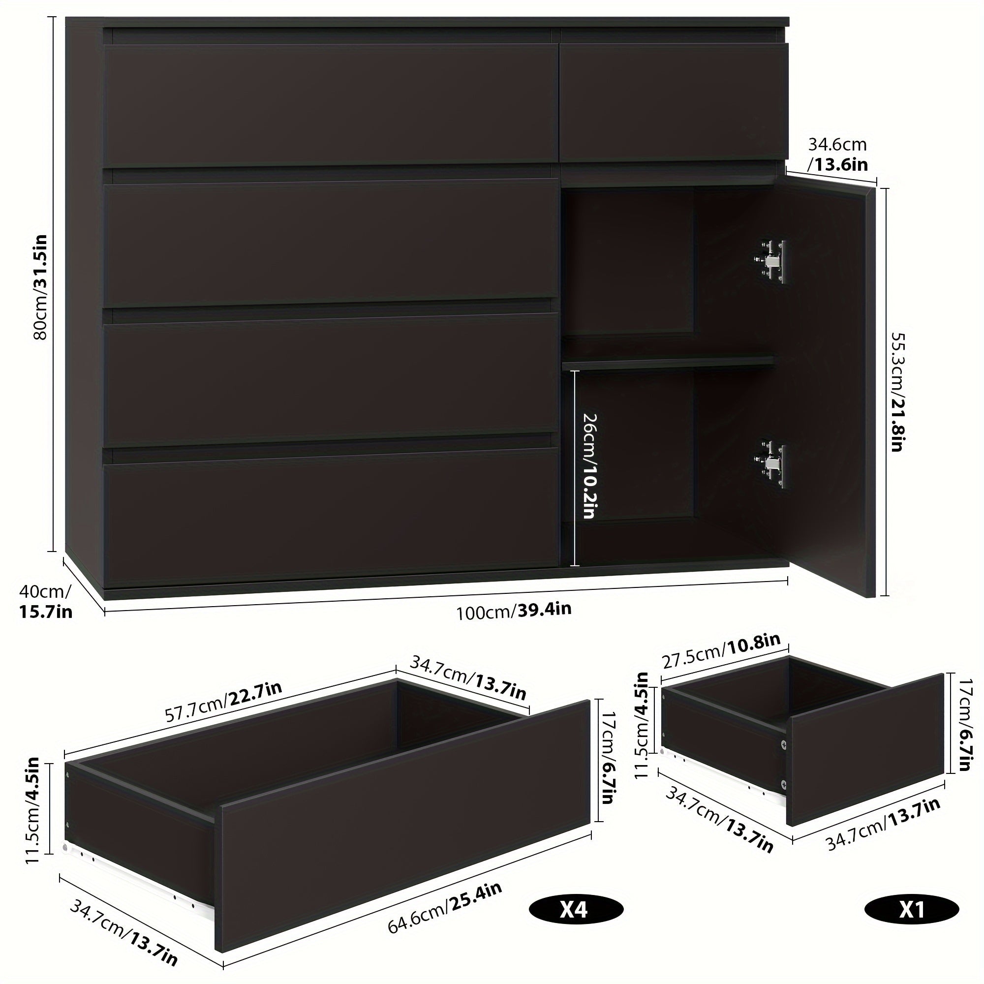 - Dimensioni generose (100 x 40 x 80 cm) lo rendono ideale per camera da letto, soggiorno o ufficio.