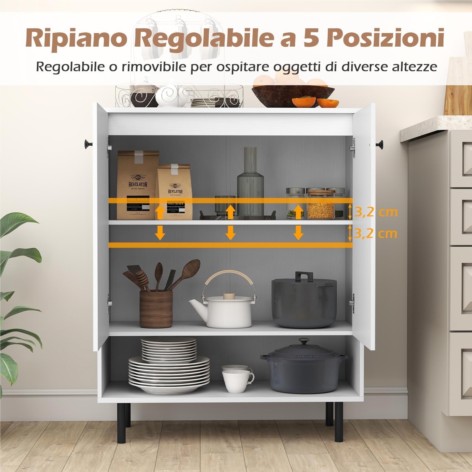 Il mobile in legno offre una superficie di servizio ampia per alimenti, un mobile chiuso per organizzare i piatti e un ripiano per utensili da cucina.  Inoltre, il design a 2 porte consente un facile accesso a tutti i contenuti. 【Configurazione regolabile】Personalizza lo spazio con un ripiano regolabile su 5...