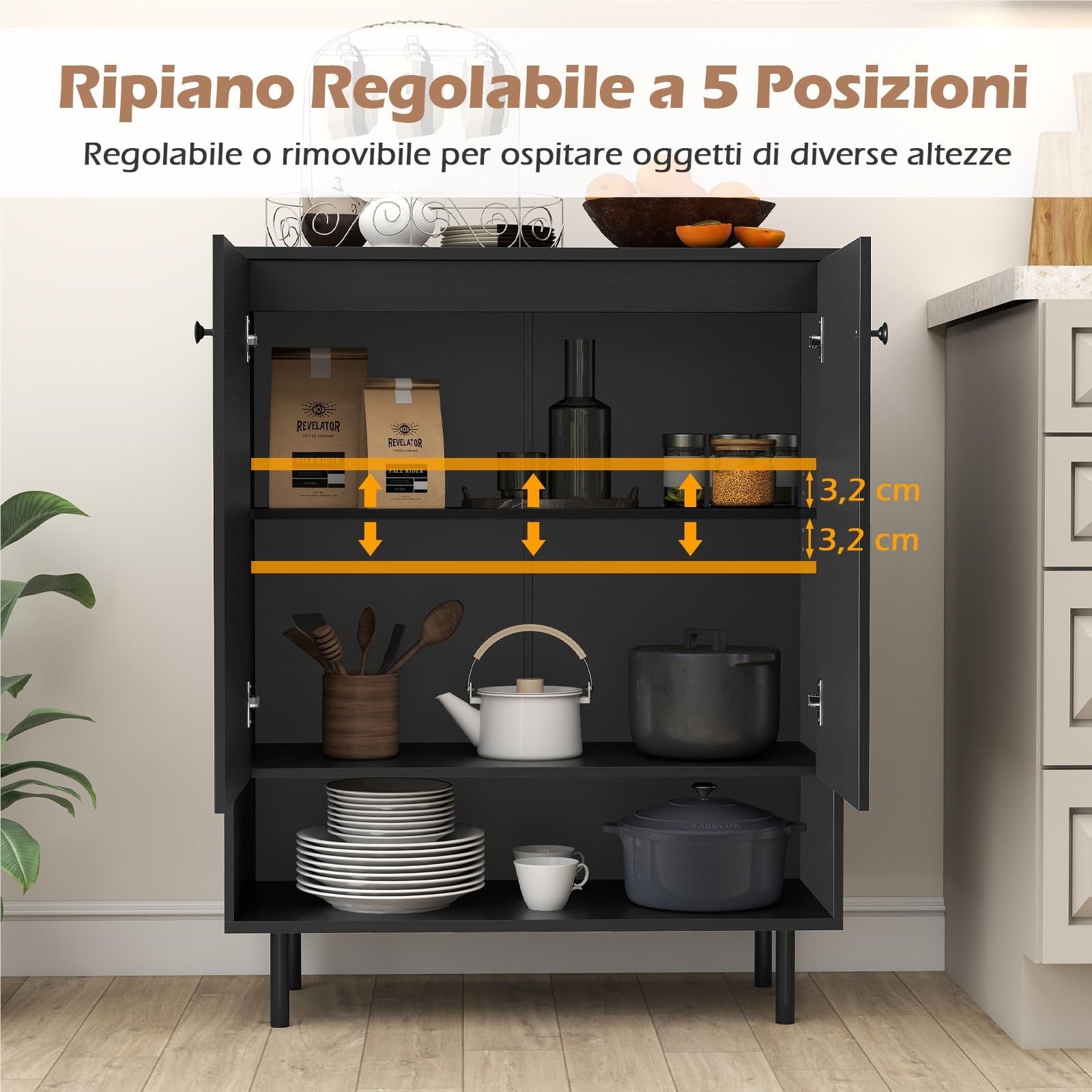 - 【Configurazione regolabile】Personalizza lo spazio con un ripiano regolabile su 5