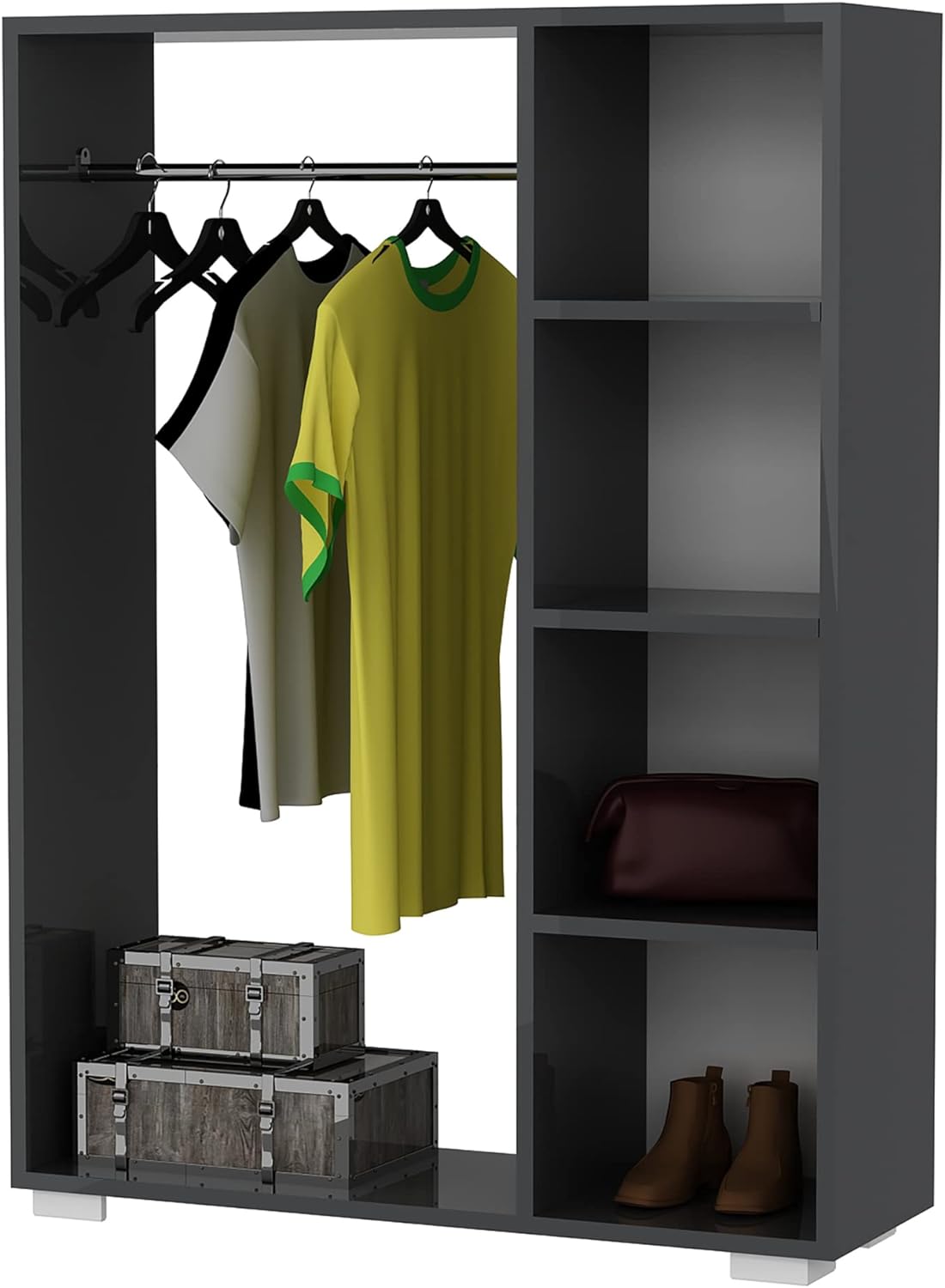 L'armadio senza ante aiuta a tenere in ordine gli indumenti. La cabina è dotata di 4 ripiani per riporre vestiti, sistemare gli accessori e scarpe, mentre sull'asta possiamo appendere camicia e giacca, ecc.Descrizione:- cabina armadio per guardaroba- dispone di scomparti e 1 asta appendiabiti- struttura stabile basata su 4 piedini...