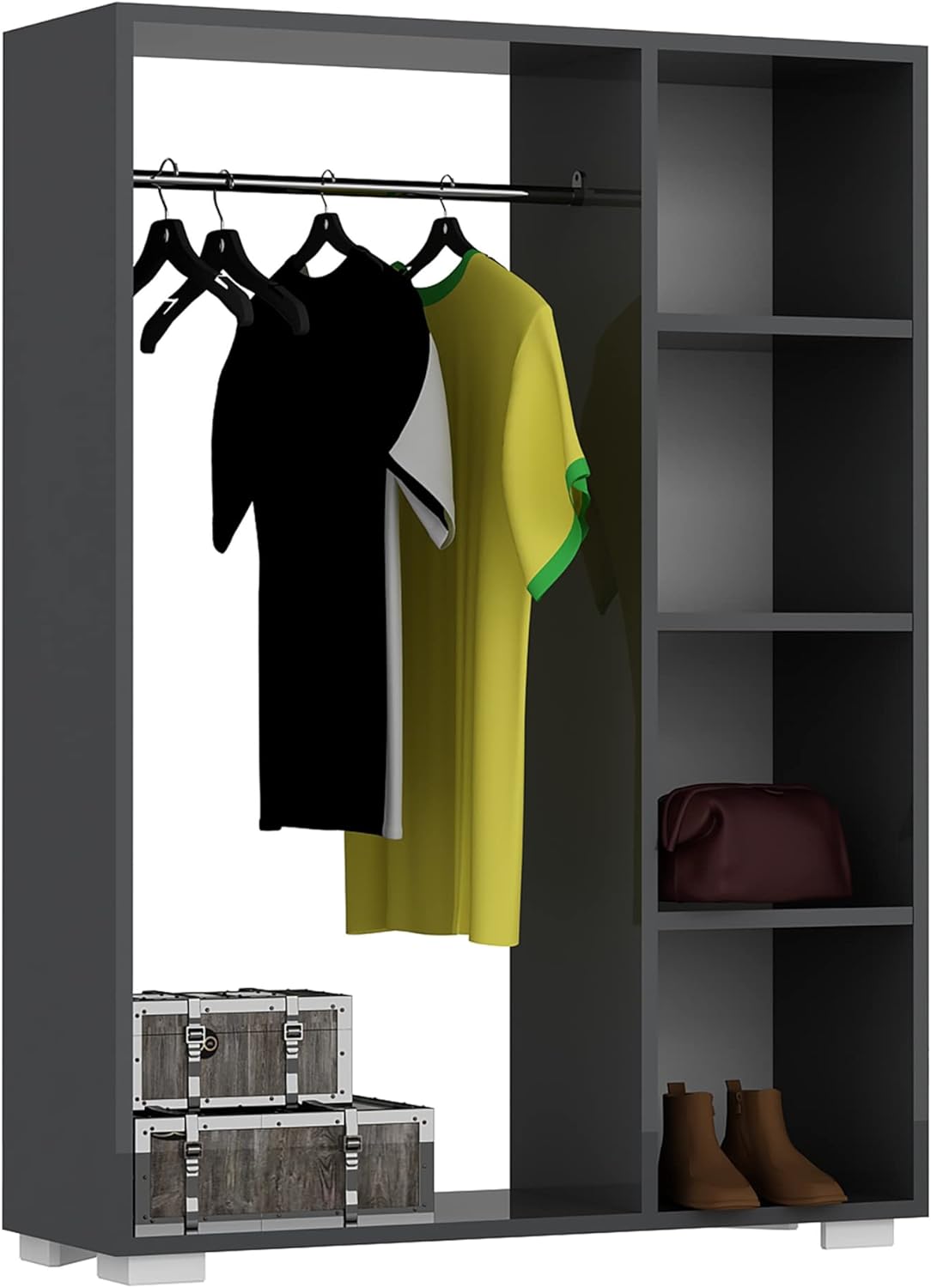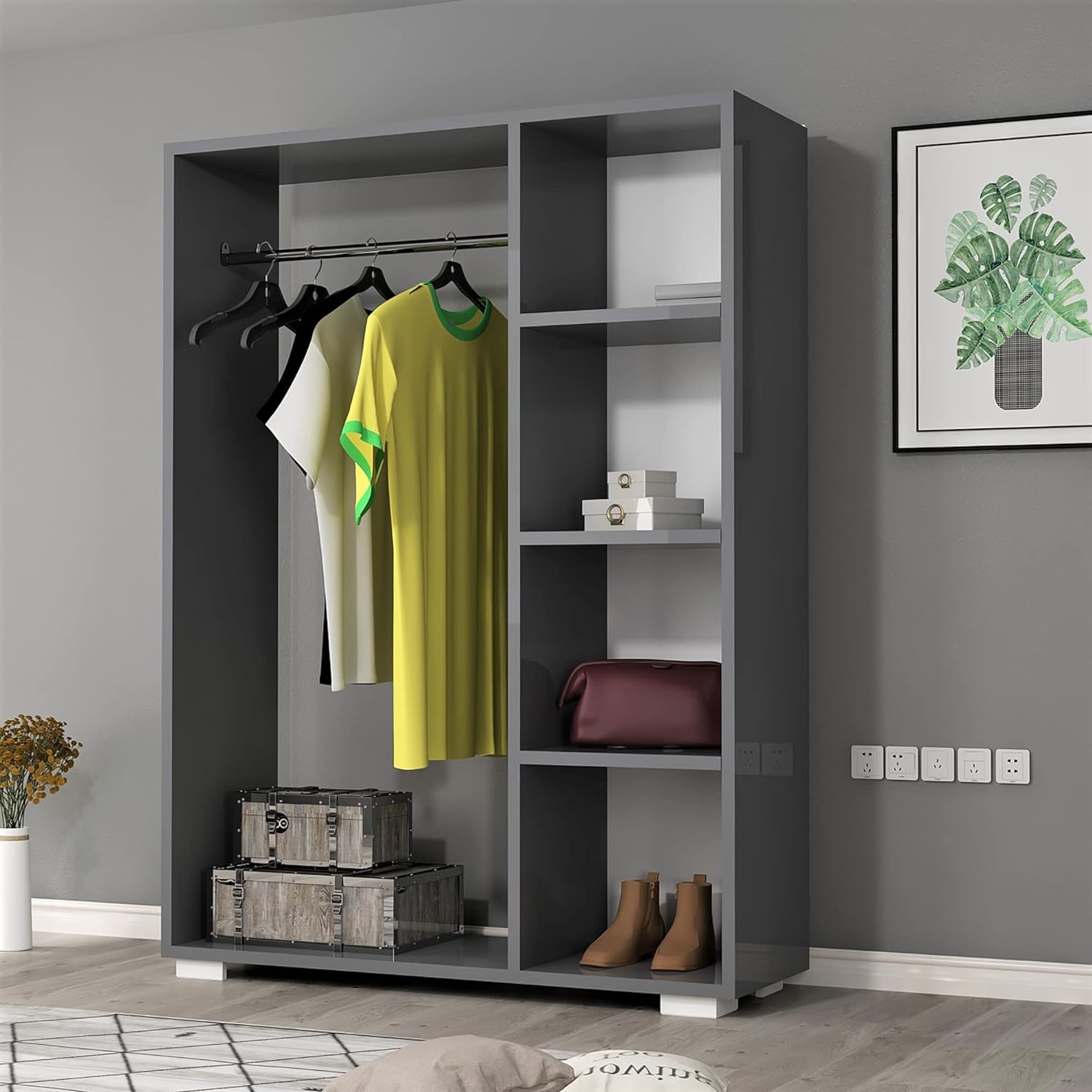 GuardarobaCabina Armadio con Scomparti e Asta Appendiabiti Senza Anta - Antracite