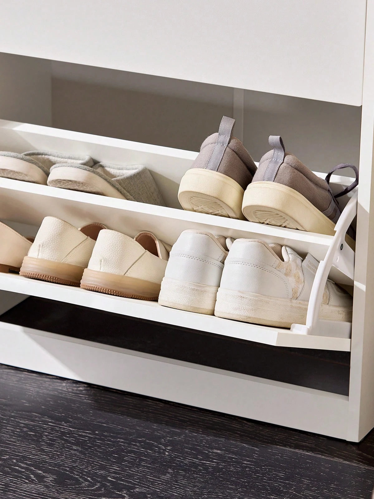 Scarpiera ribaltabile Scarpiera a 2 ribalte e un cassetto Portascarpe salvaspazio Slim, Bianco